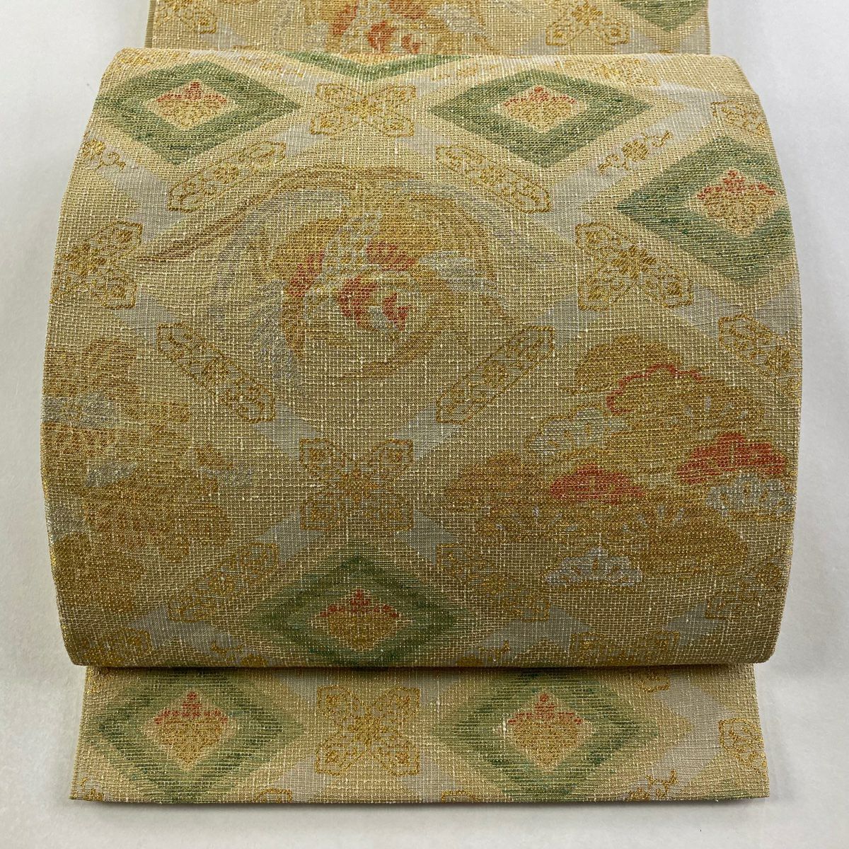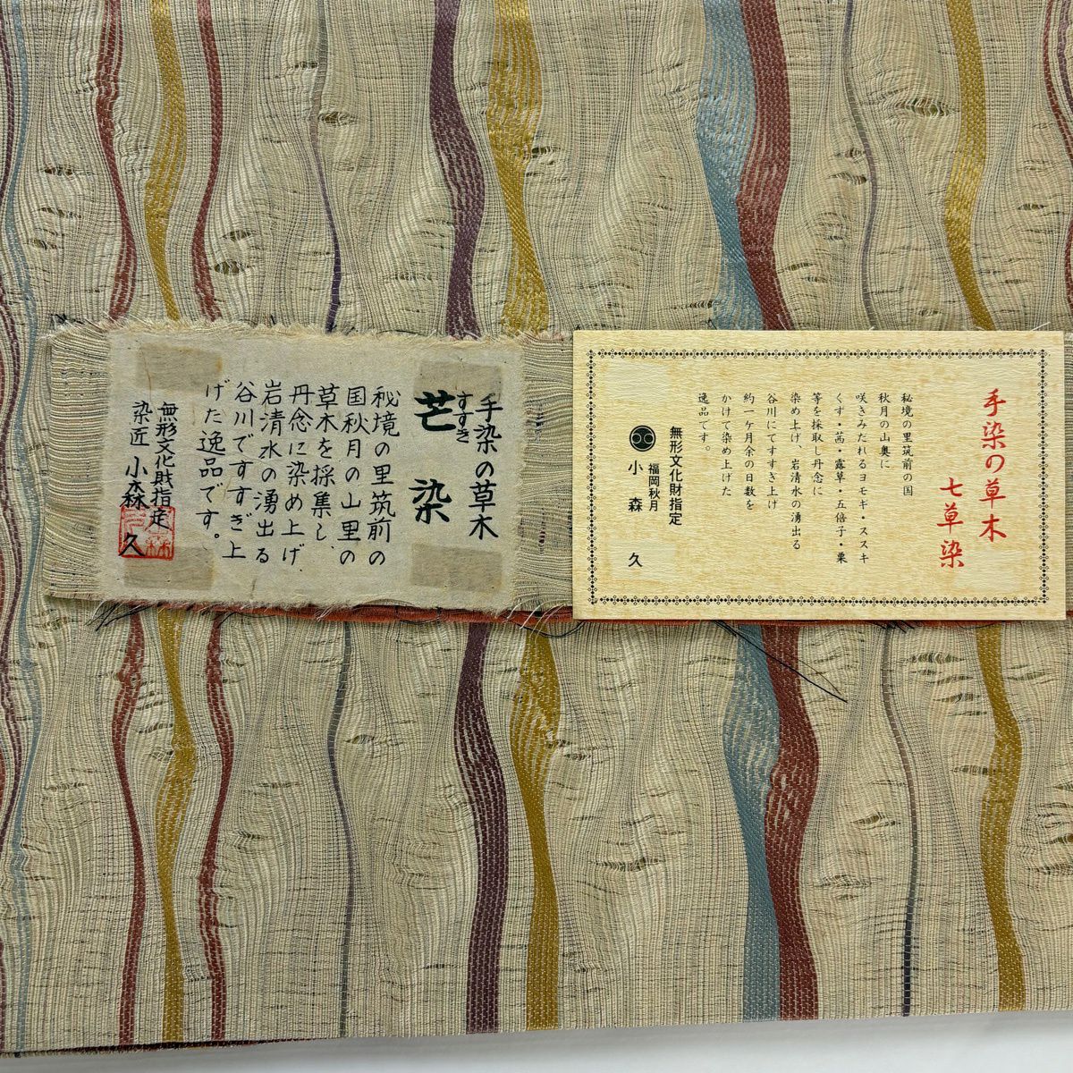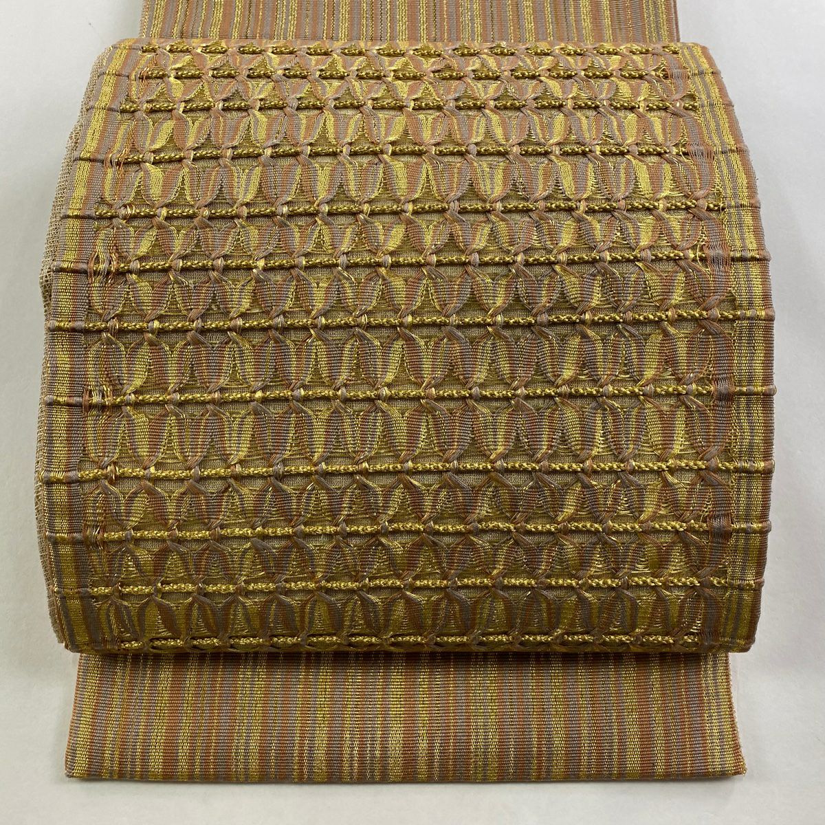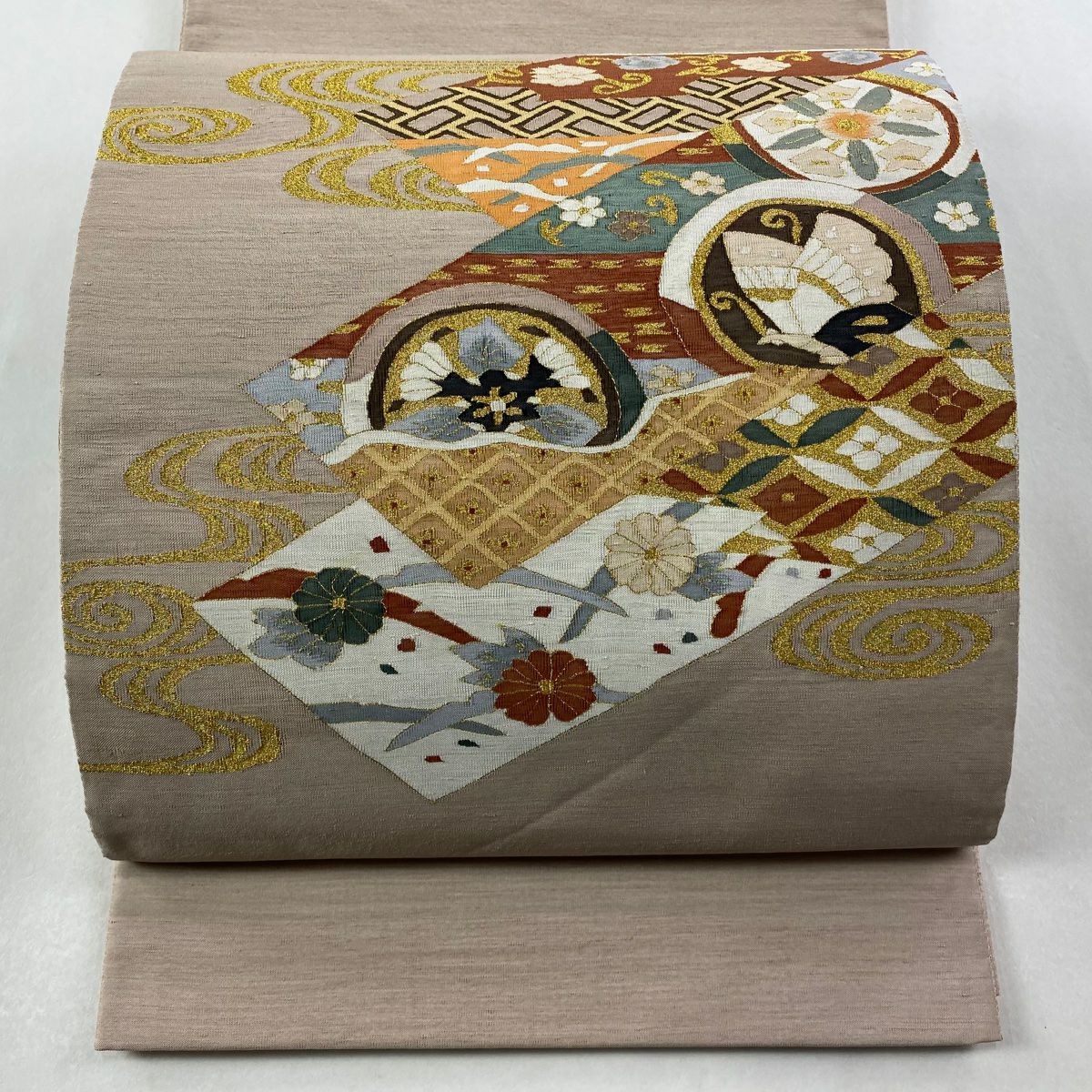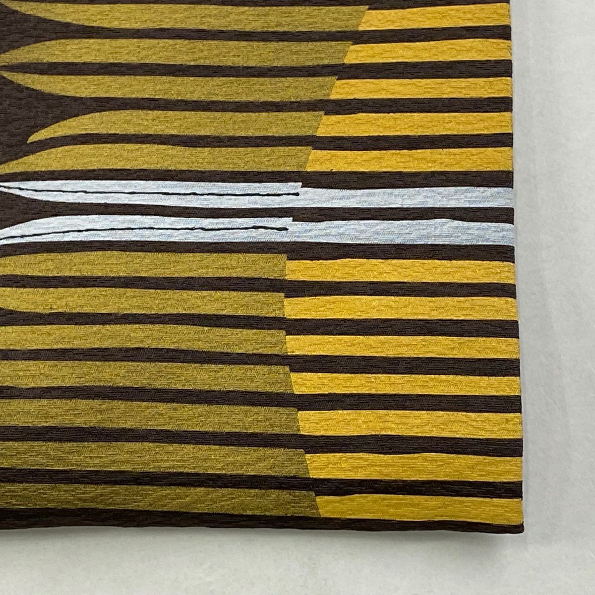 袋帯 逸品 落款あり 証紙あり 小森久 博多織 幾何学 ベージュ 全通 正絹
