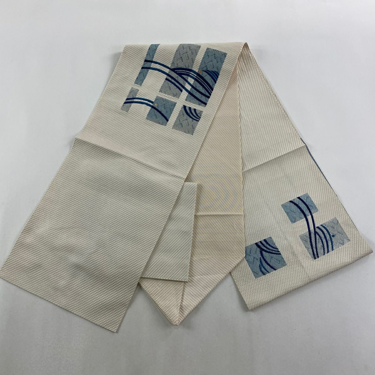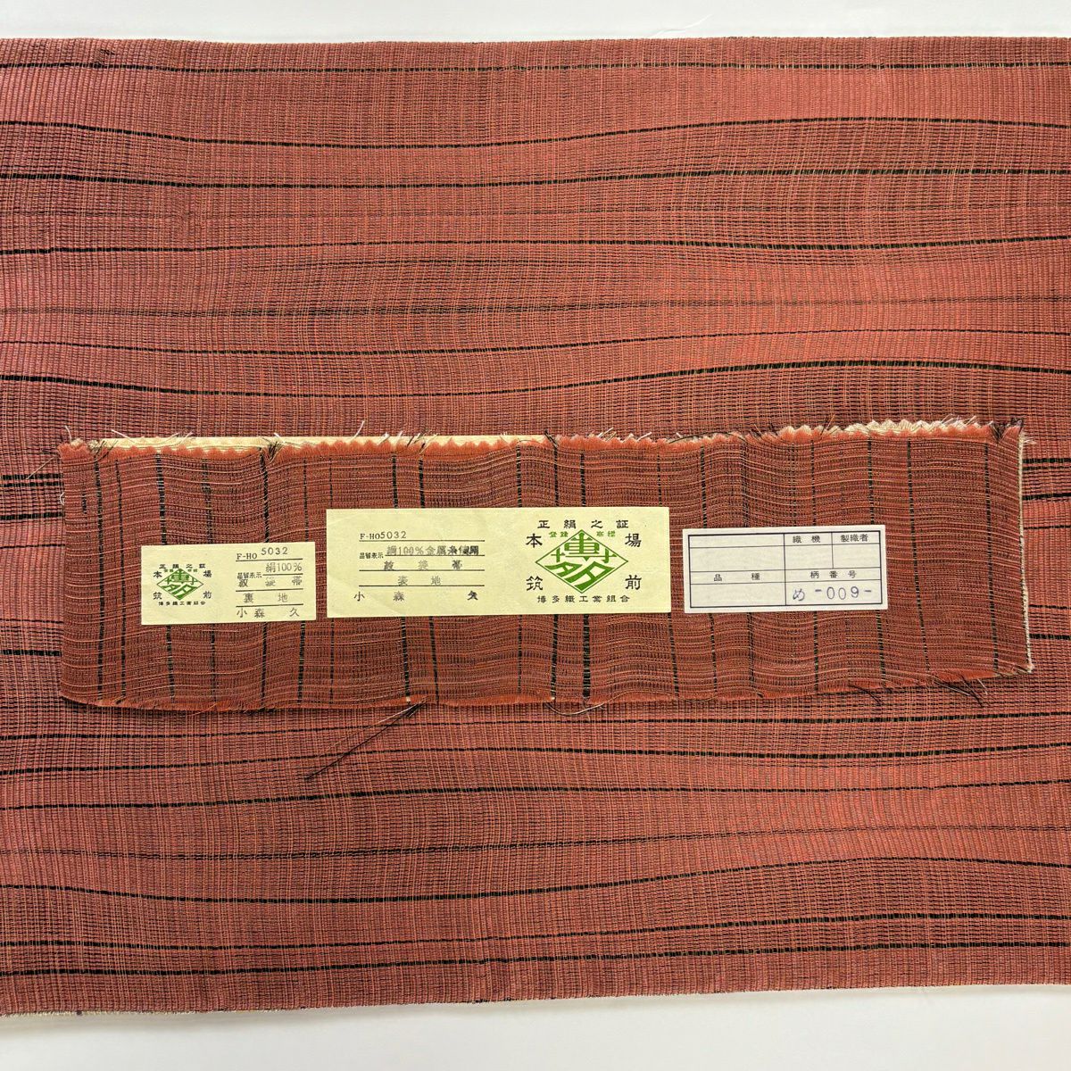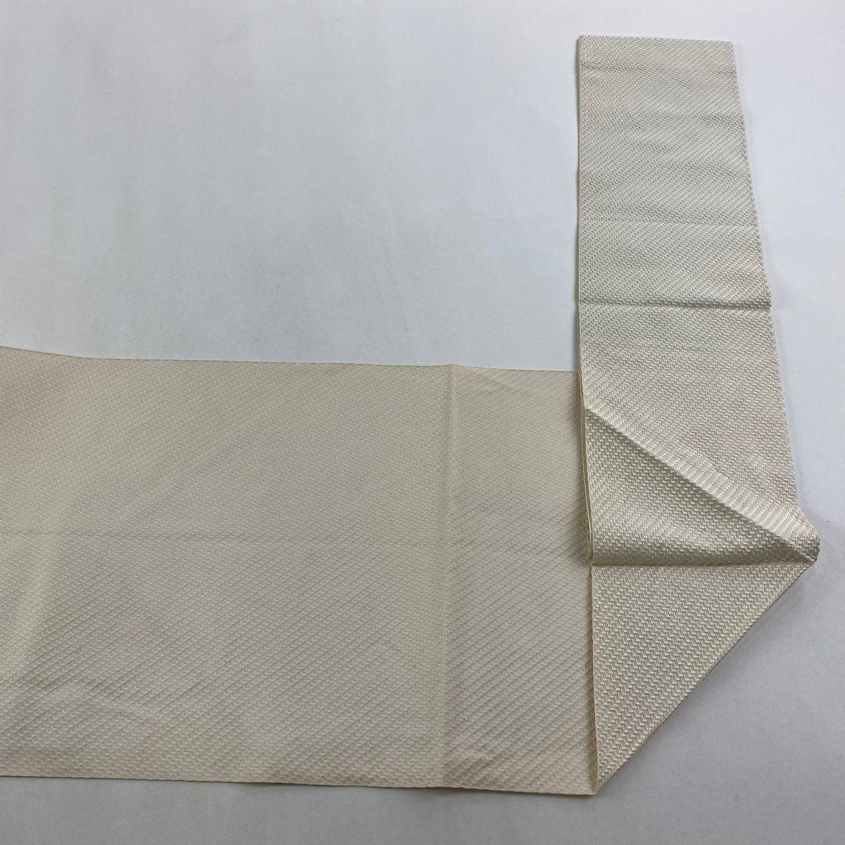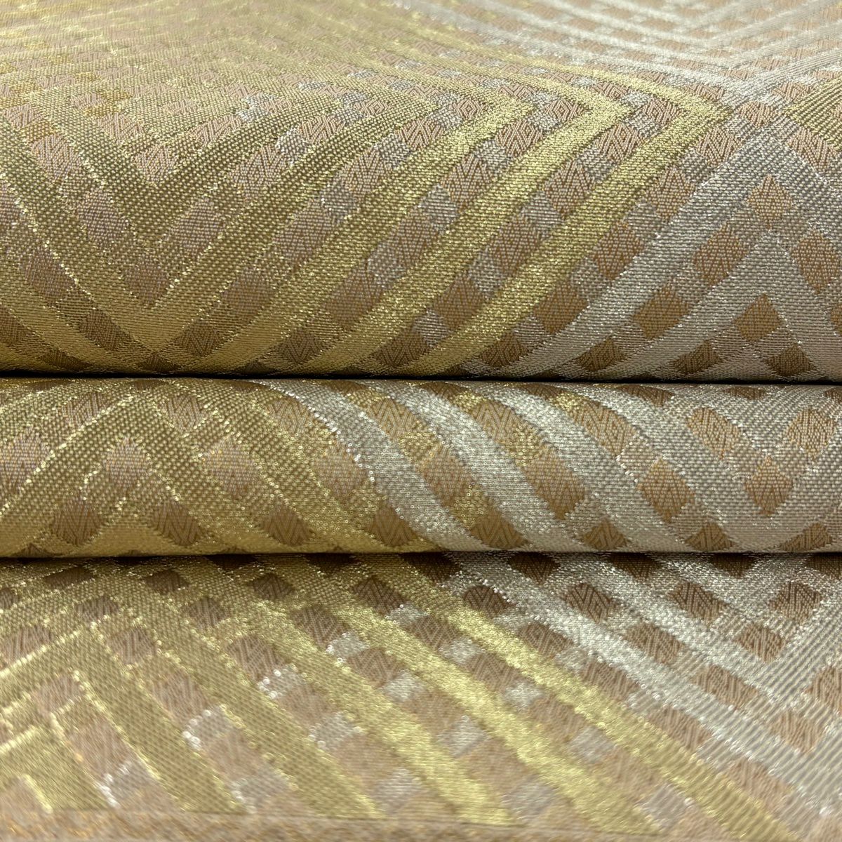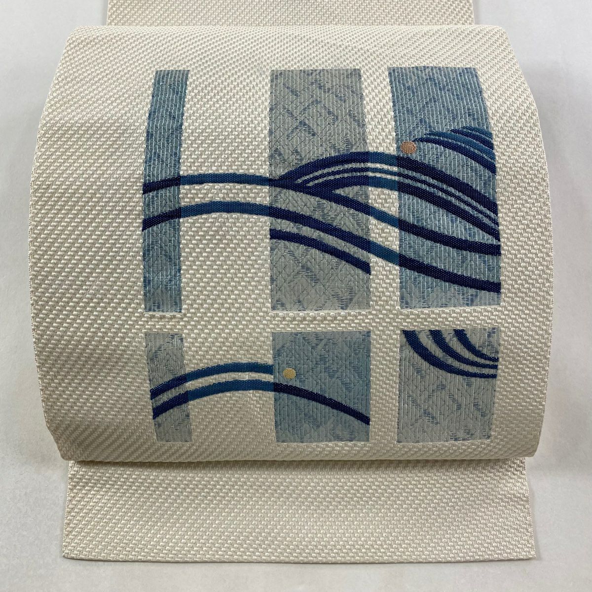 袋帯 逸品 落款あり 証紙あり 小森久 博多織 幾何学 ベージュ 全通 正絹
