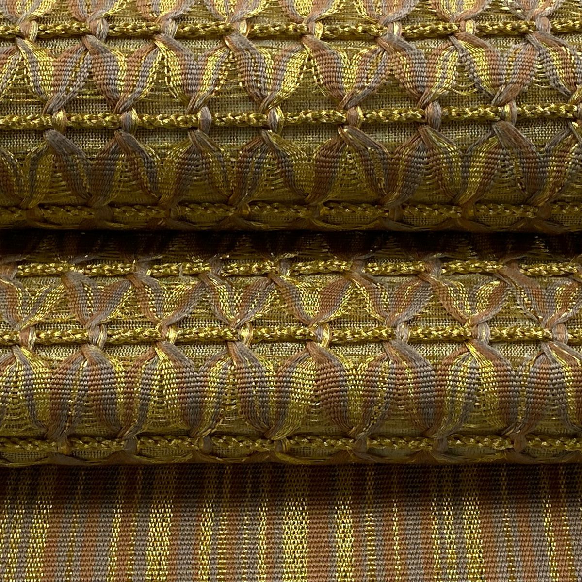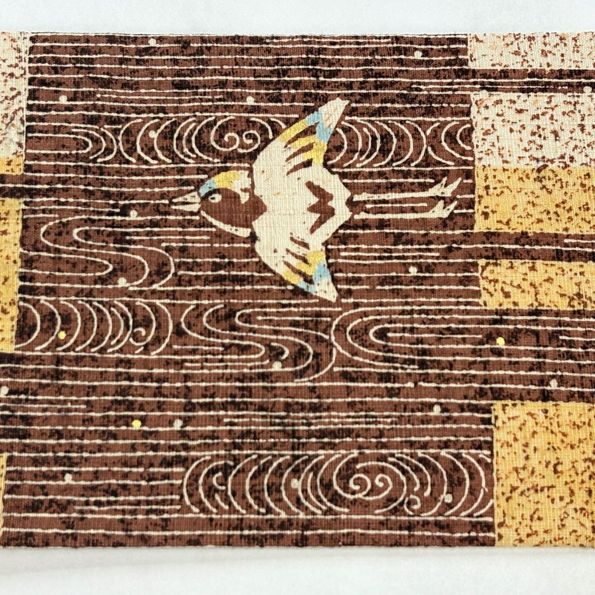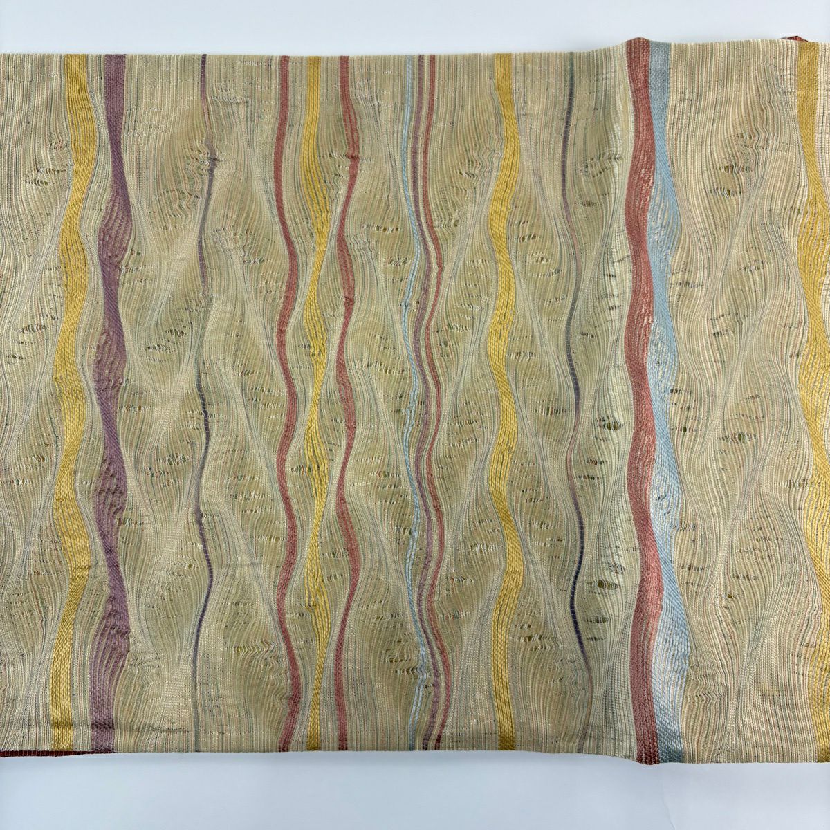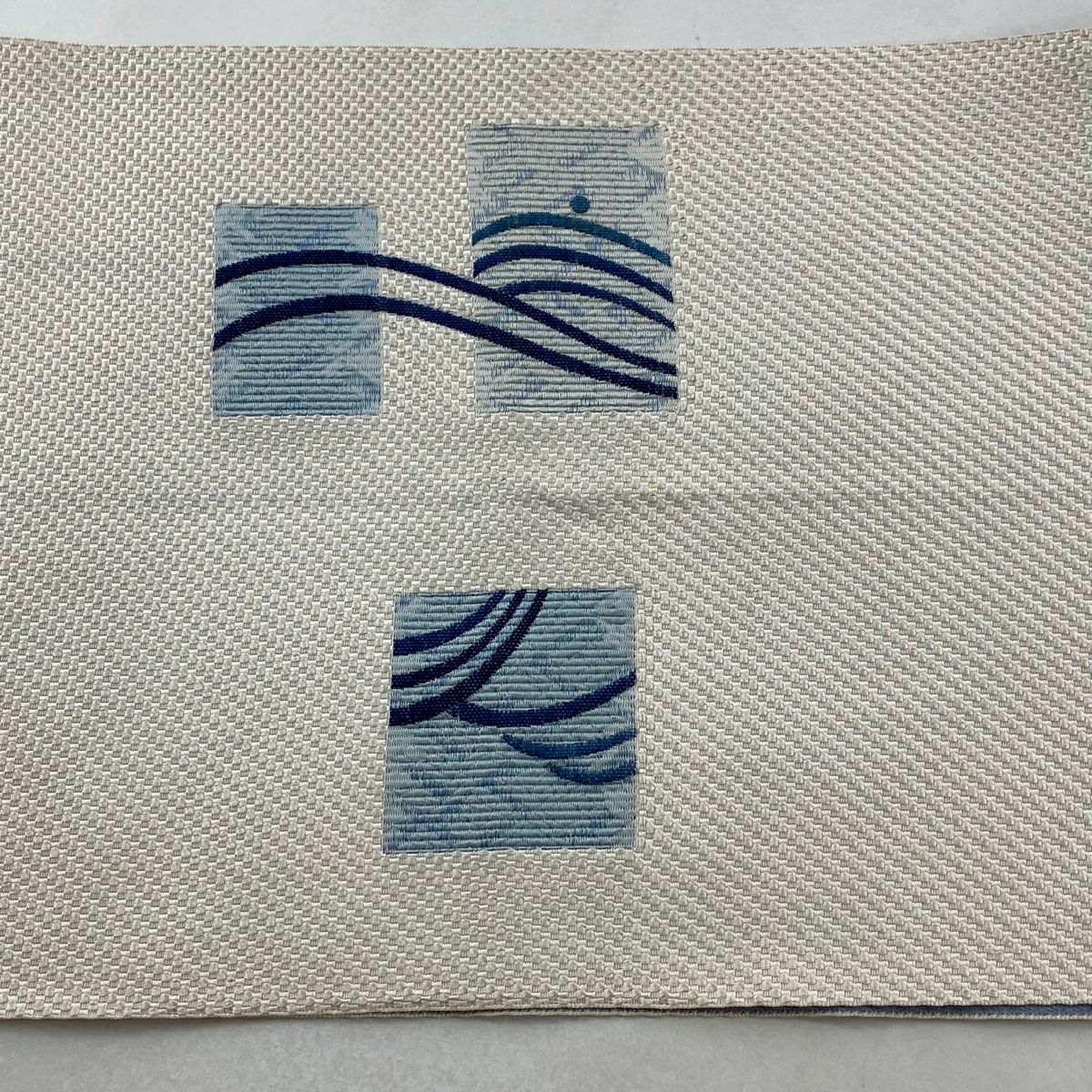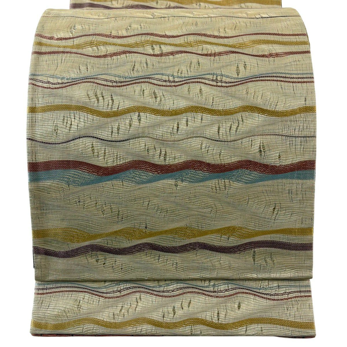 袋帯 逸品 落款あり 証紙あり 小森久 博多織 幾何学 ベージュ 全通 正絹