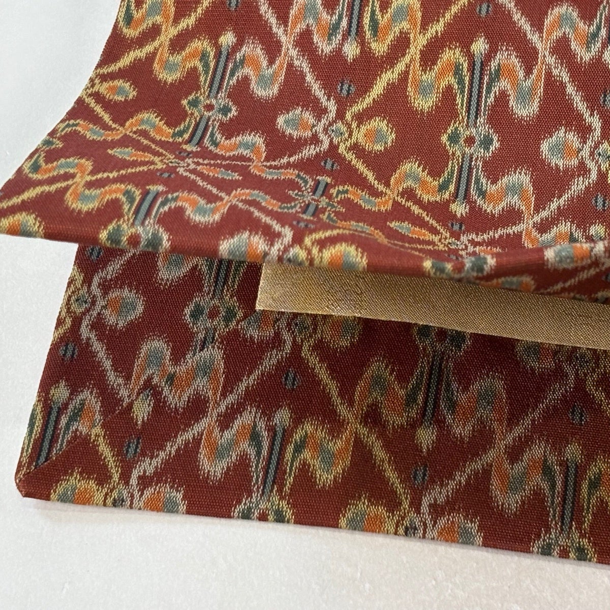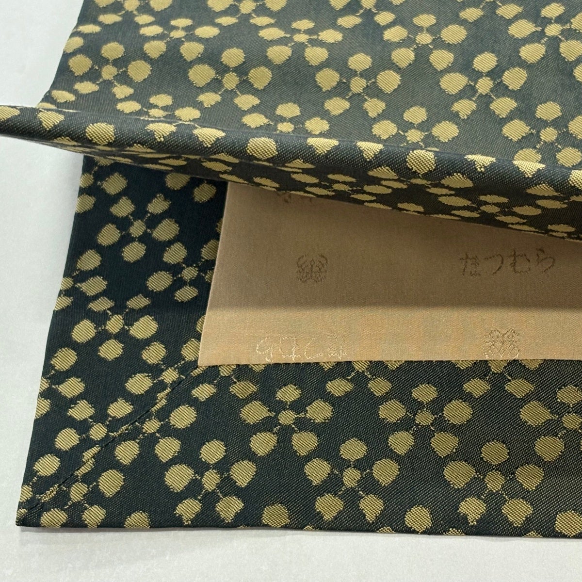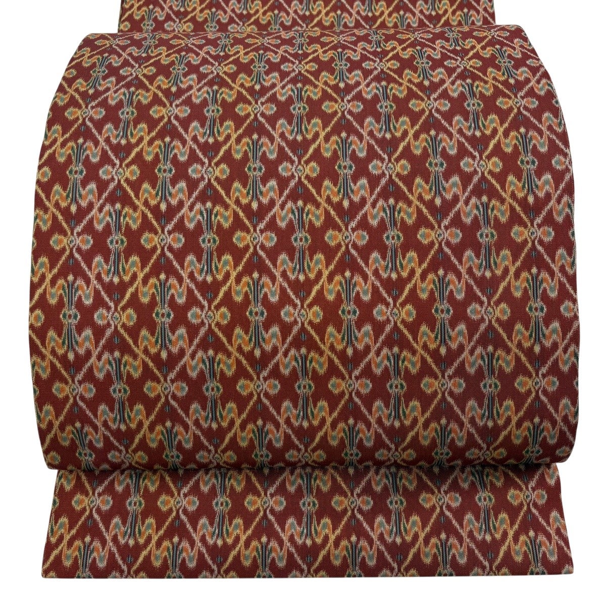【美品】 袋帯 逸品 曽根武勇 落款あり 斜め格子 菱 山吹茶色 全通 正絹