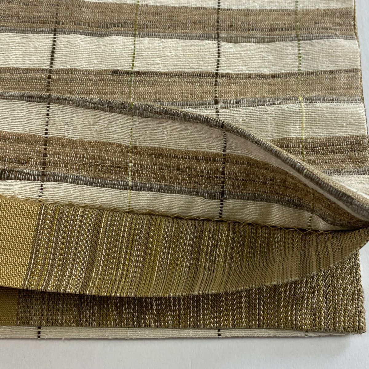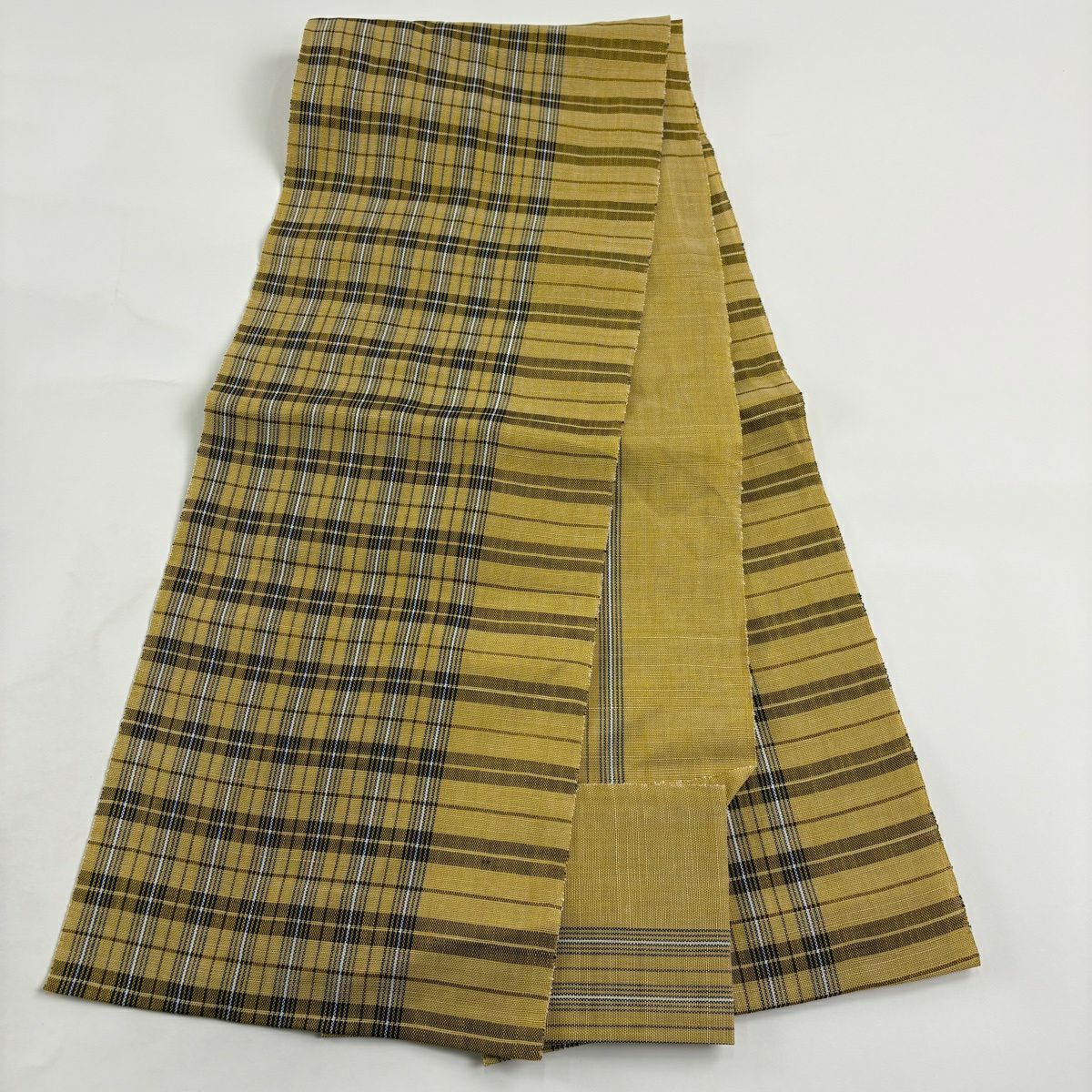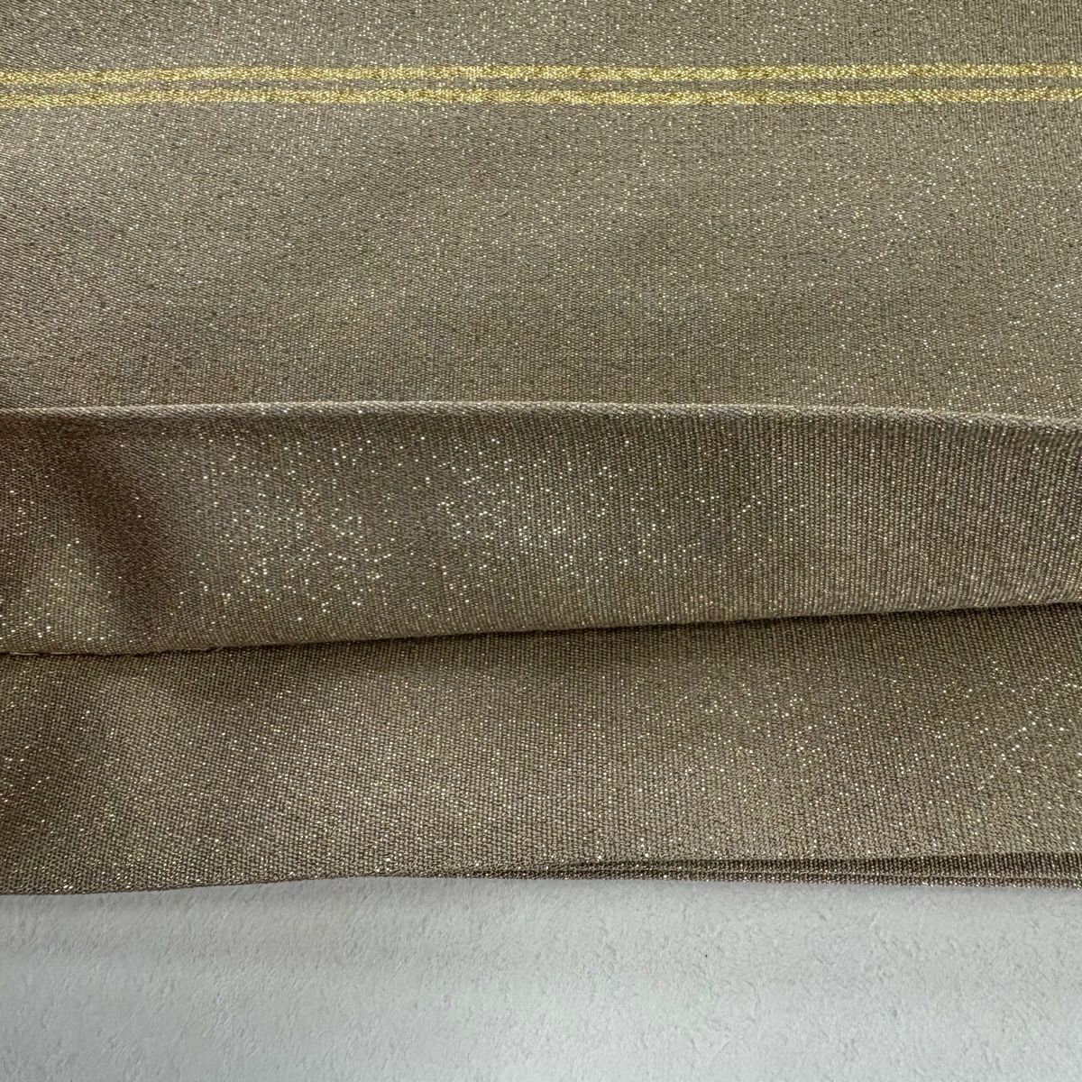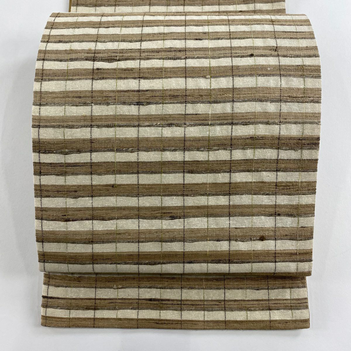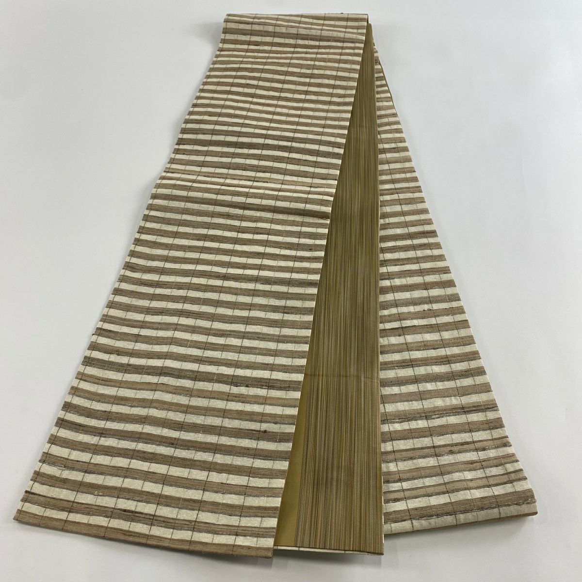 【美品】 名古屋帯 逸品 夏帯 八寸名古屋帯 松葉仕立て 紬地 格子 薄黄土色 正絹