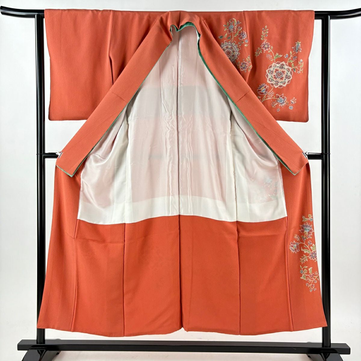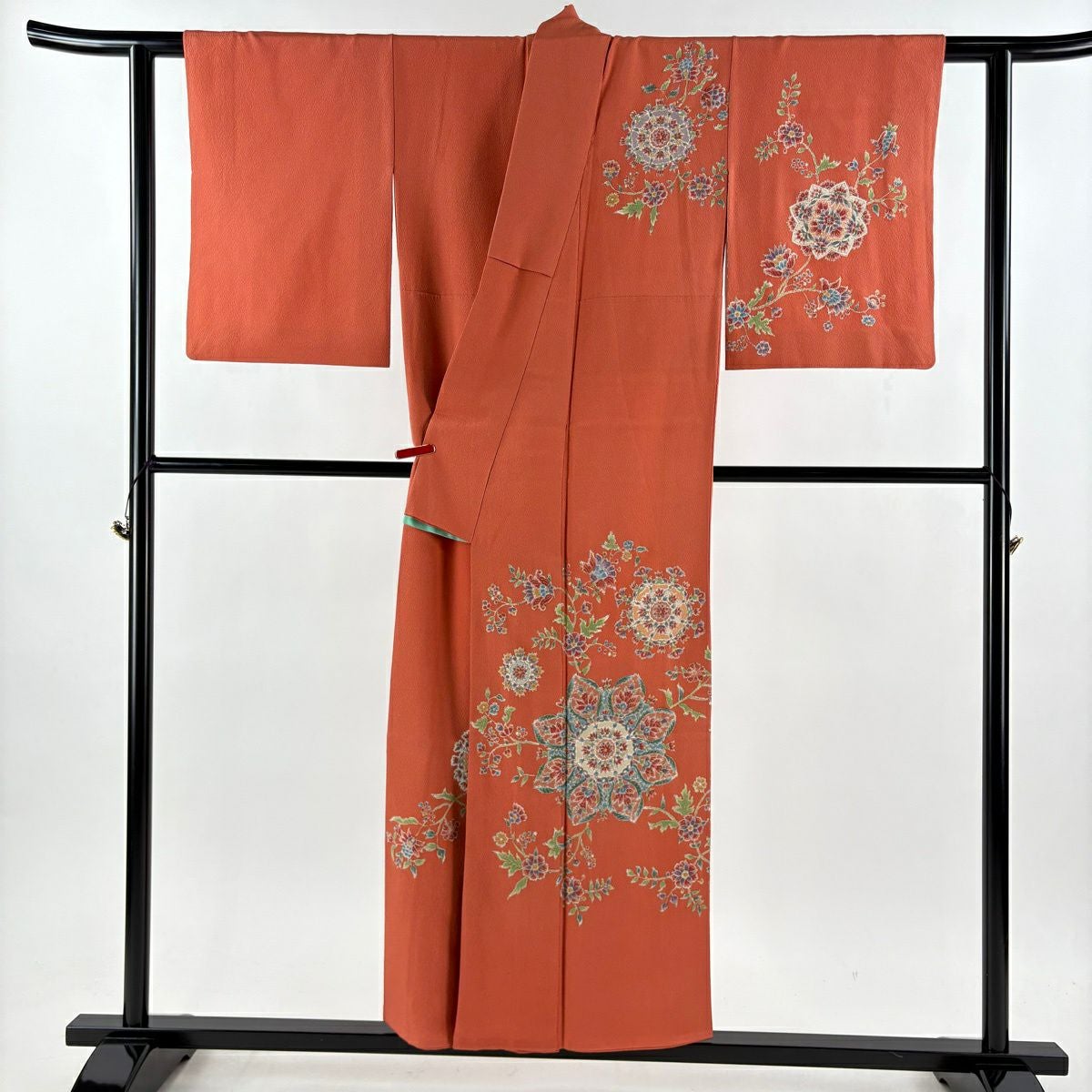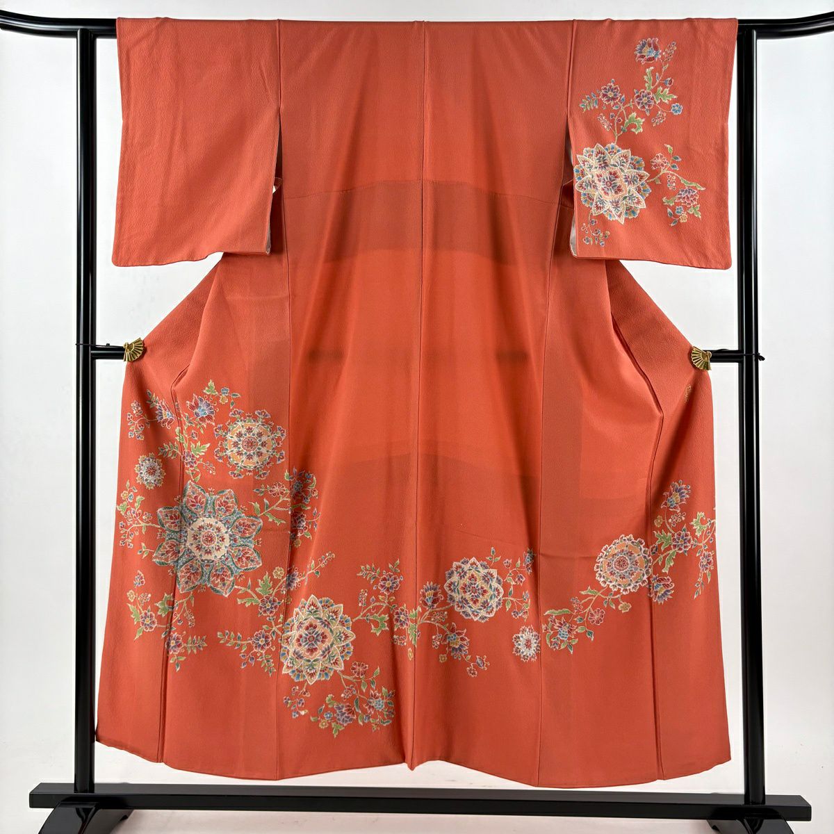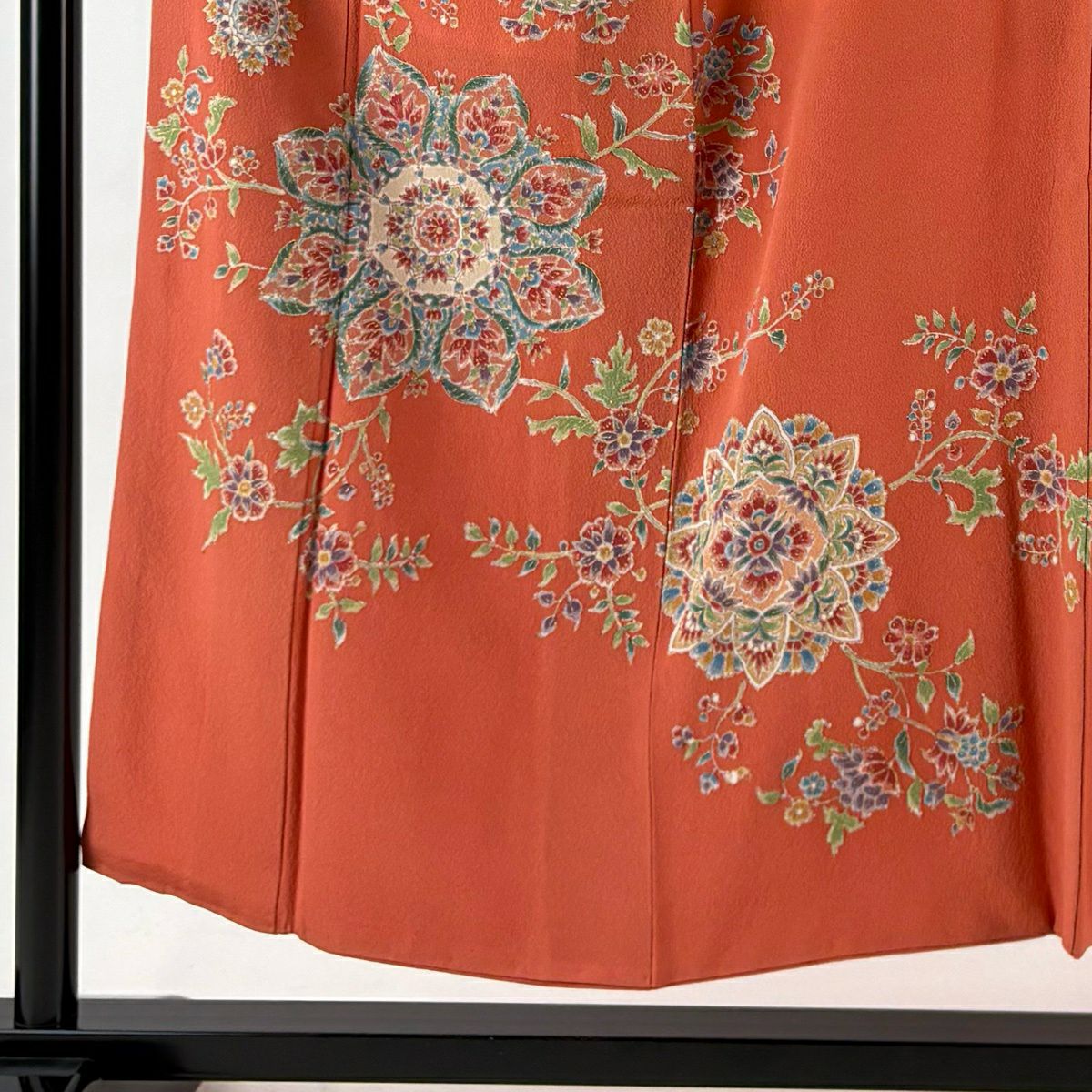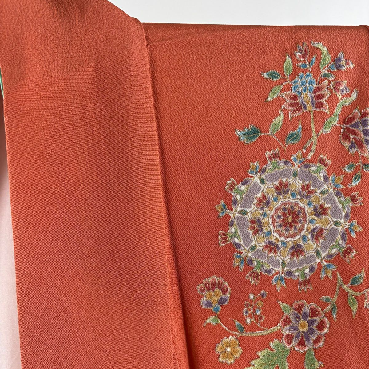 付下げ 身丈152cm 裄丈61cm S 袷 華文 草花 金彩 朱色 正絹 逸品