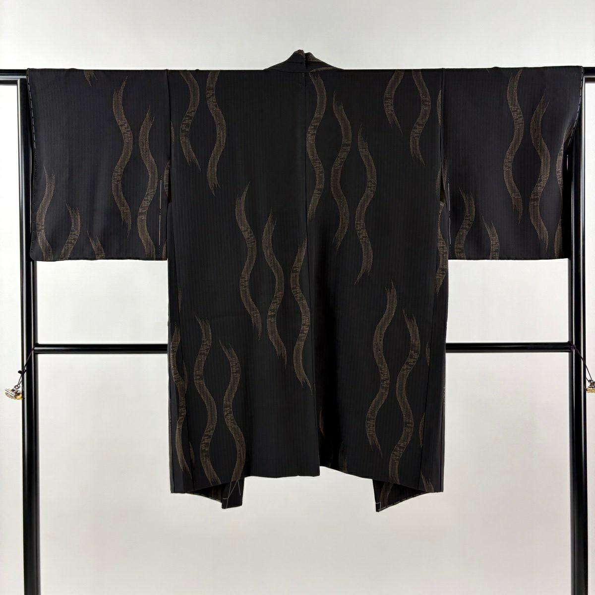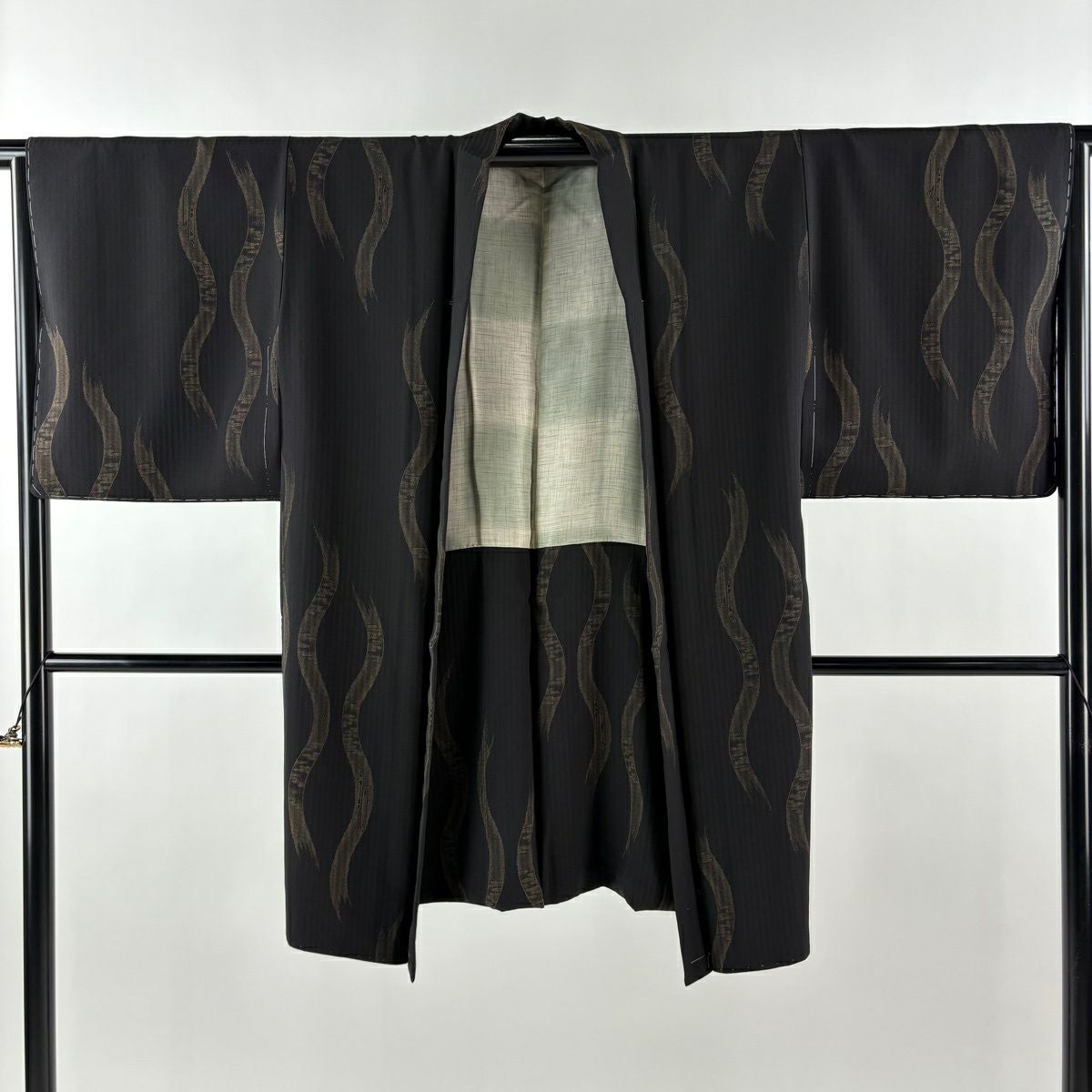 【美品】 羽織 身丈99cm 裄丈65.5cm M 立涌 キセル 黒 正絹 逸品