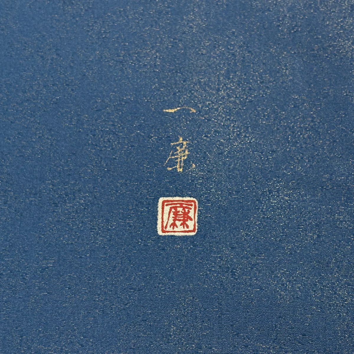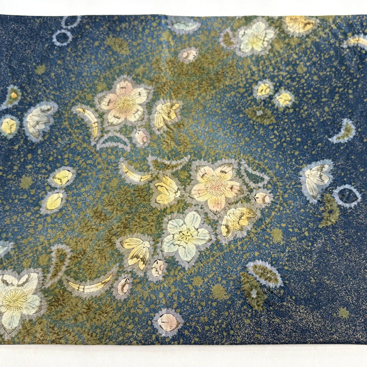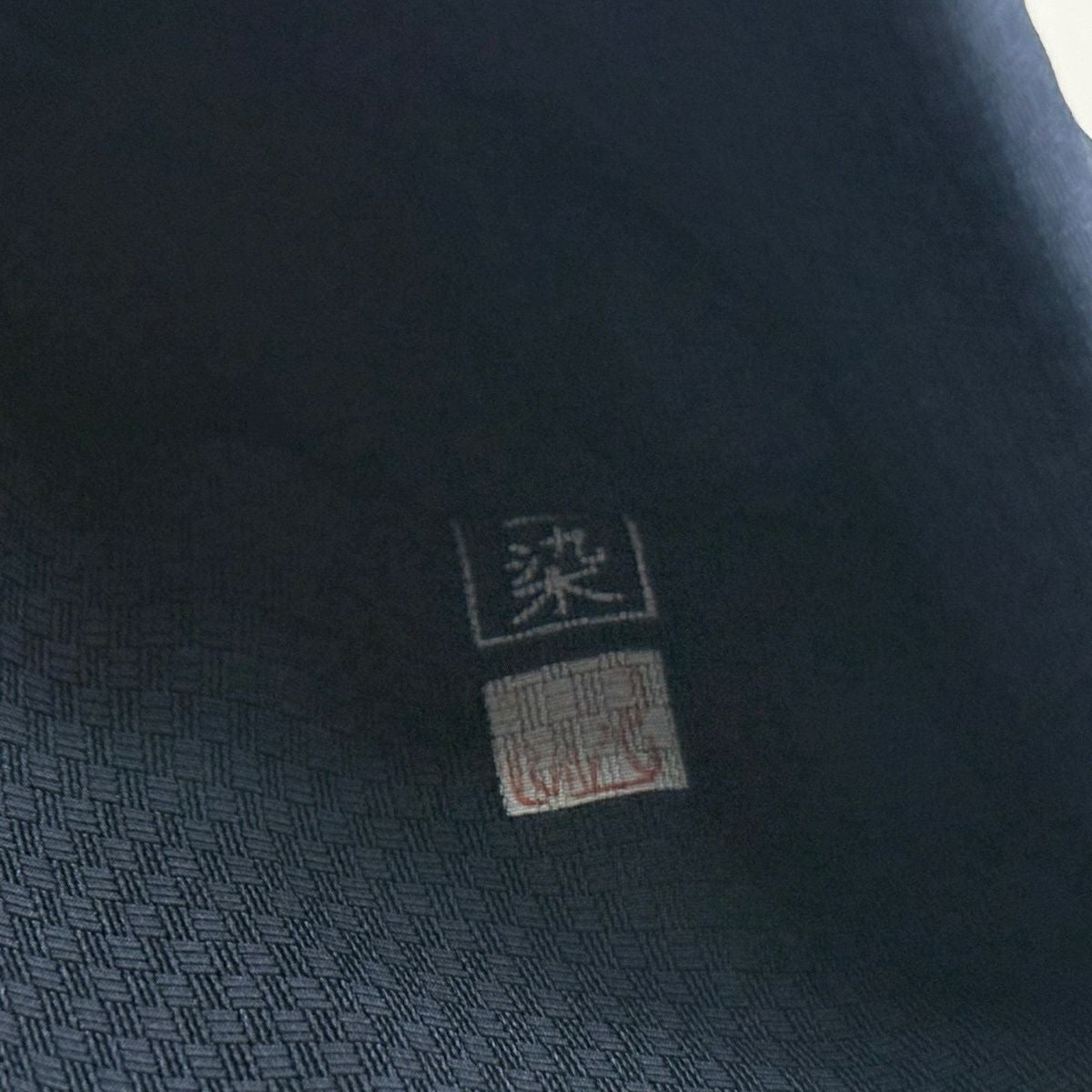 【美品】 袋帯 逸品 吉乃一廉 落款あり 辻が花 銀通し 紺色 お太鼓柄 正絹