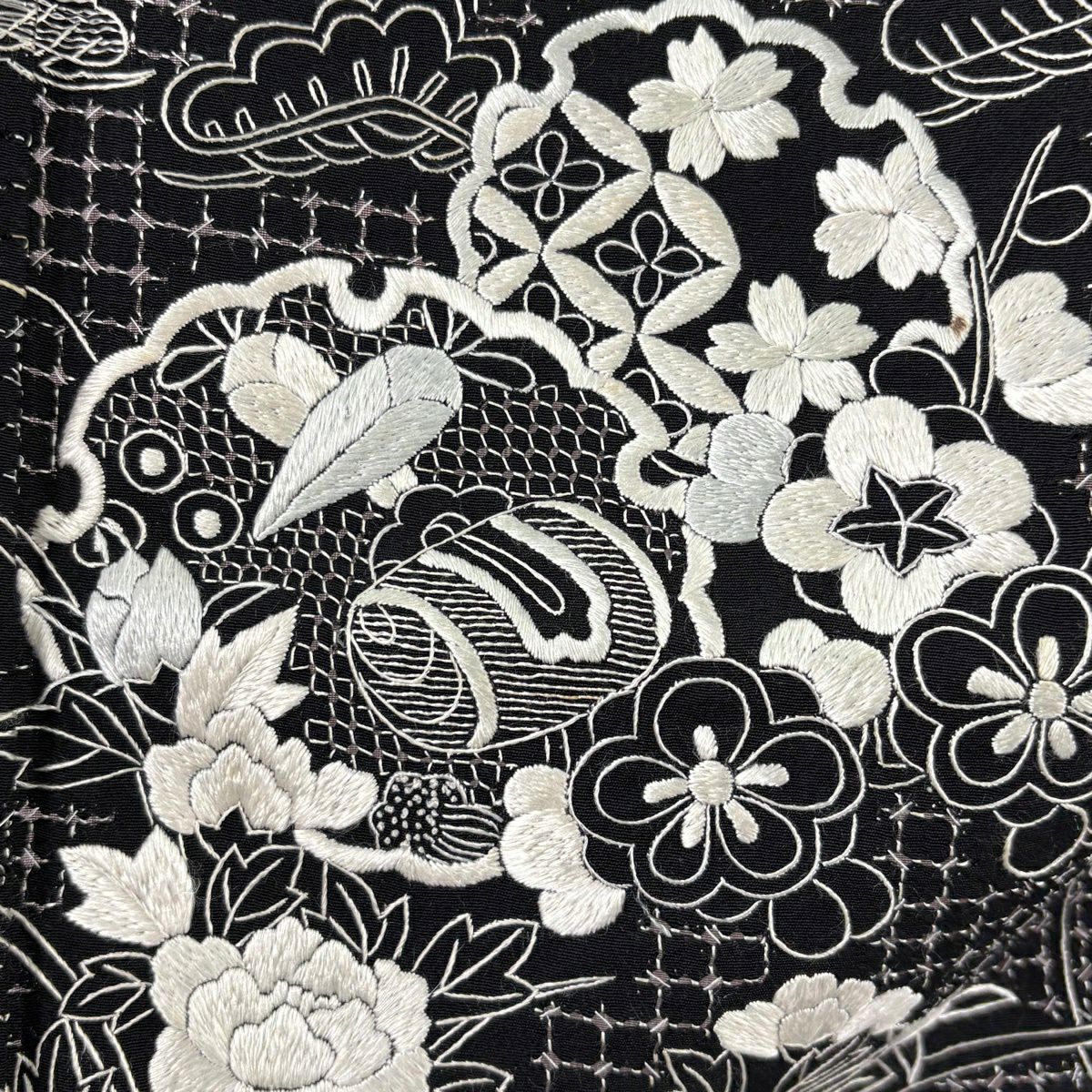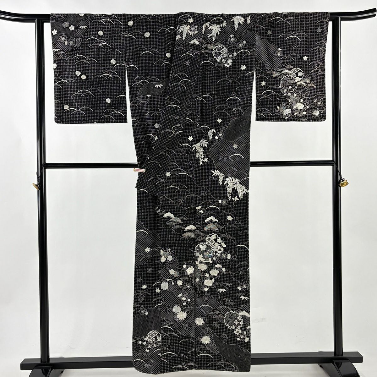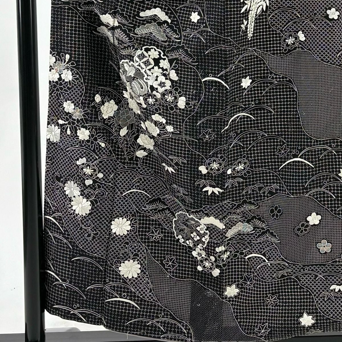 訪問着 身丈156cm 裄丈63cm S 袷 雪輪 松竹梅 刺繍 黒 正絹 逸品