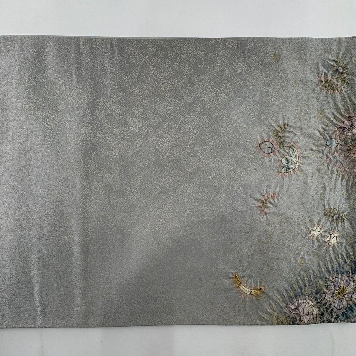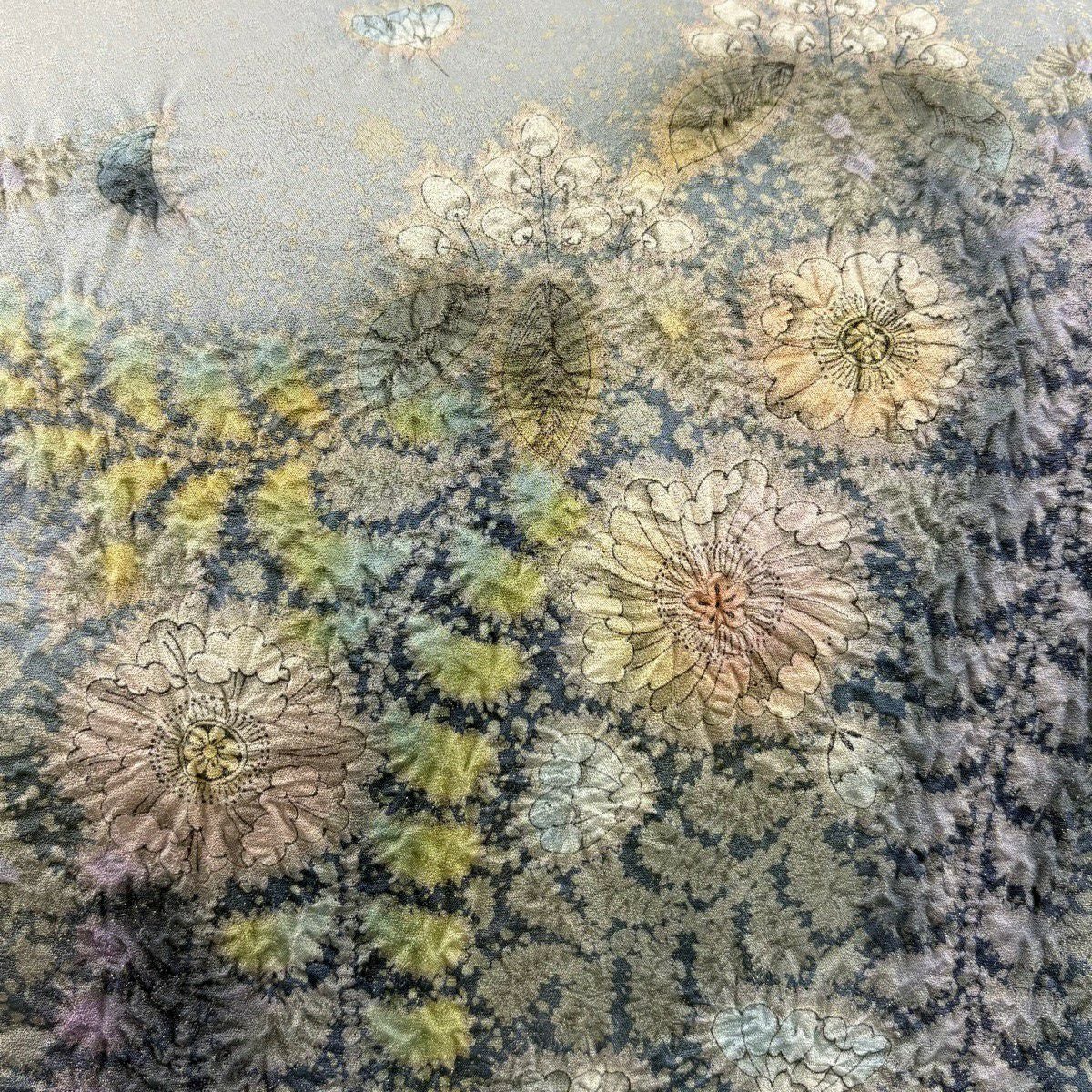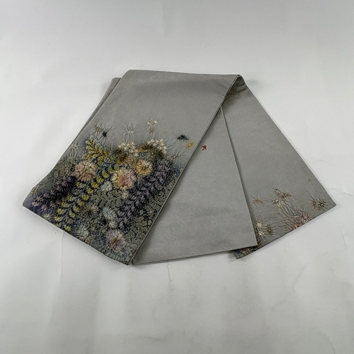 【美品】 袋帯 逸品 吉乃一廉 落款あり 辻が花 金通し 灰色 お太鼓柄 正絹