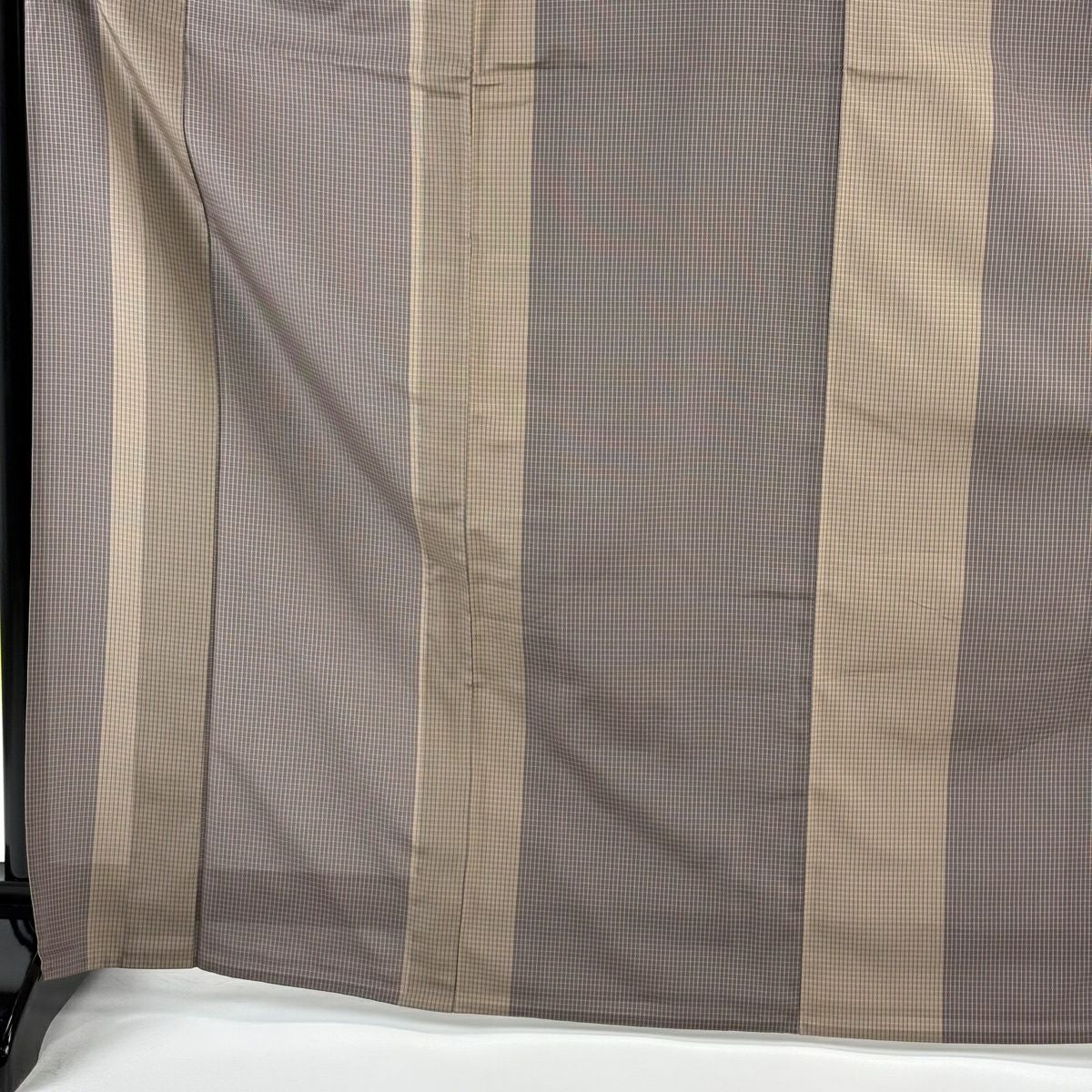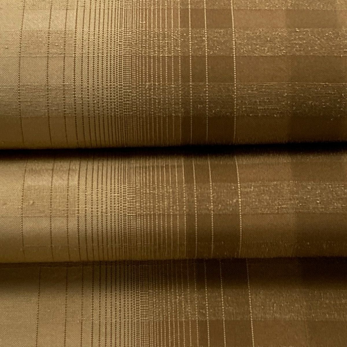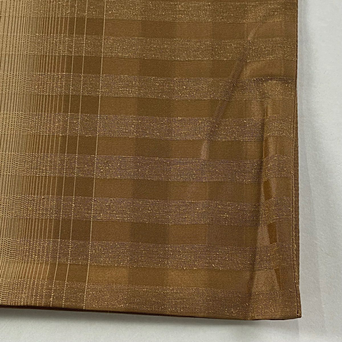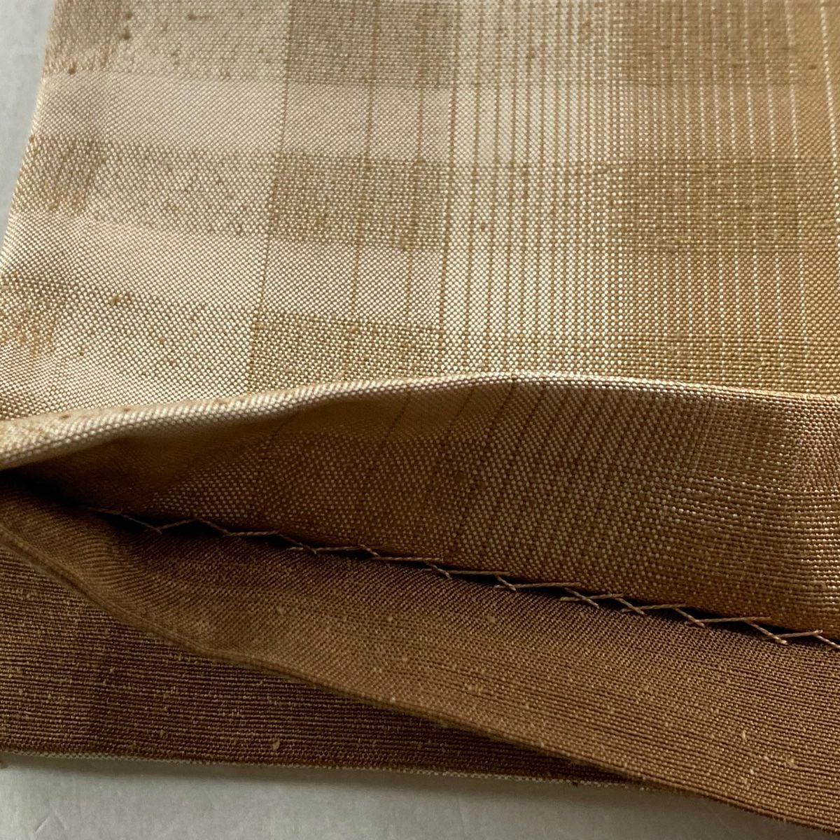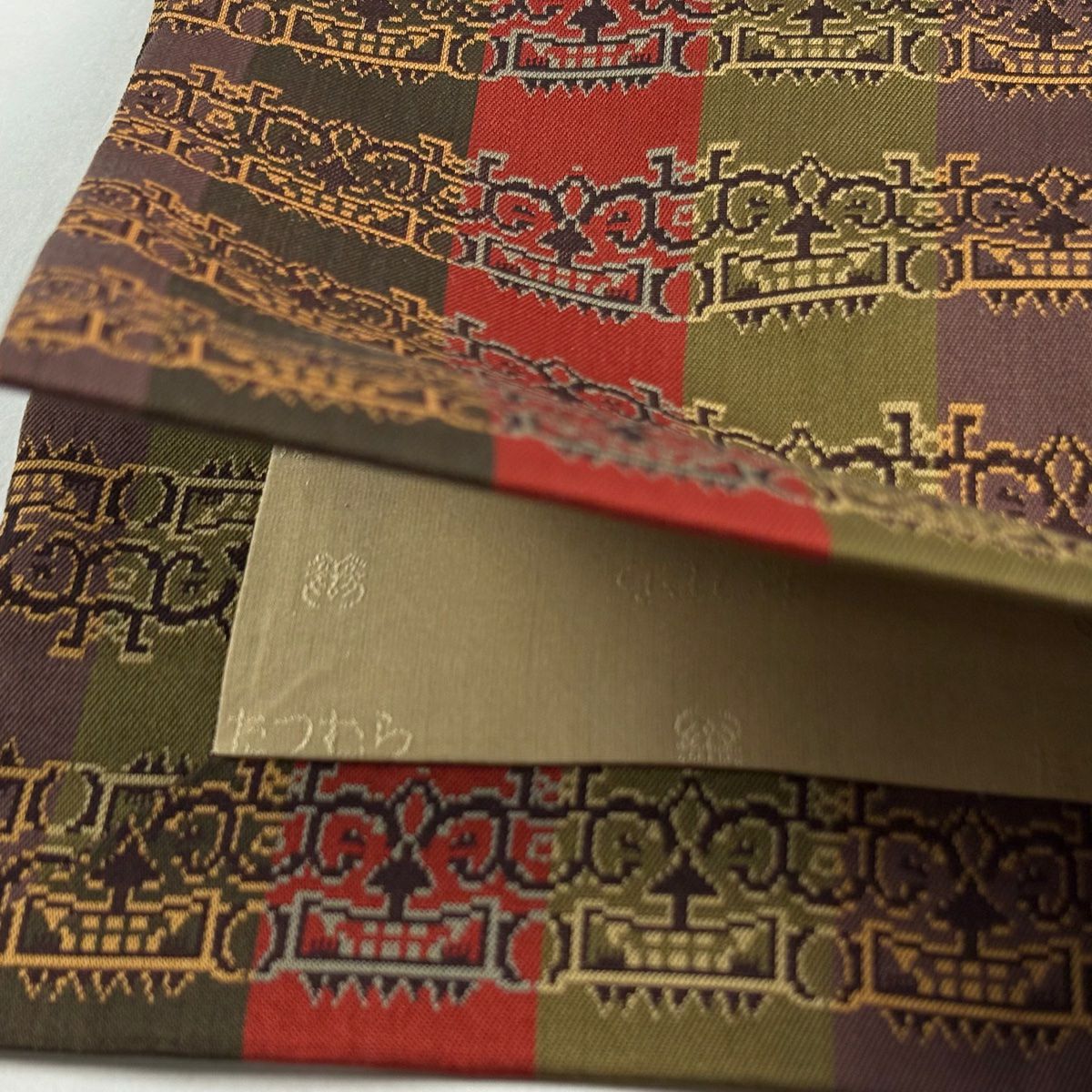 【在庫一掃】 袋帯 逸品 証紙あり 紬地 雪の中のきれ 格子 茶色 全通 正絹
