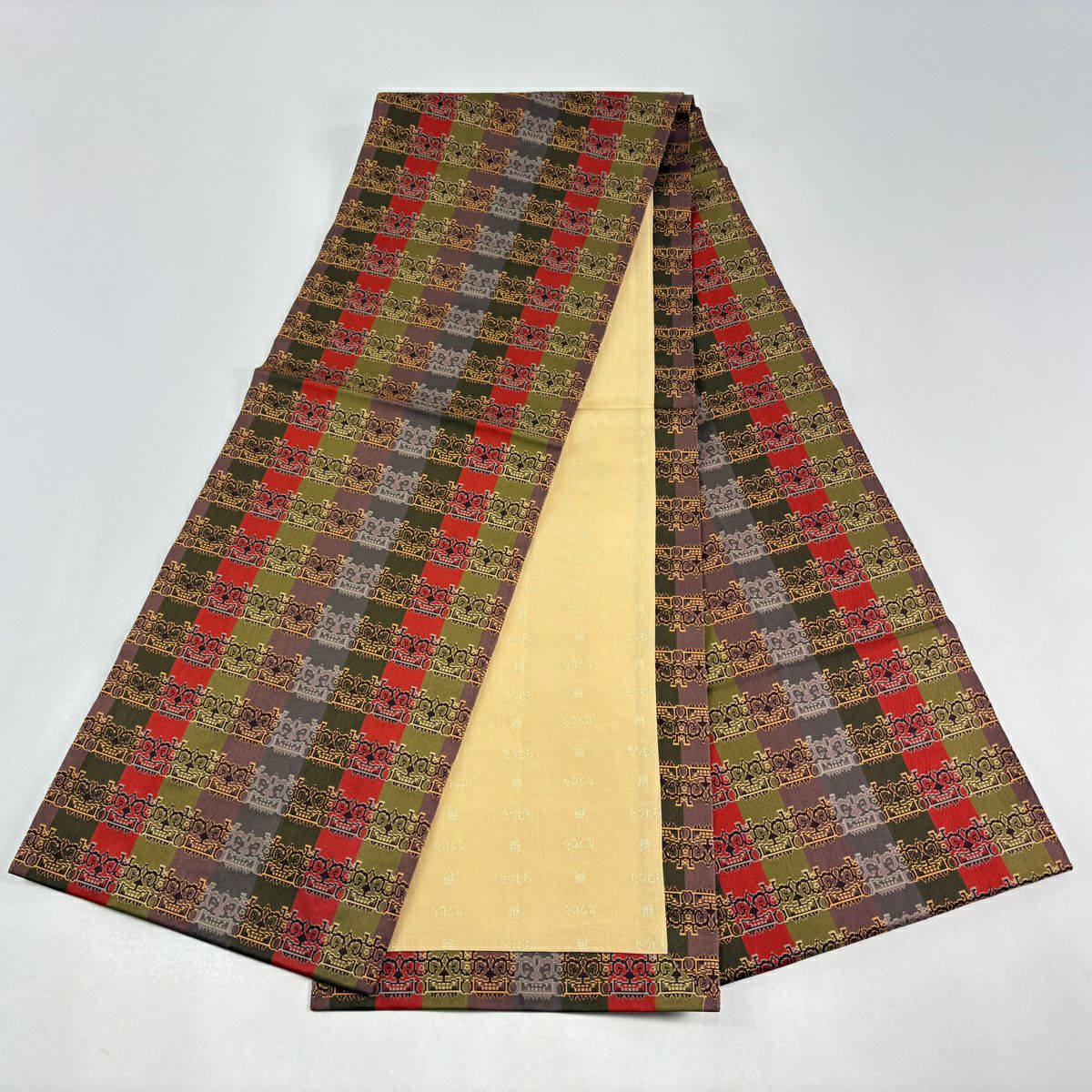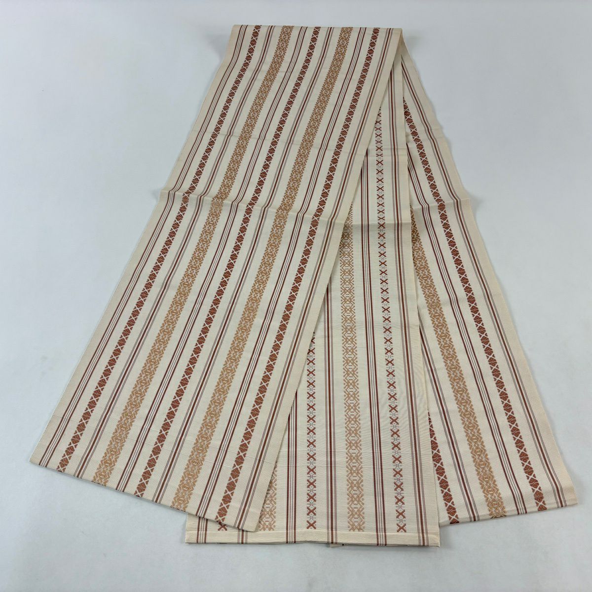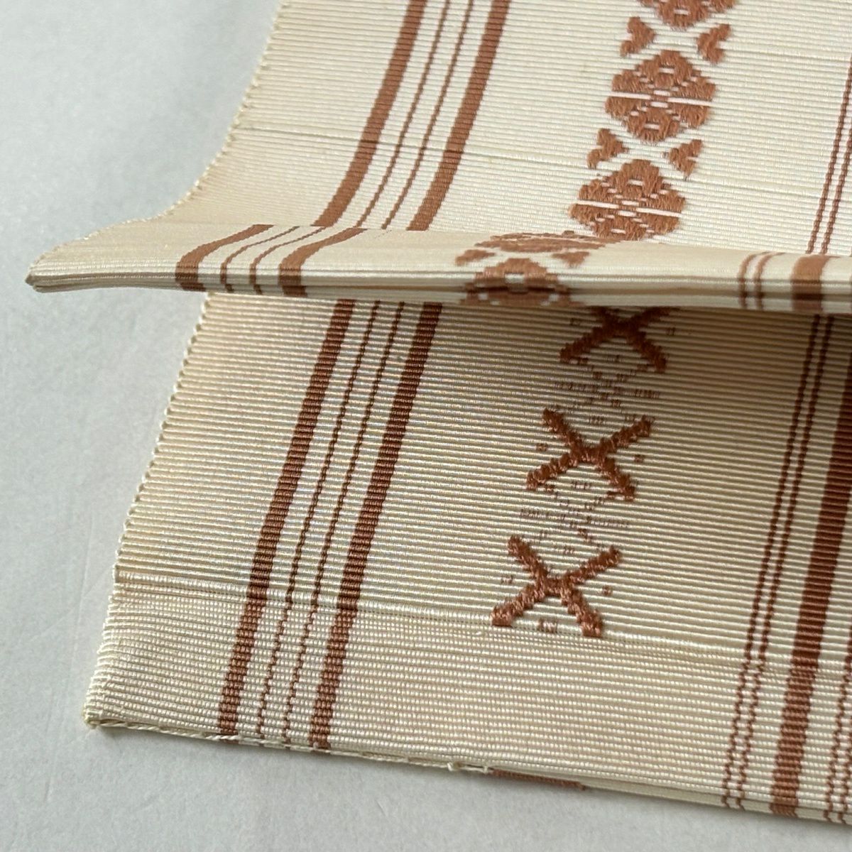 名古屋帯 逸品 人間国宝 小川善三郎 八寸名古屋帯 博多織 献上柄 ベージュ 正絹
