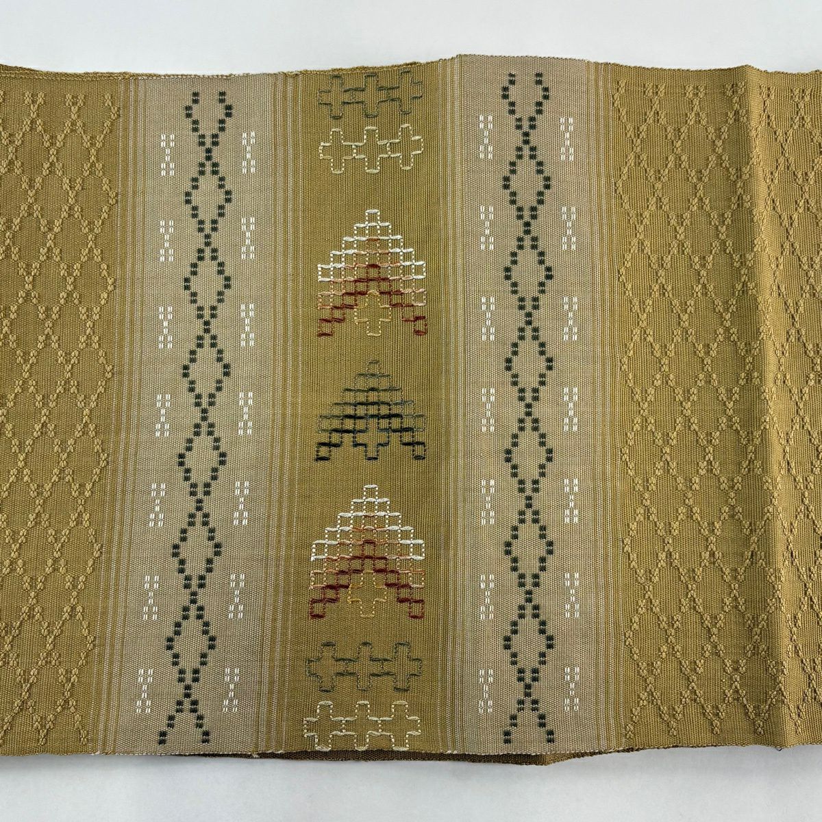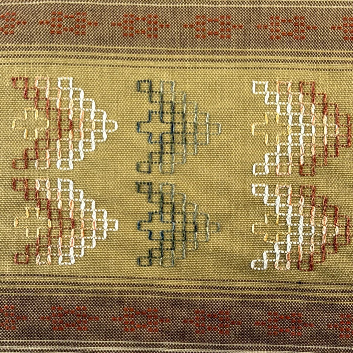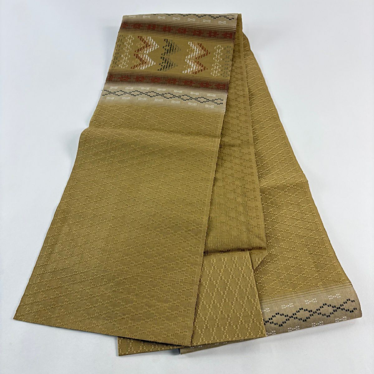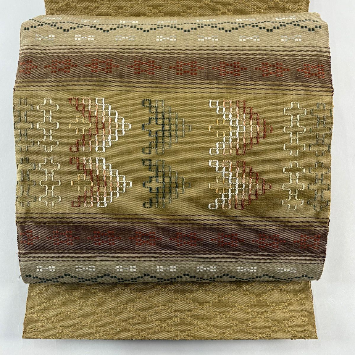 名古屋帯 逸品 人間国宝 小川善三郎 八寸名古屋帯 博多織 献上柄 ベージュ 正絹