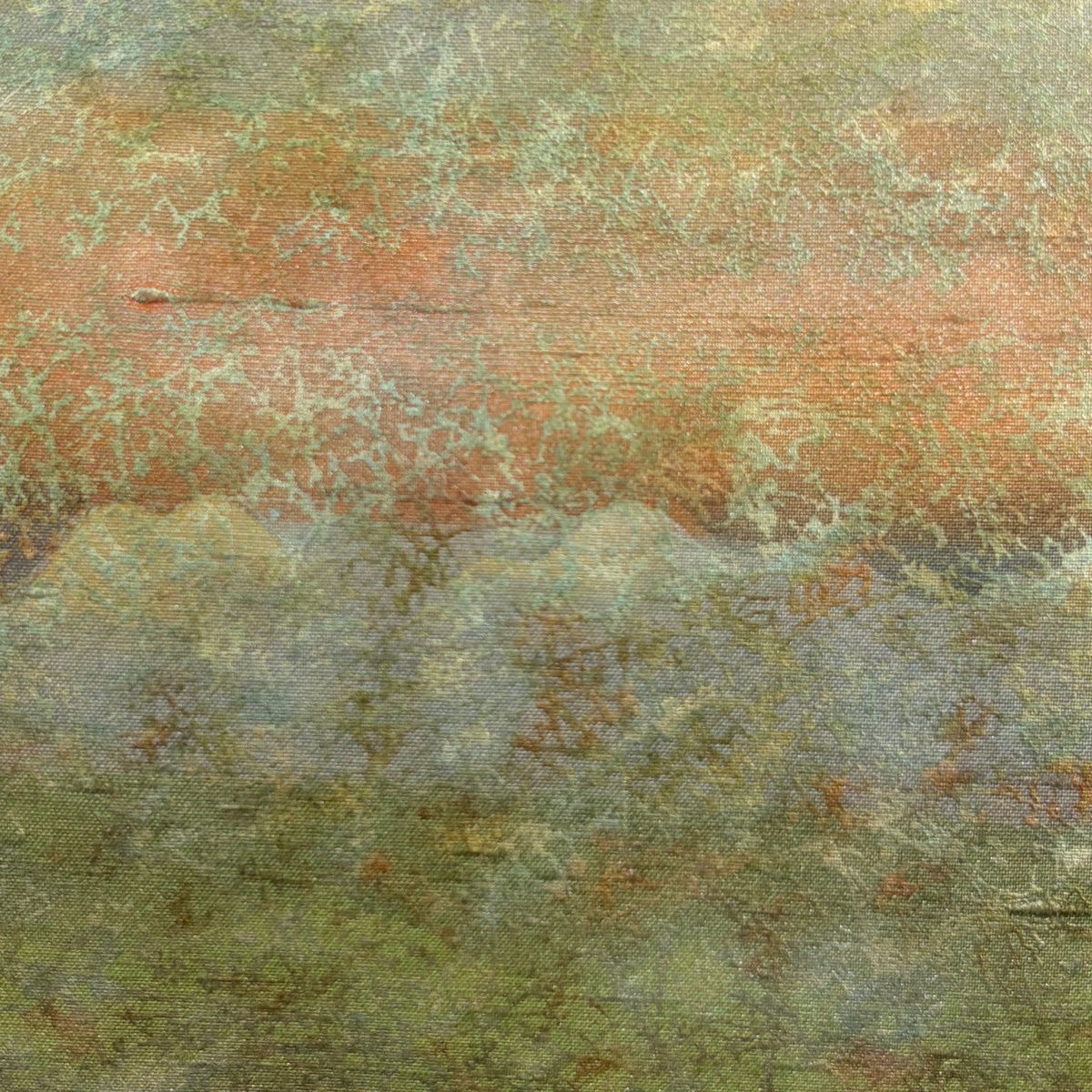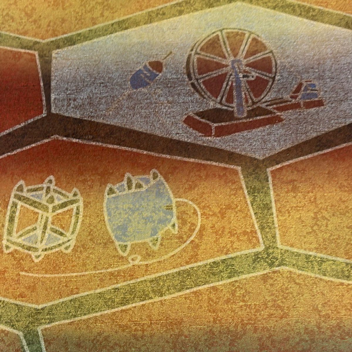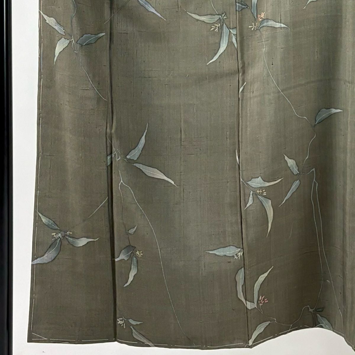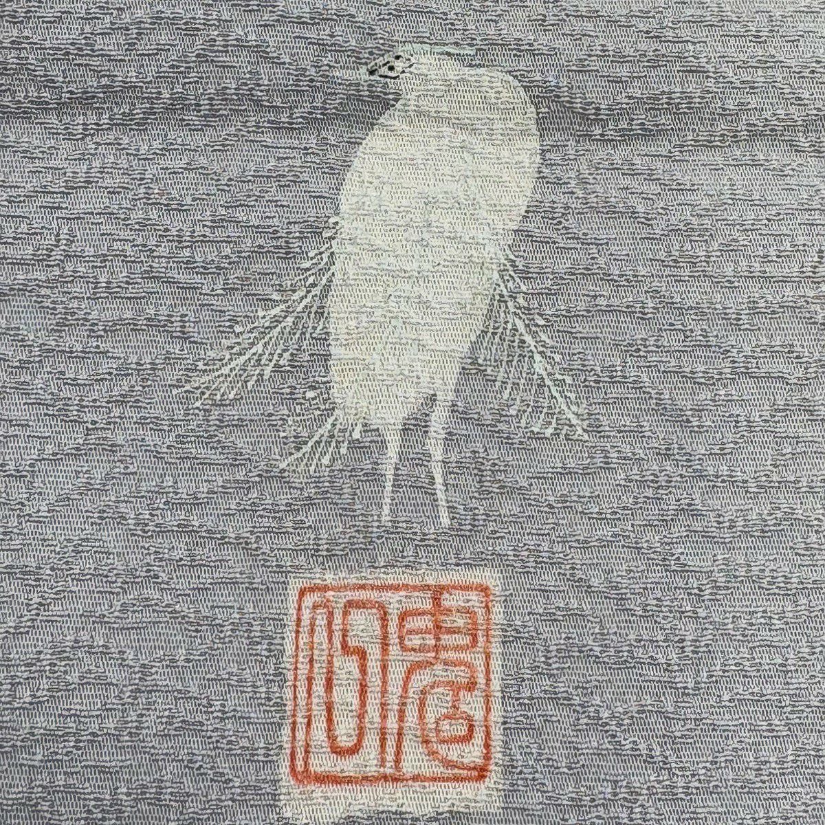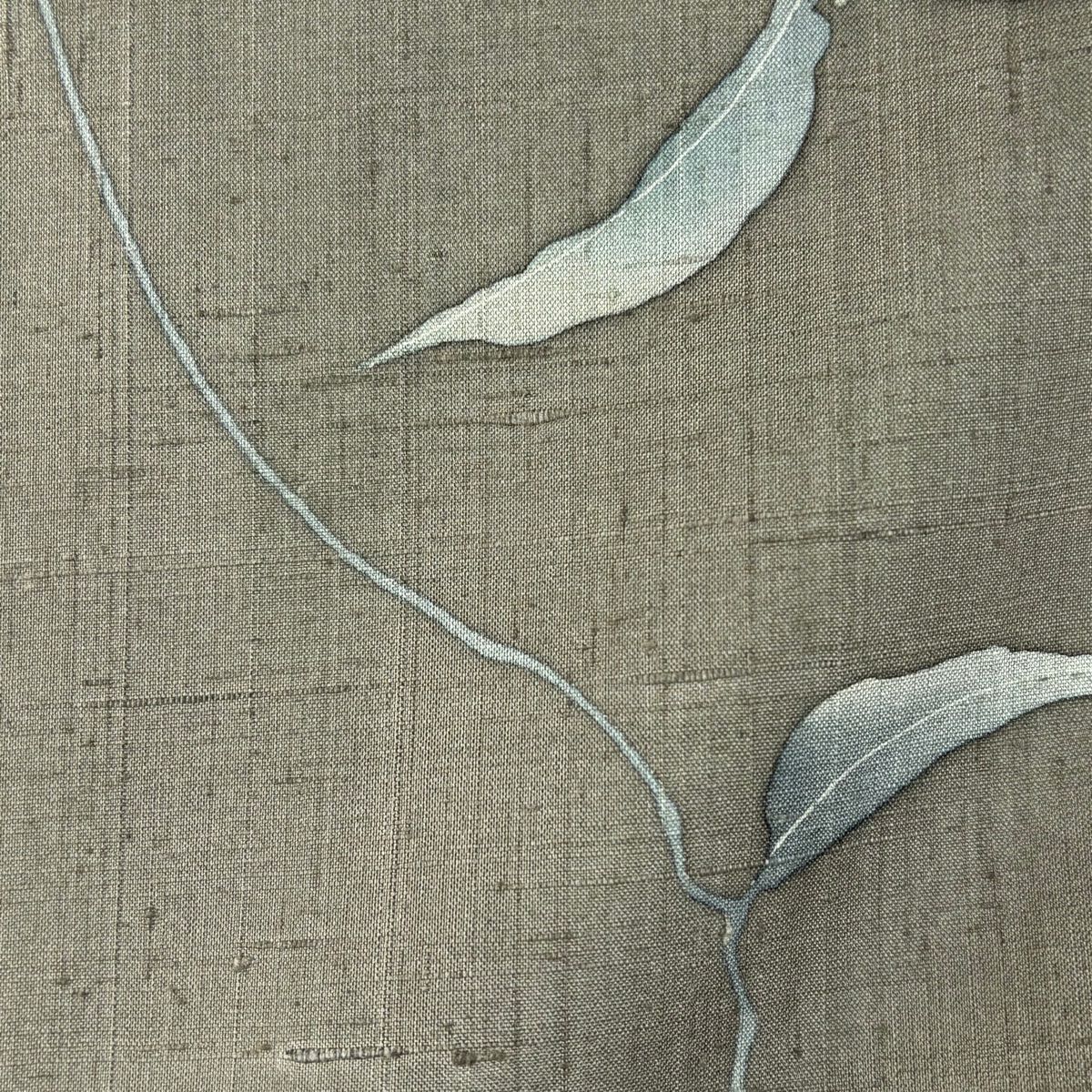 【美品】 名古屋帯 逸品 城間栄順 落款あり やまと 紬 草花 風景 灰緑 正絹