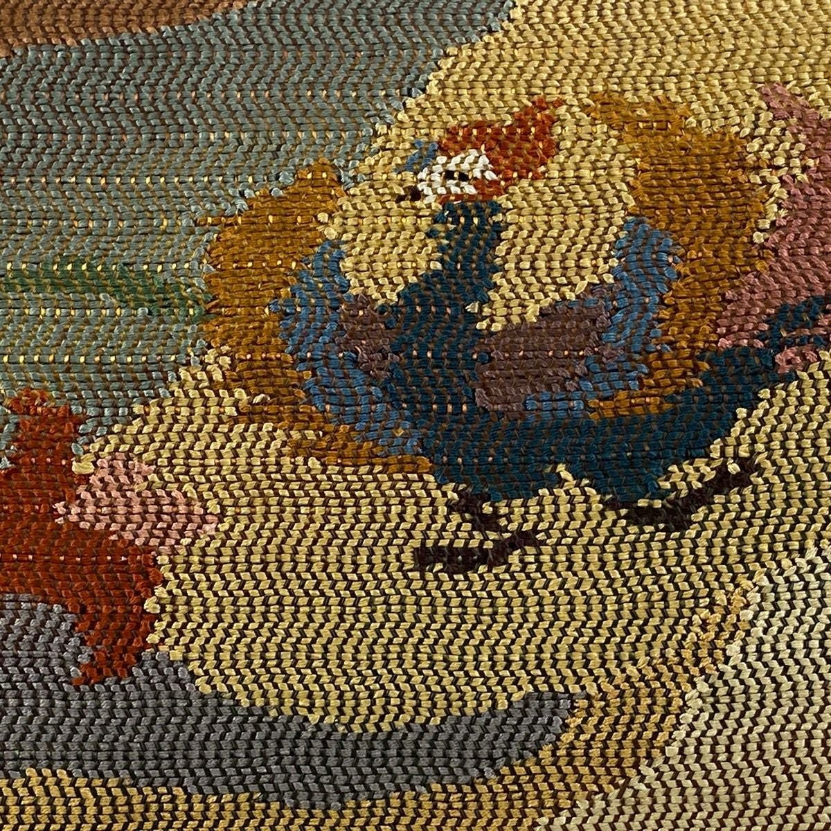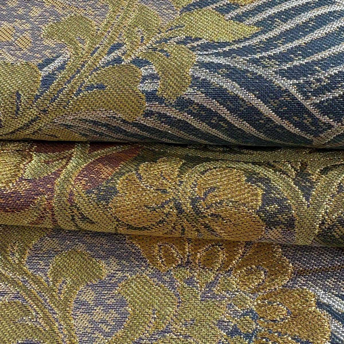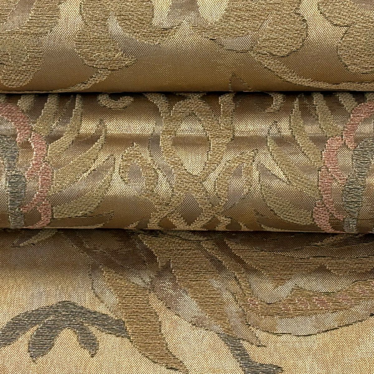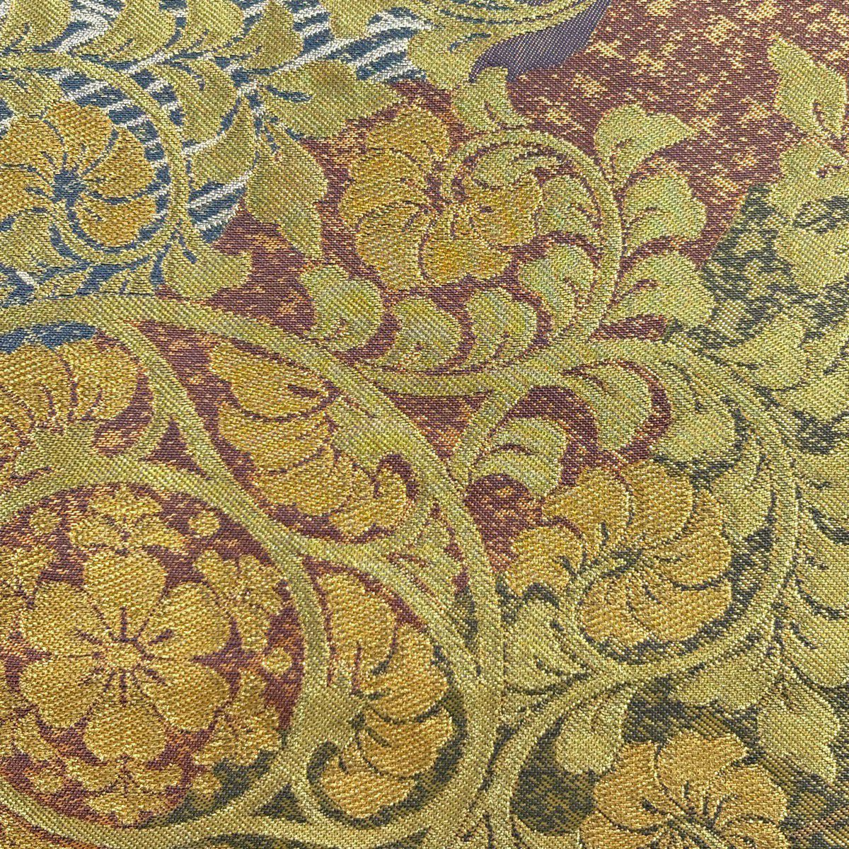 【美品】 袋帯 逸品 蒋雪英 落款あり 葡萄唐草 刺繍 箔 金色 お太鼓柄 正絹