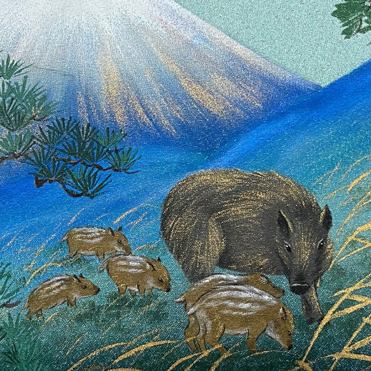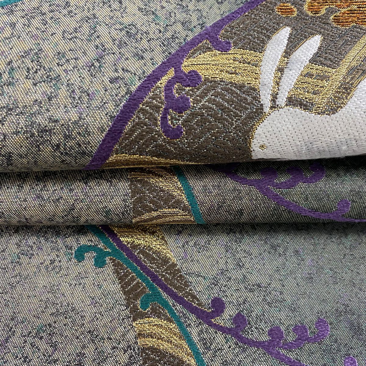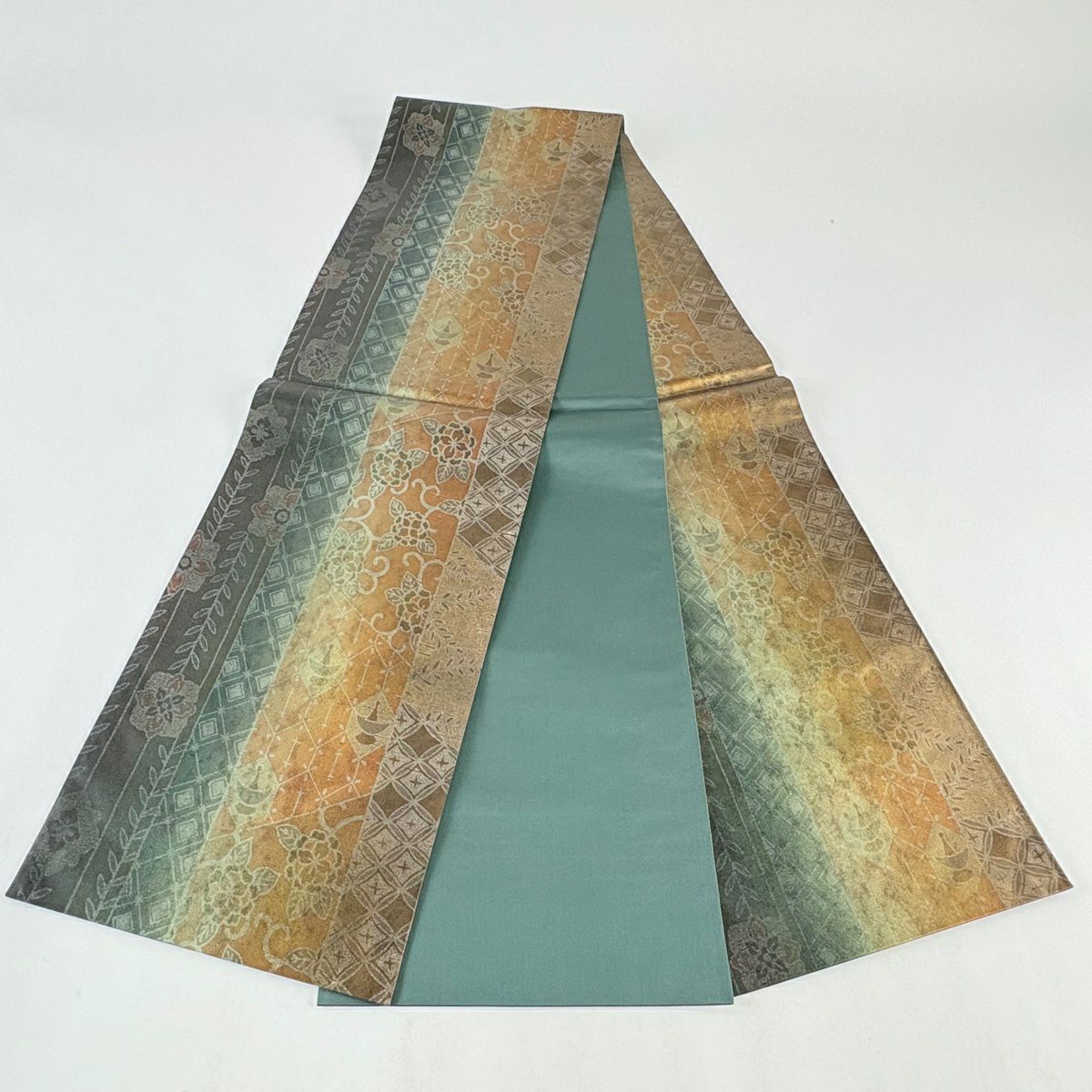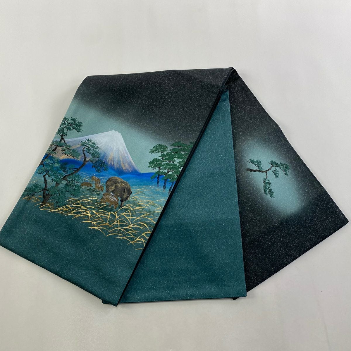 【在庫一掃】 【美品】 袋帯 逸品 富士山 猪 銀糸 金彩 青緑 お太鼓柄 正絹