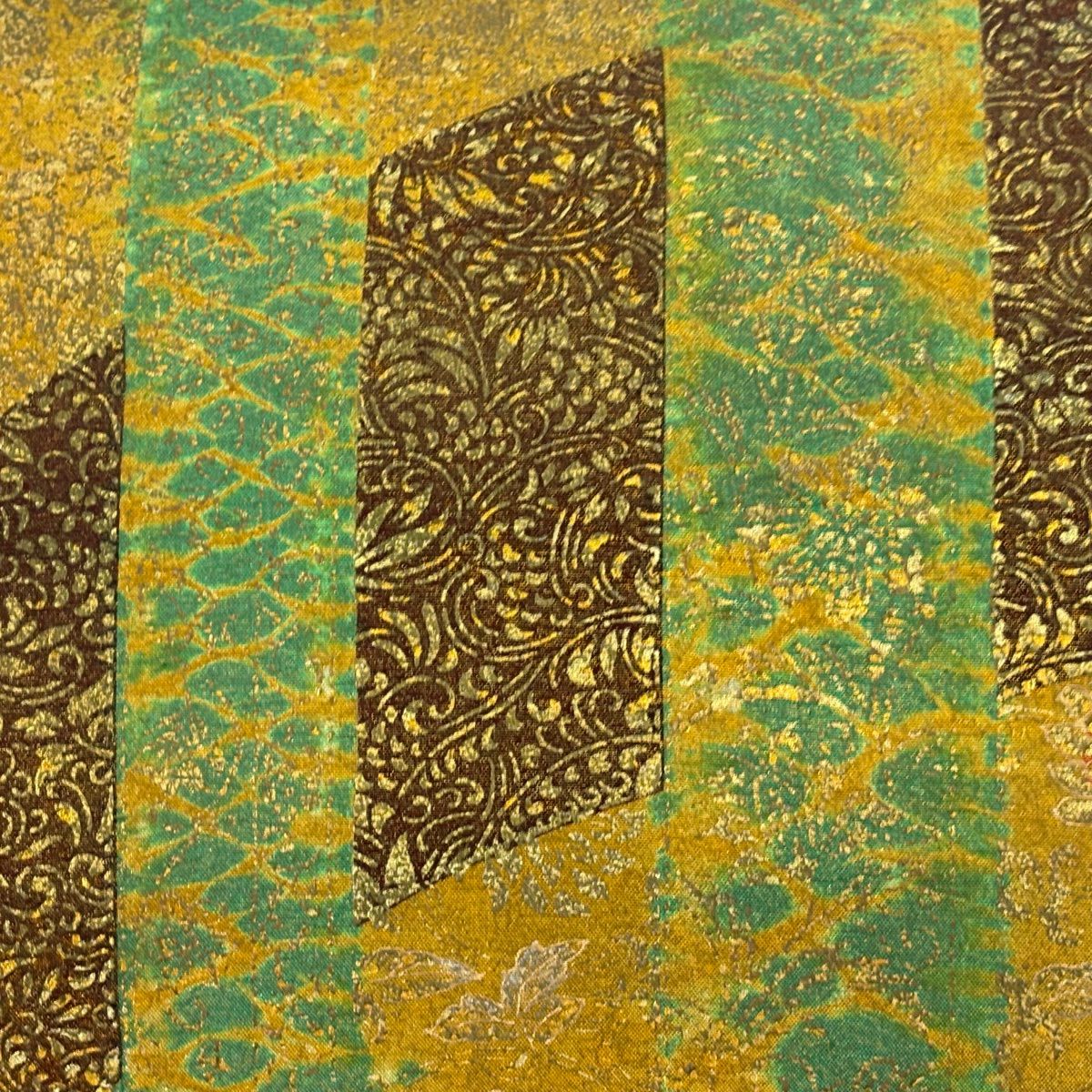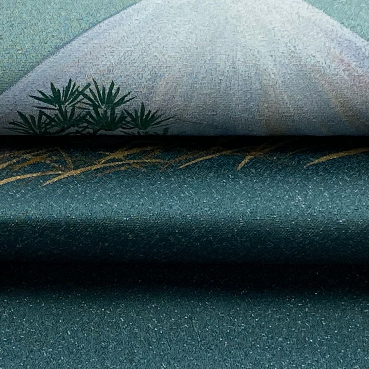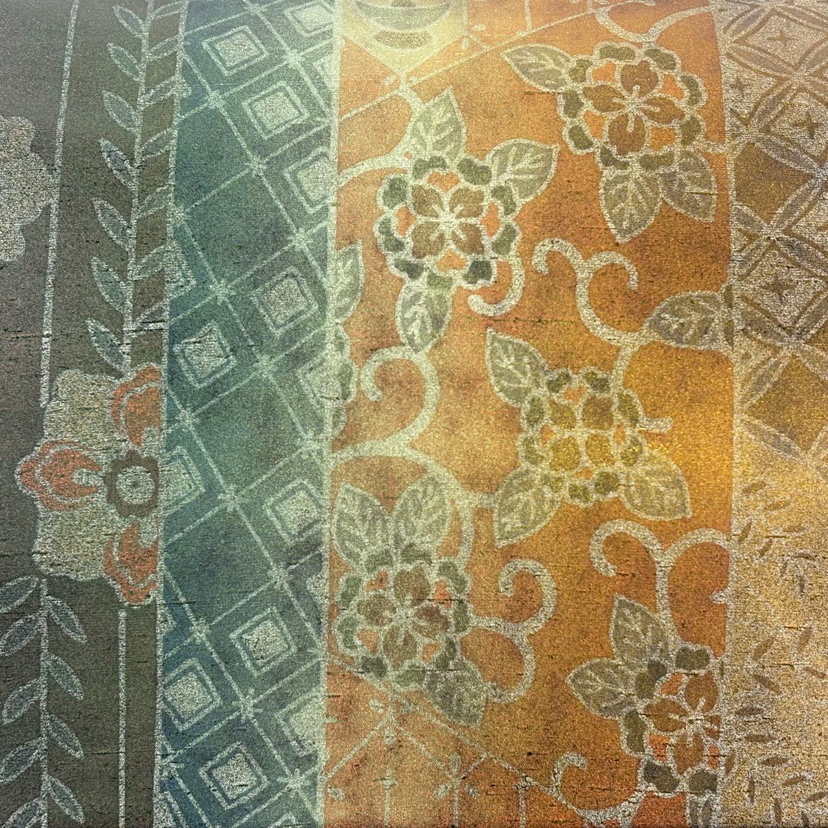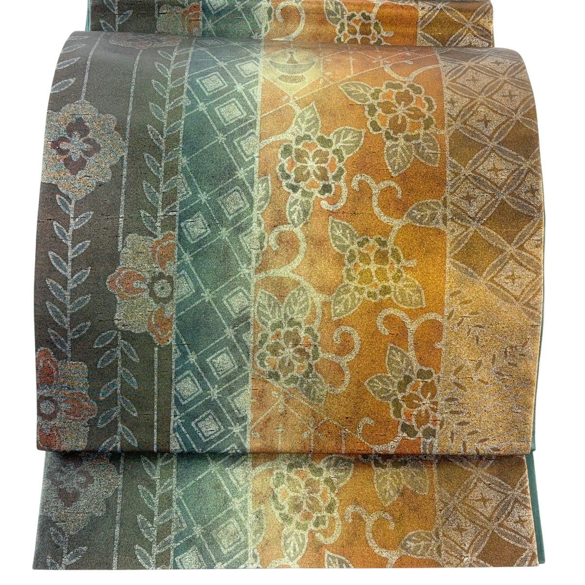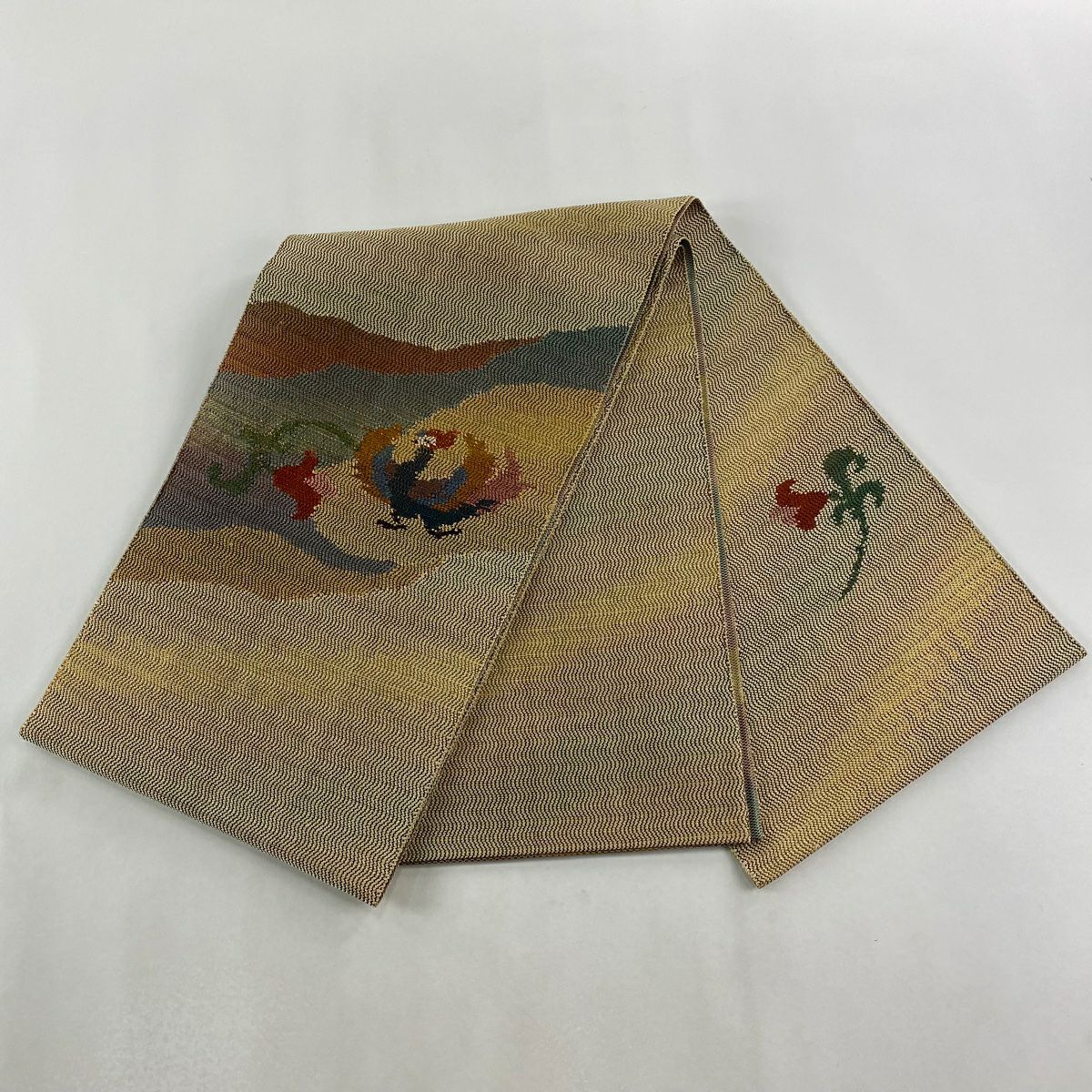 【在庫一掃】 【美品】 袋帯 逸品 富士山 猪 銀糸 金彩 青緑 お太鼓柄 正絹