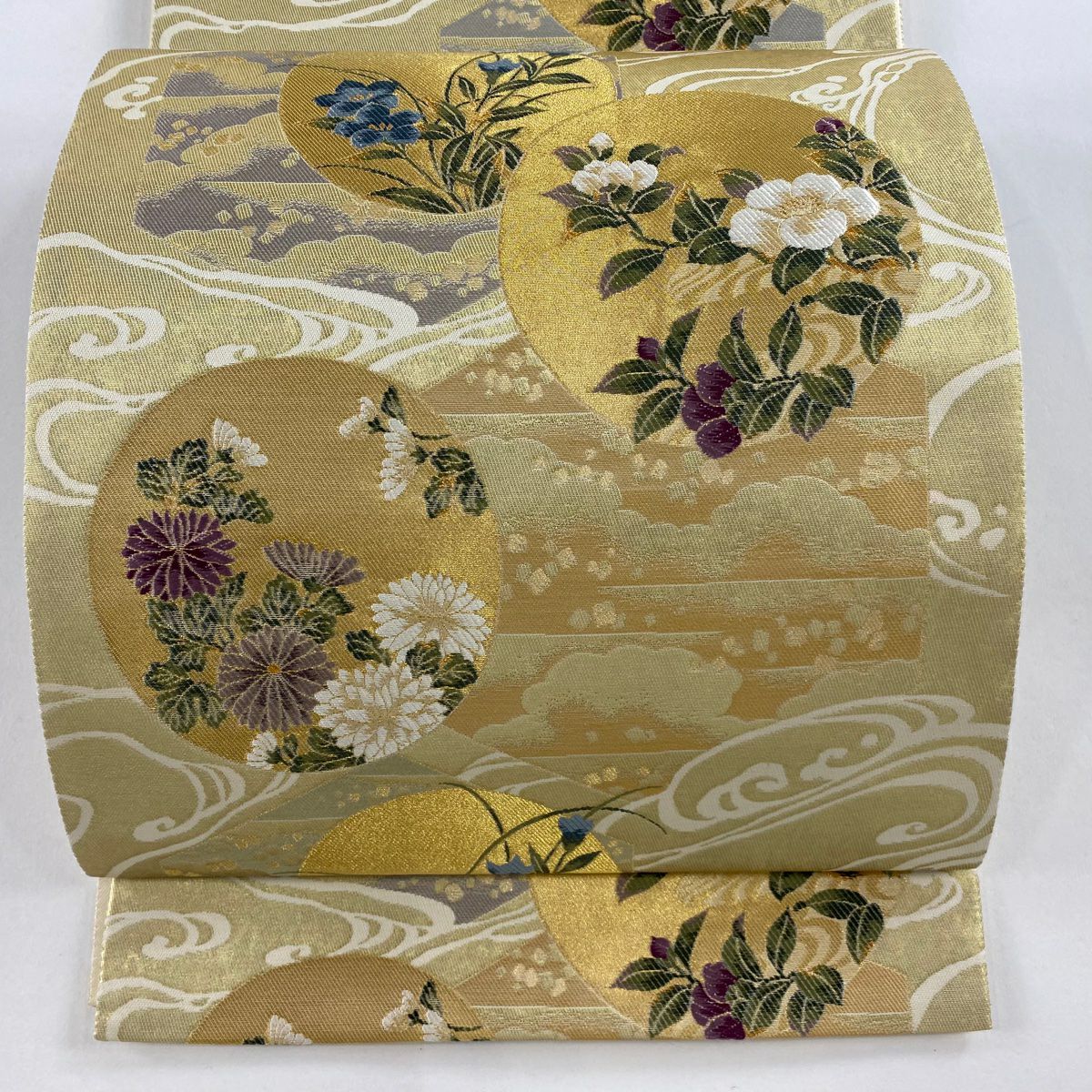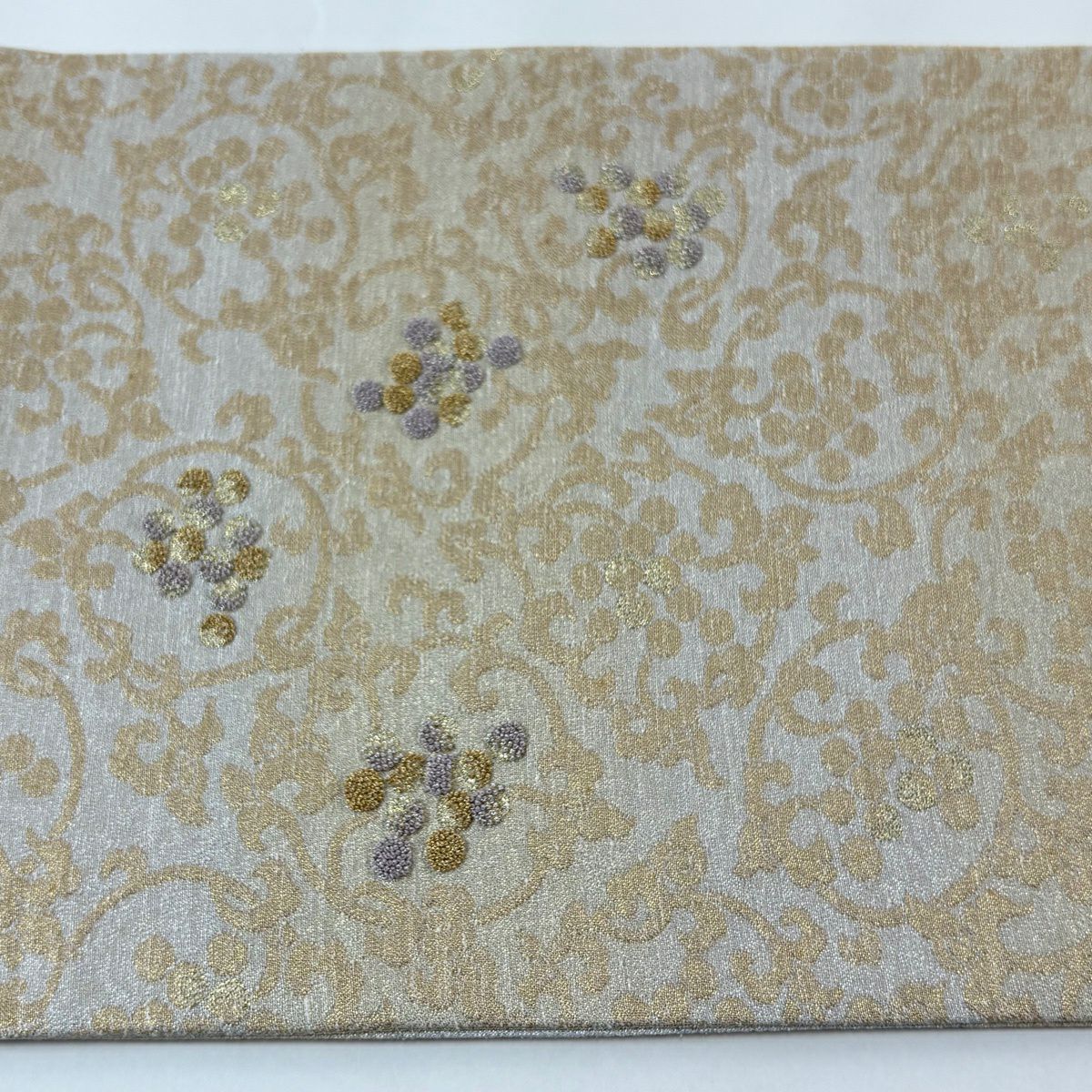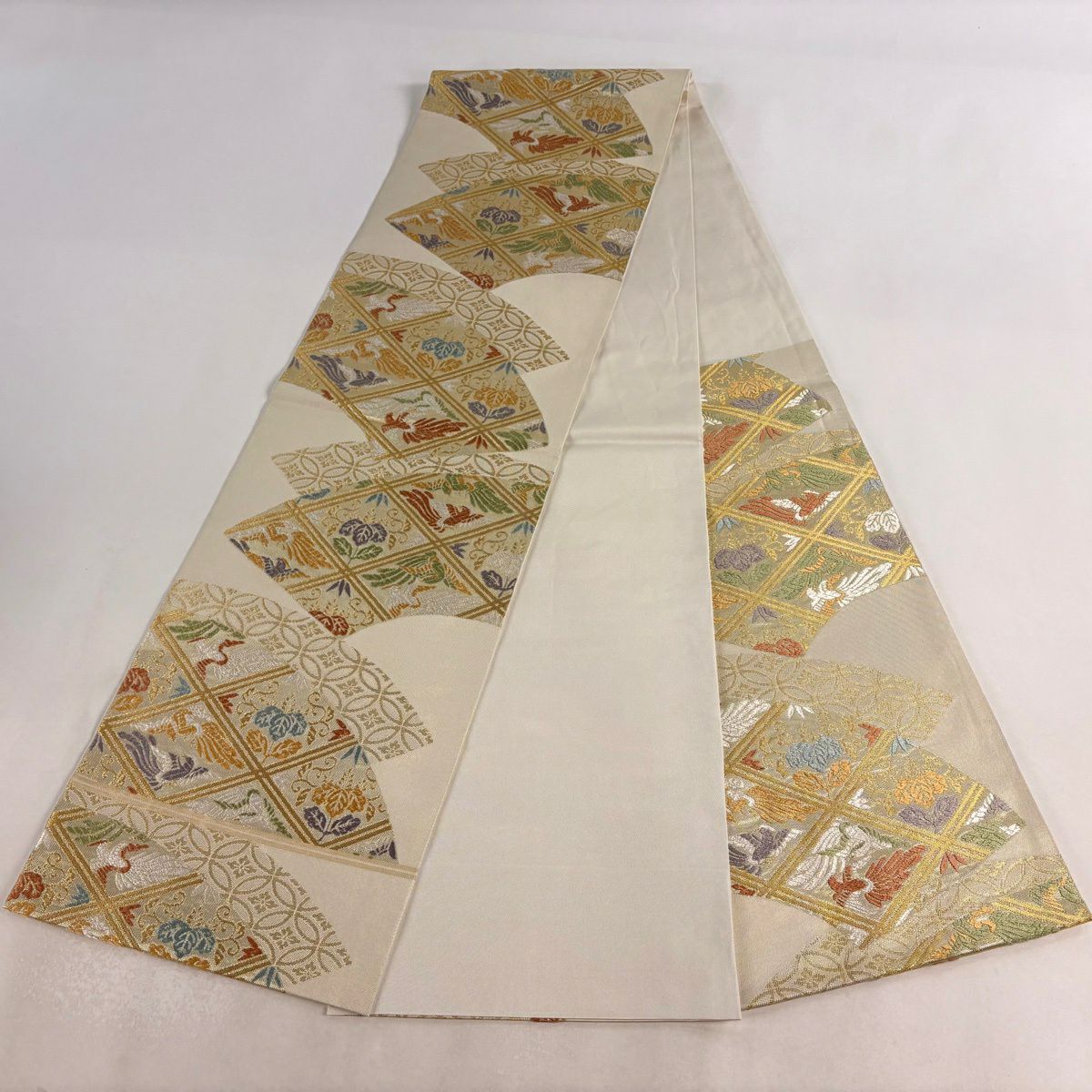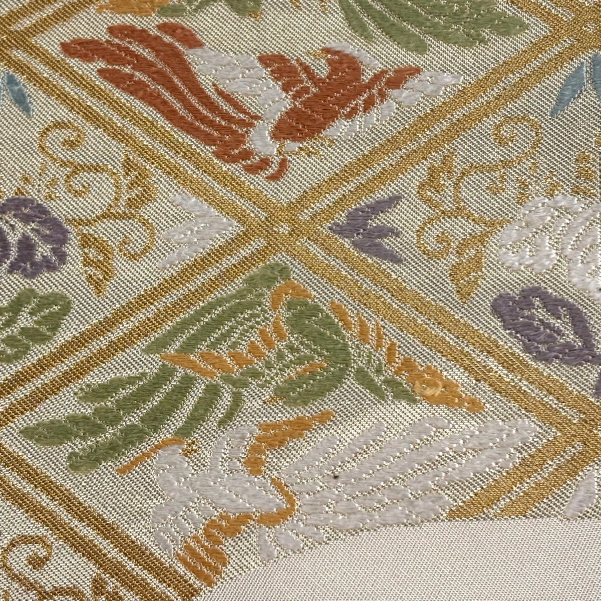 【美品】 袋帯 逸品 鈴乃屋 新小石丸 皇彩花丸文 金糸 クリーム 六通 正絹