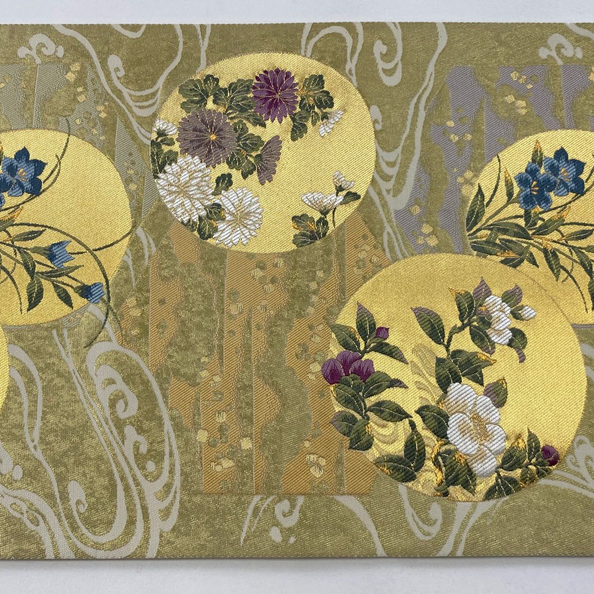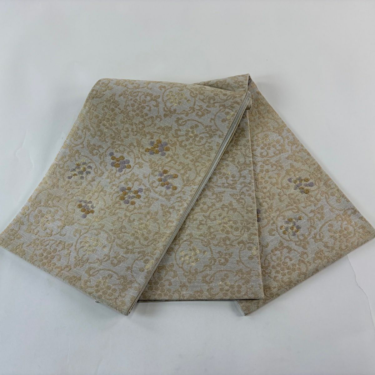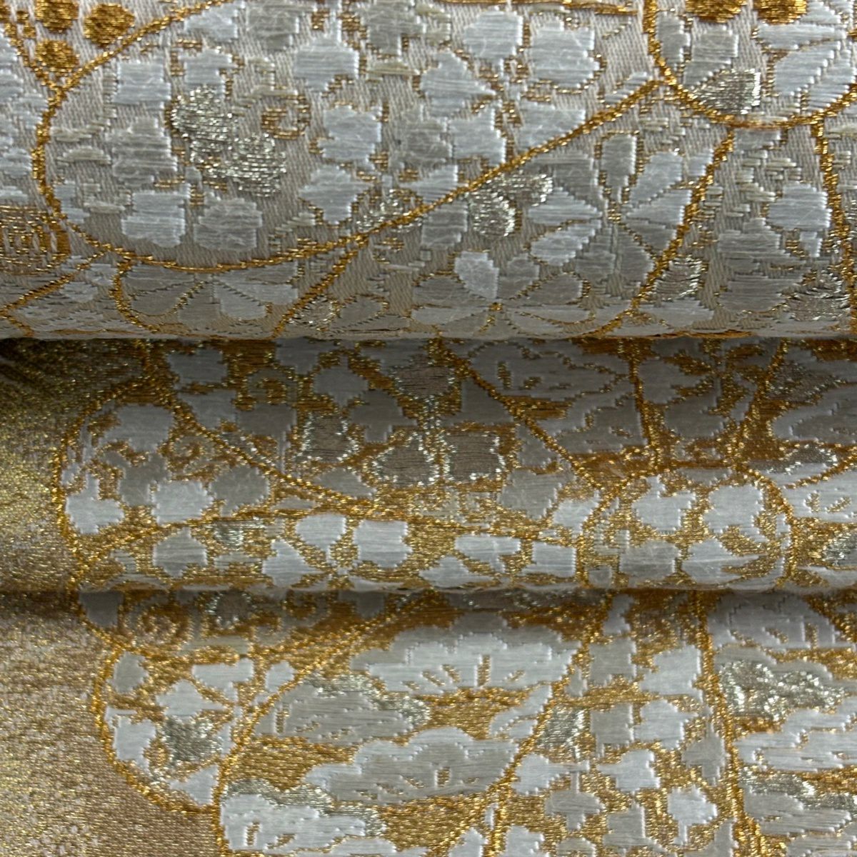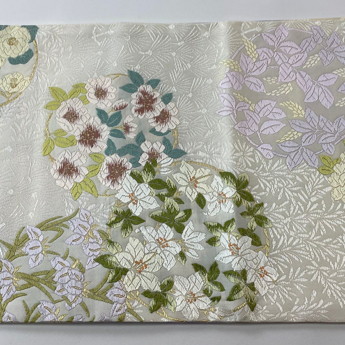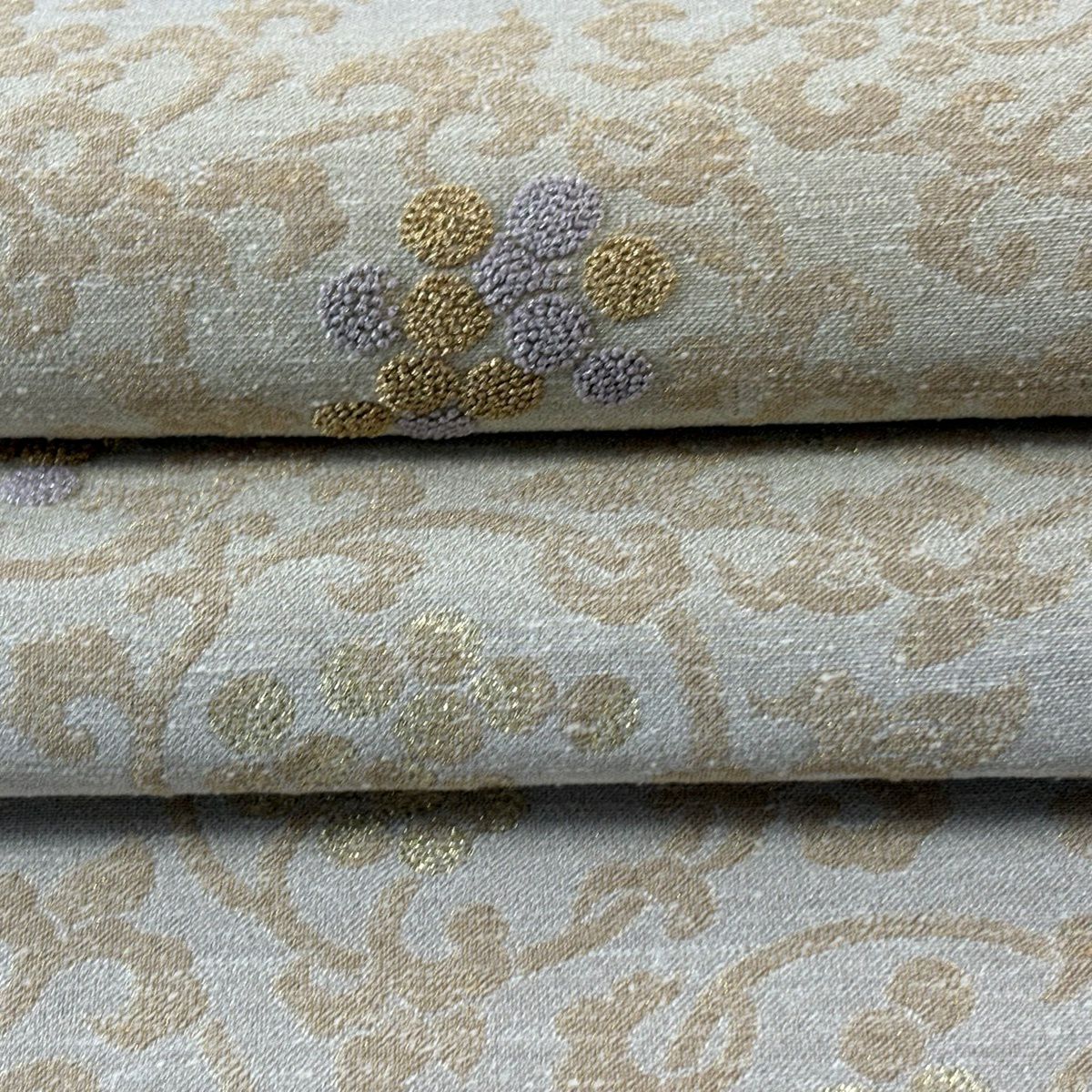 【美品】 袋帯 逸品 鈴乃屋 新小石丸 皇彩花丸文 金糸 クリーム 六通 正絹