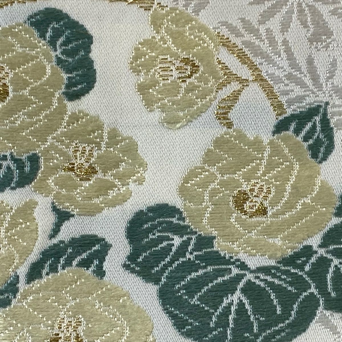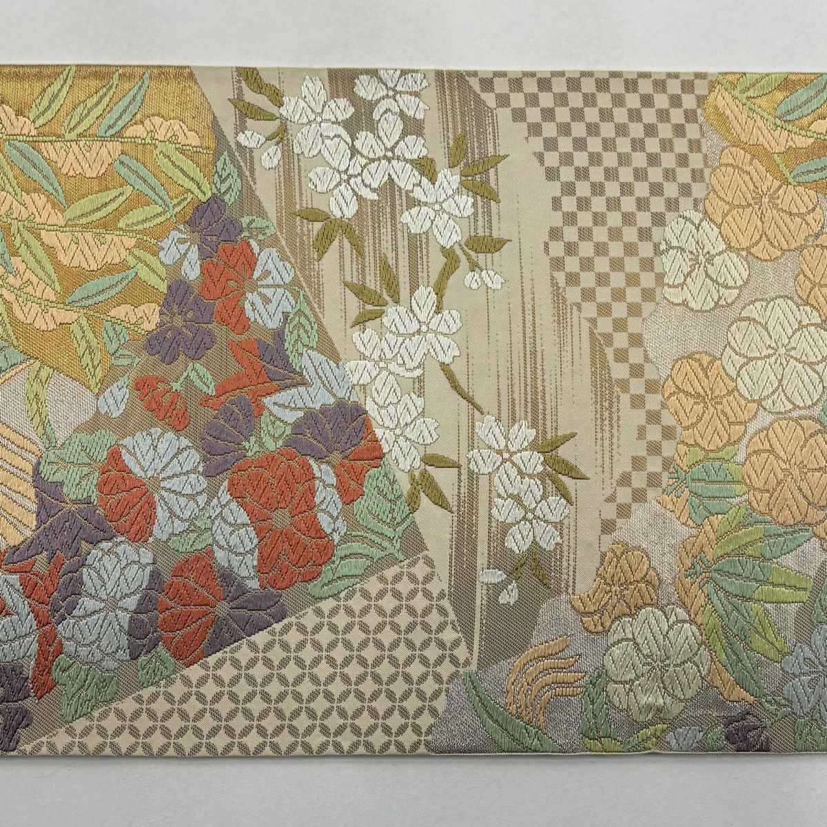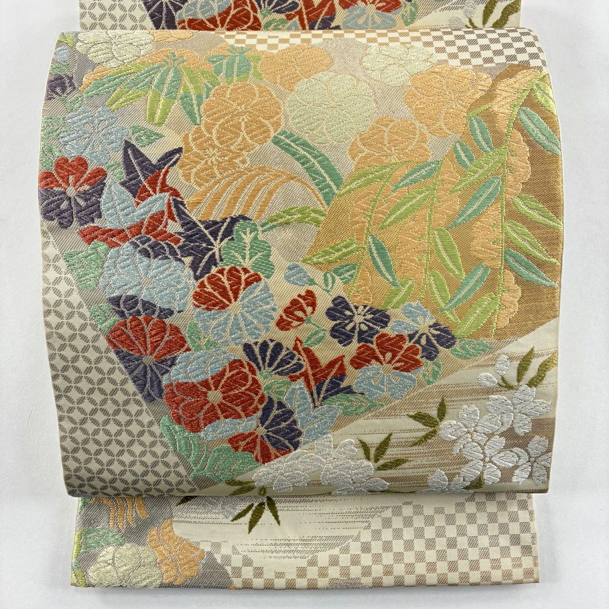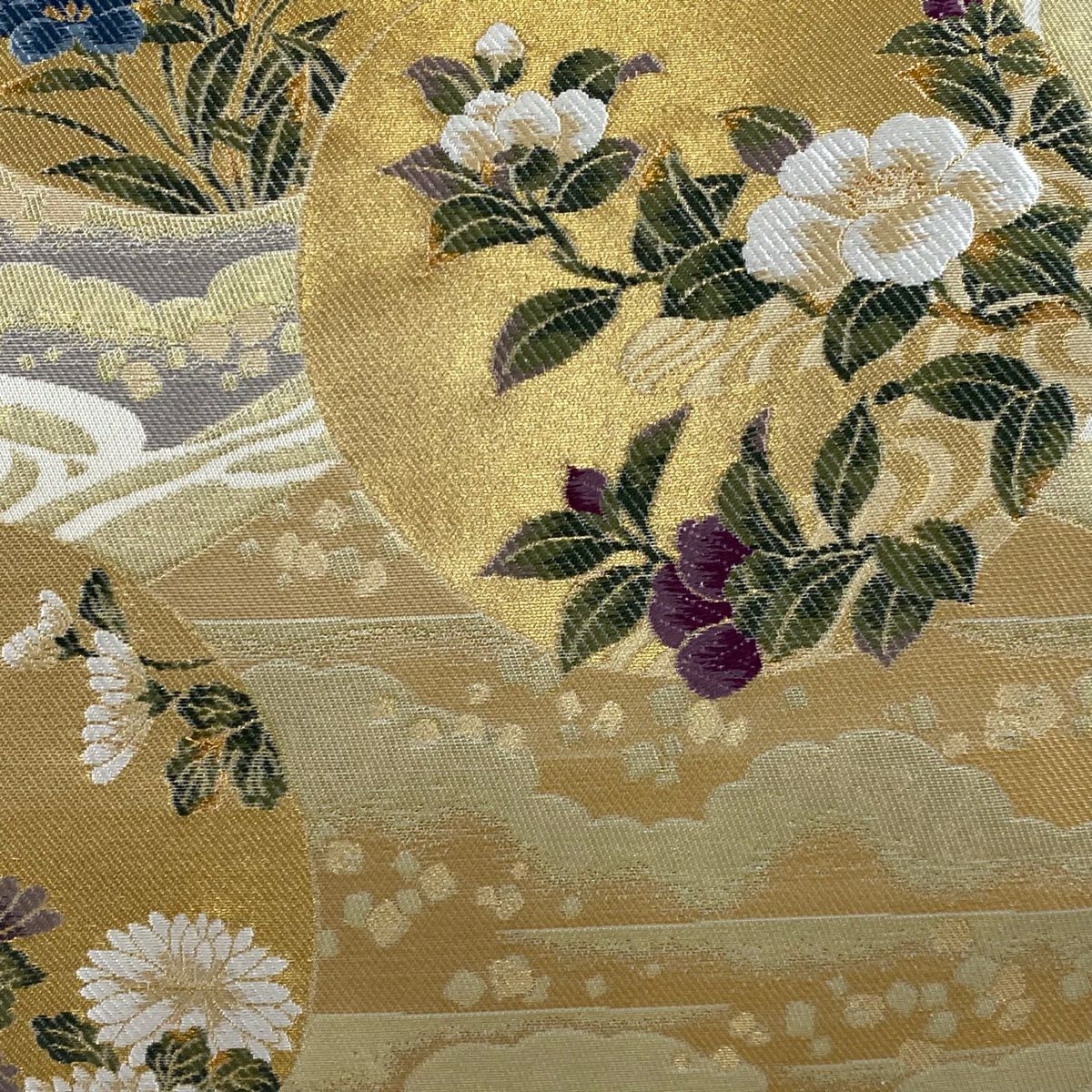 【美品】 袋帯 逸品 鈴乃屋 新小石丸 皇彩花丸文 金糸 クリーム 六通 正絹