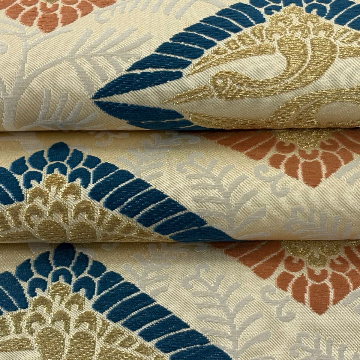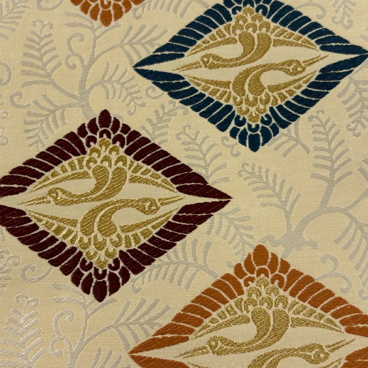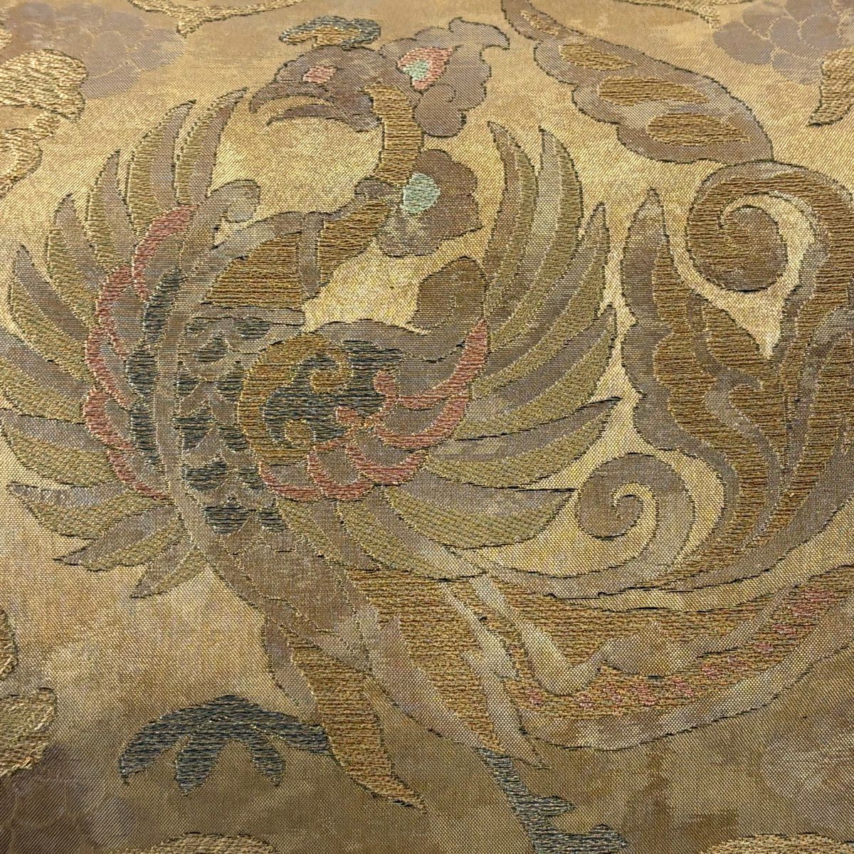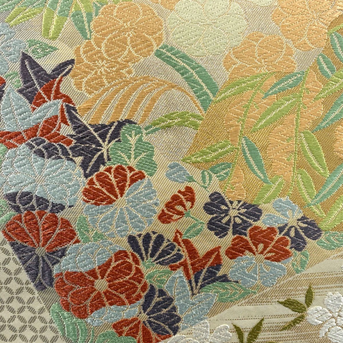 【美品】 袋帯 逸品 鈴乃屋 新小石丸 皇彩花丸文 金糸 クリーム 六通 正絹