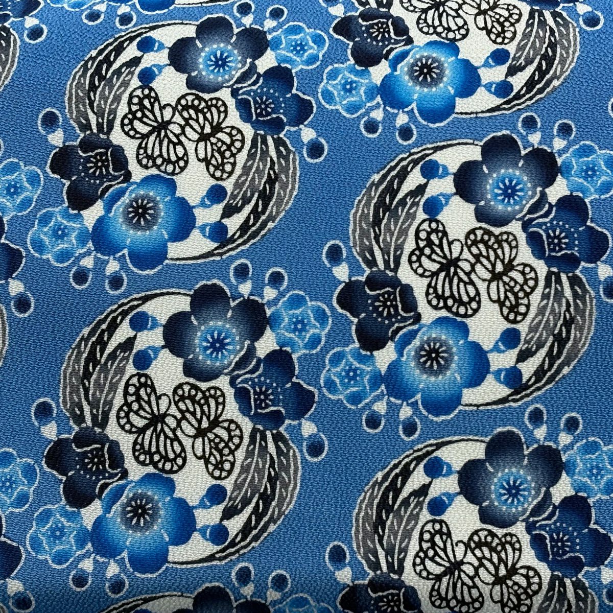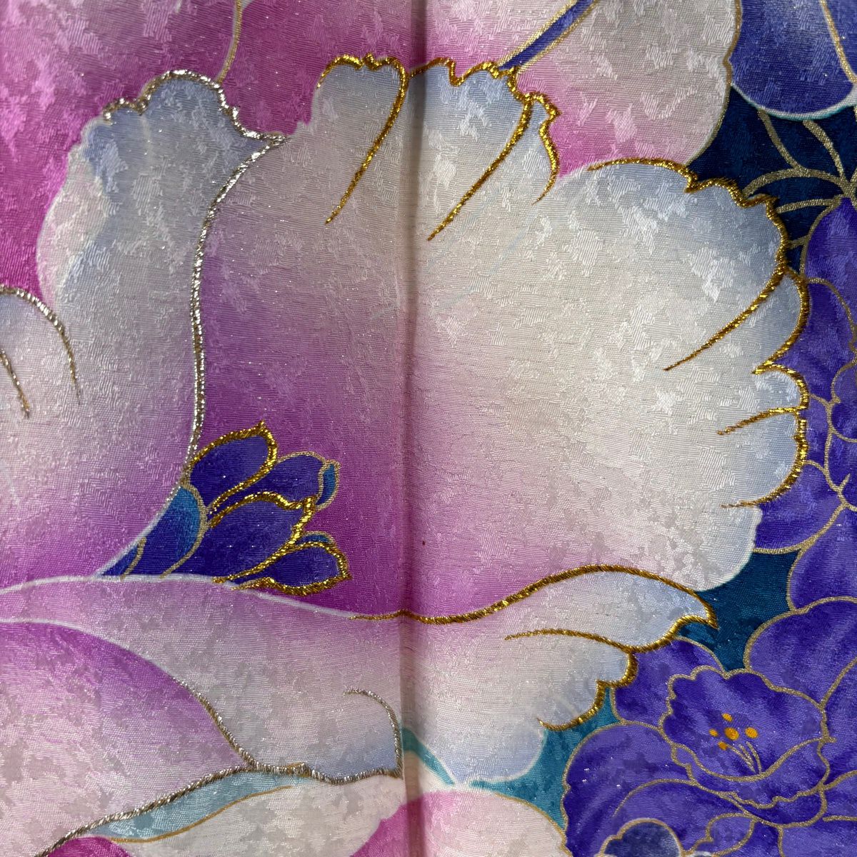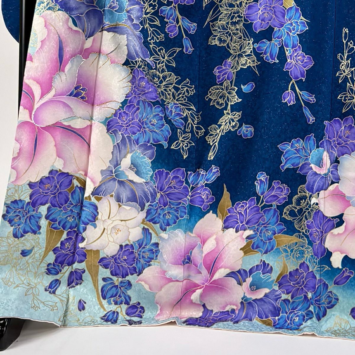 振袖 身丈172.5cm 裄丈71cm L 袷 草花 銀通し 箔 藍色 正絹 逸品