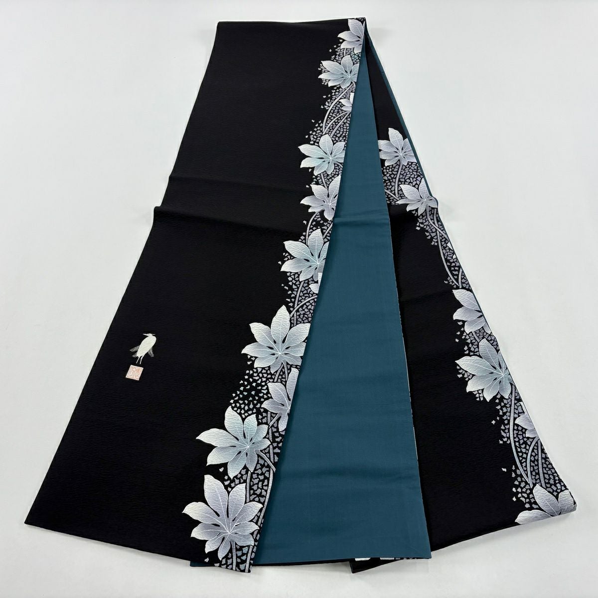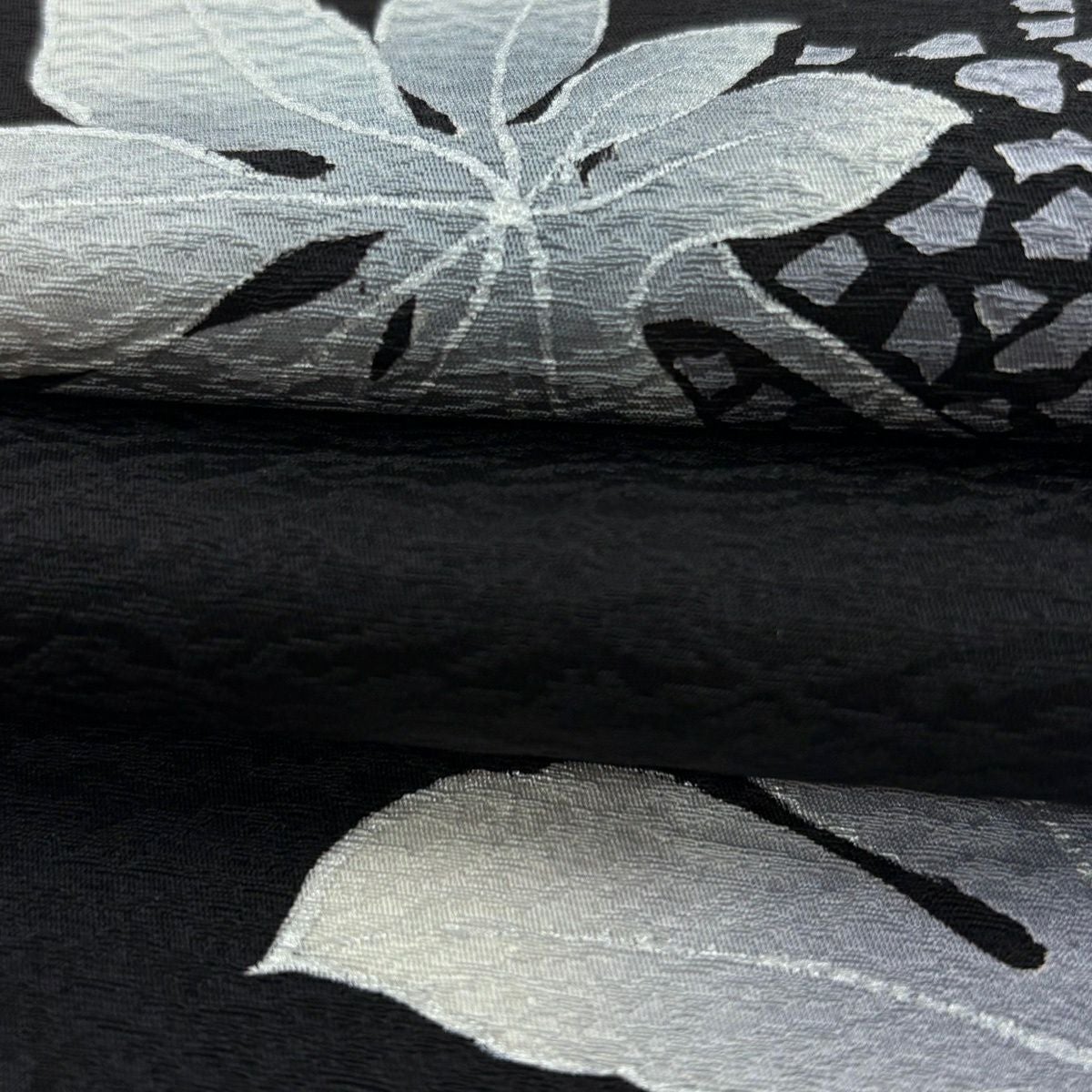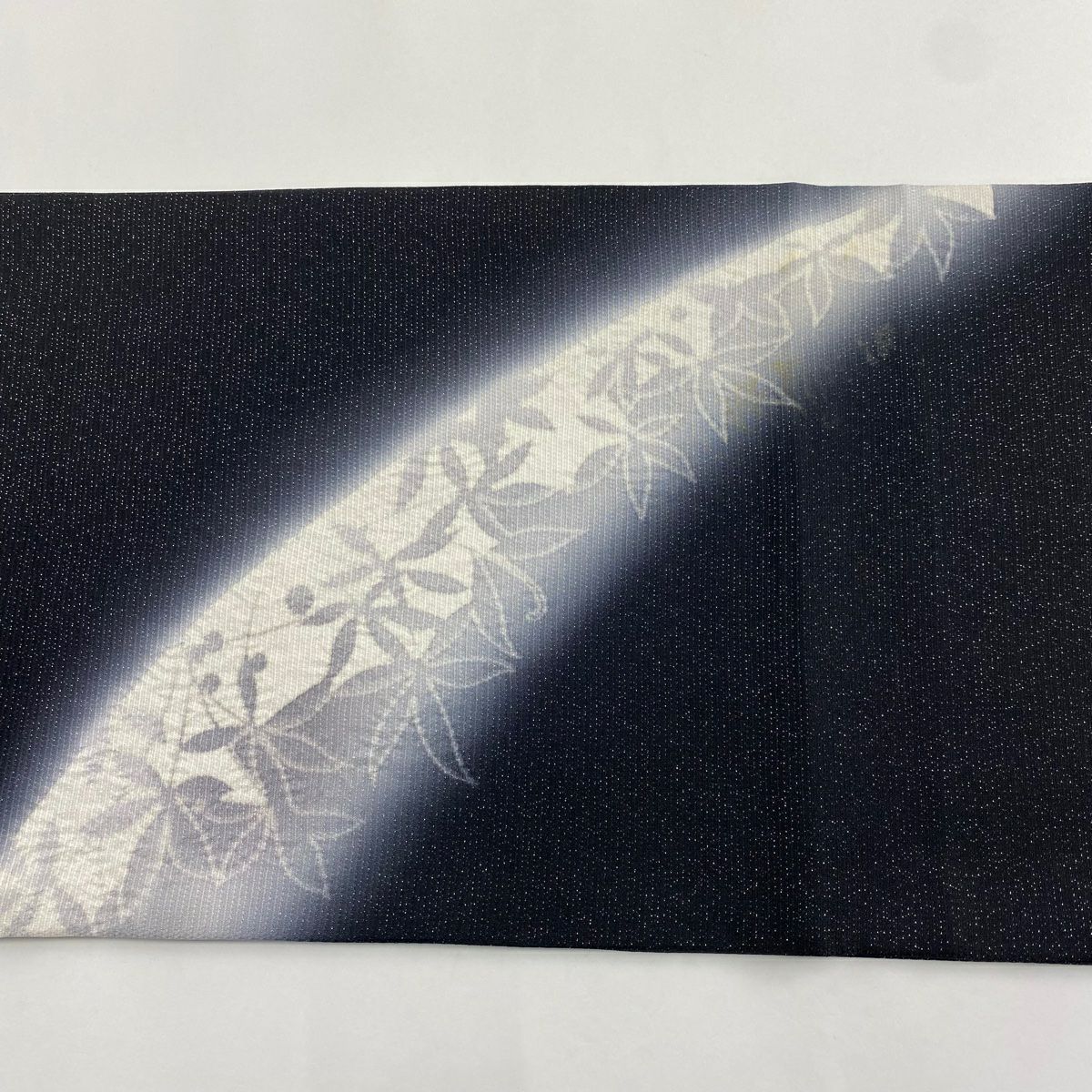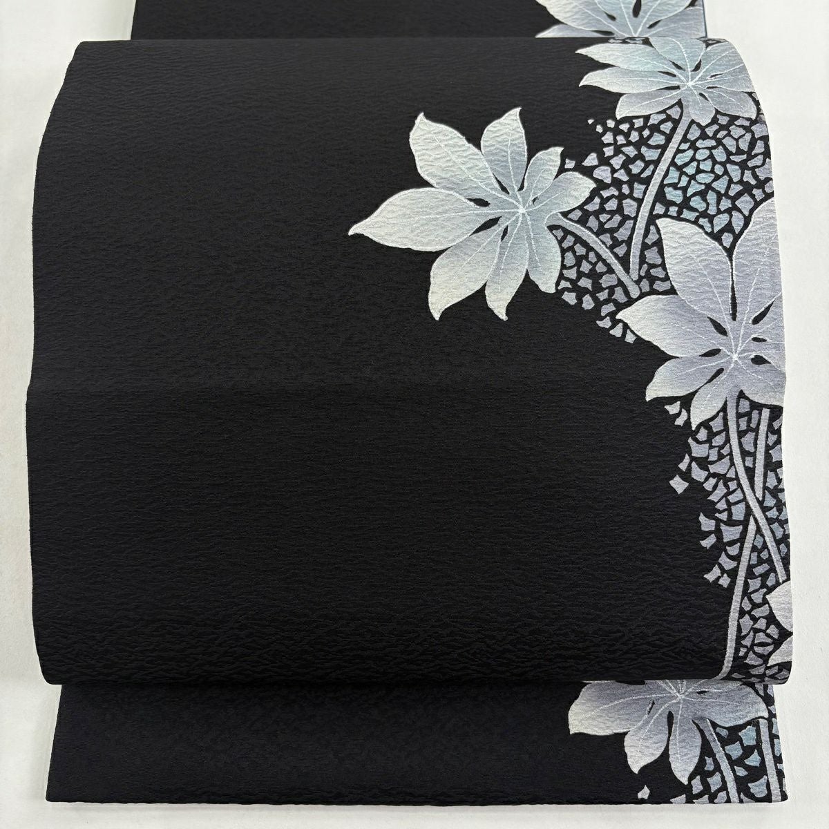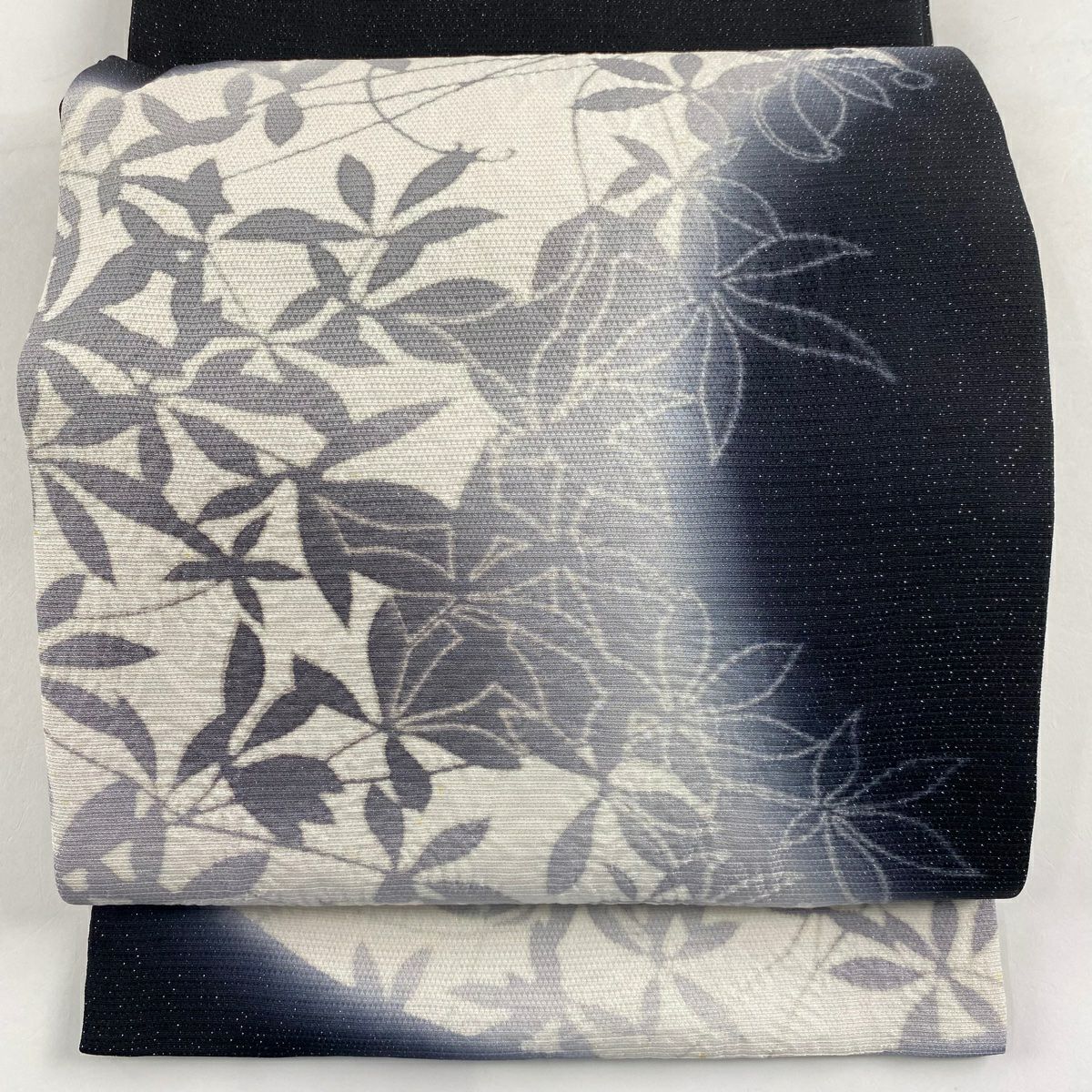 【在庫一掃】 袋帯 逸品 滝泰 落款あり 葉柄 銀糸 絞り 黒 お太鼓柄 正絹