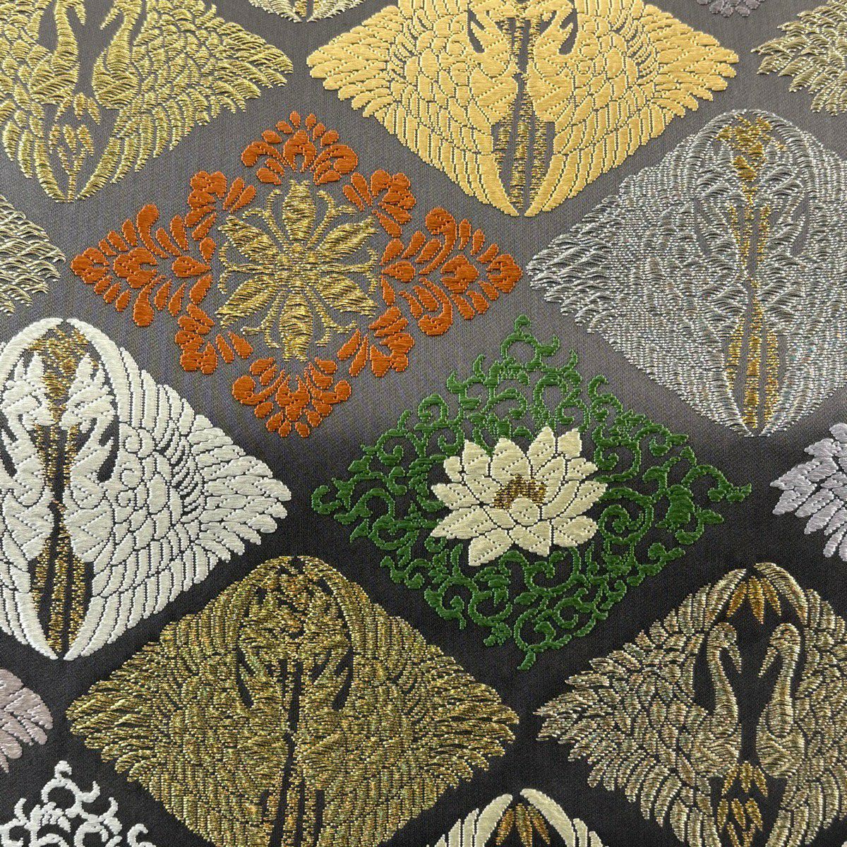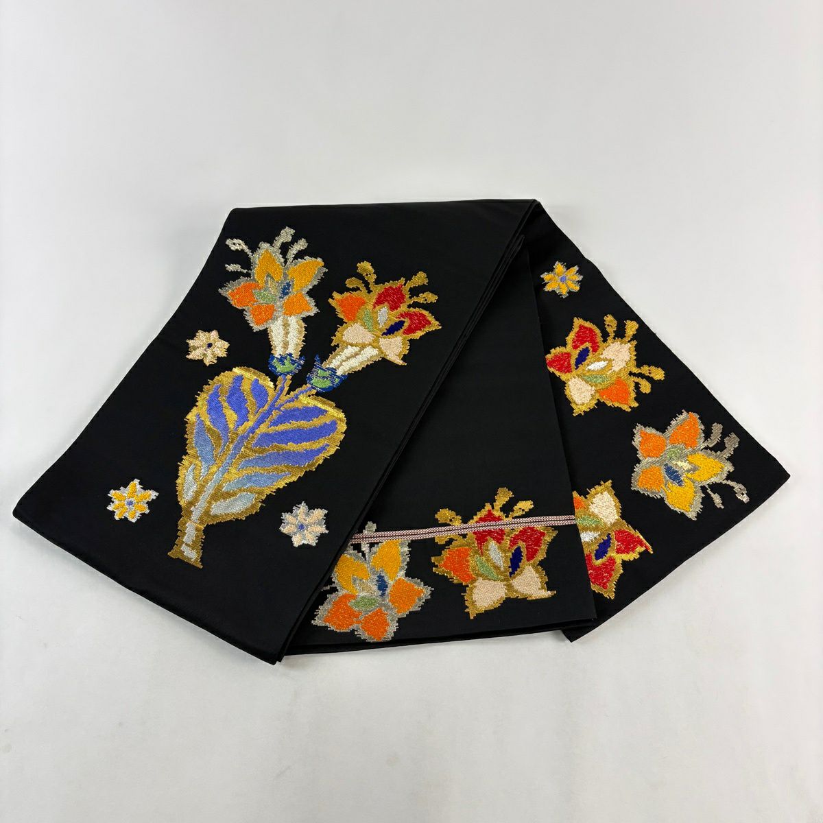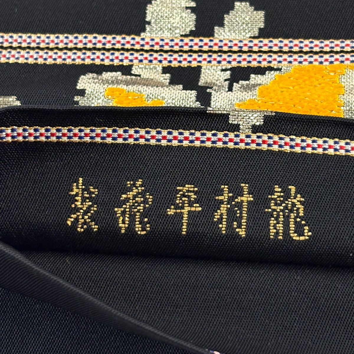 袋帯 逸品 龍村平蔵 落款あり モールー房文 草花 刺繍 箔 黒 お太鼓柄 正絹