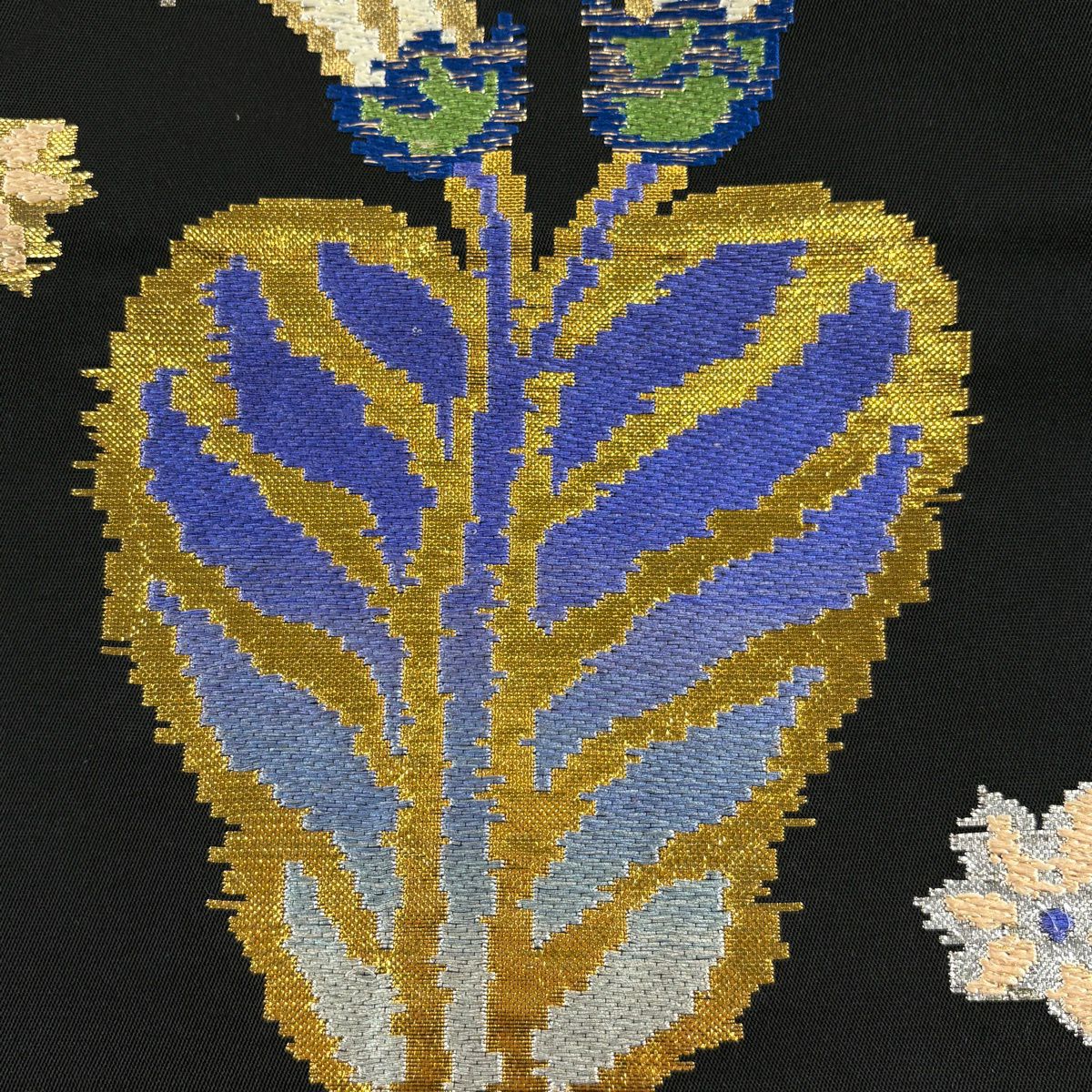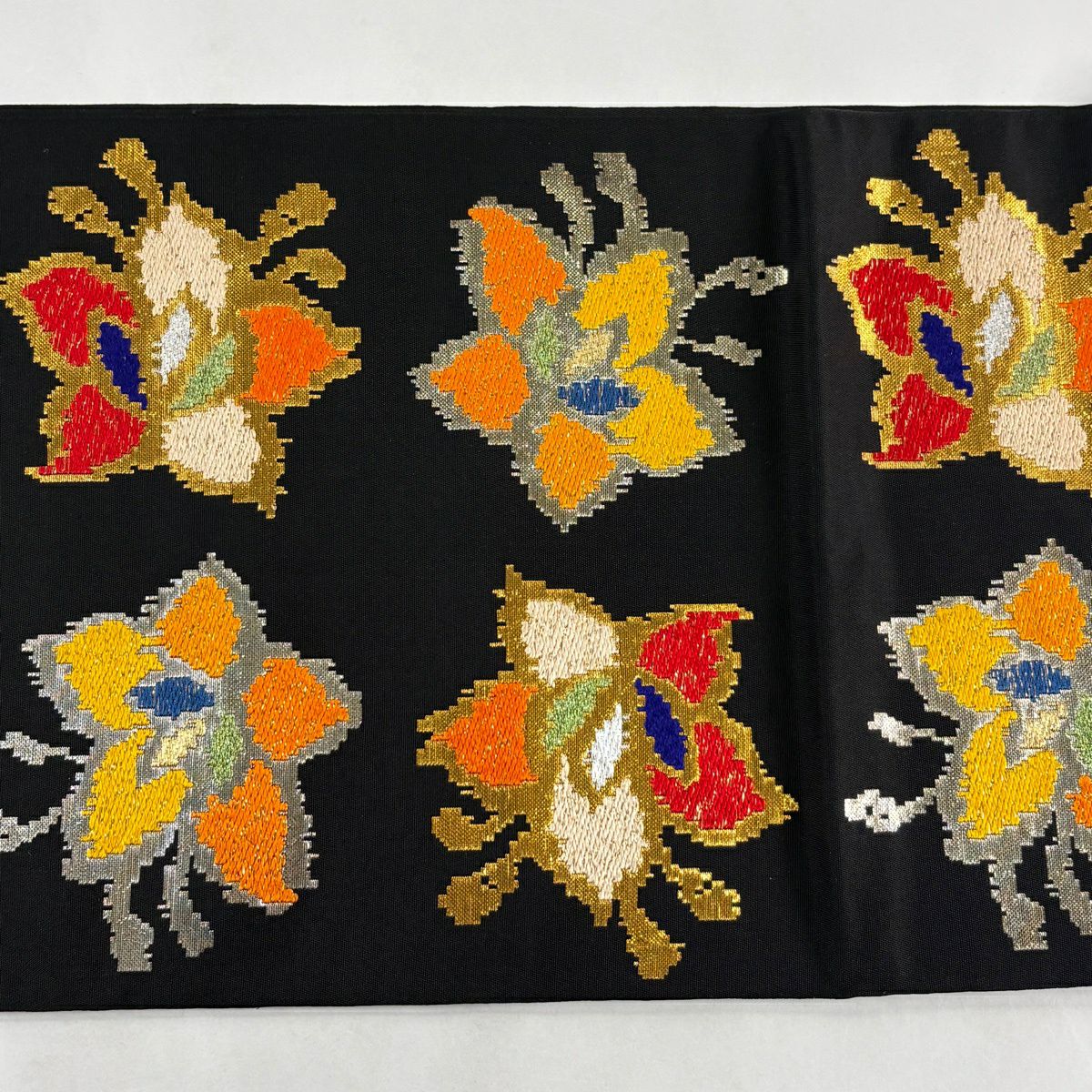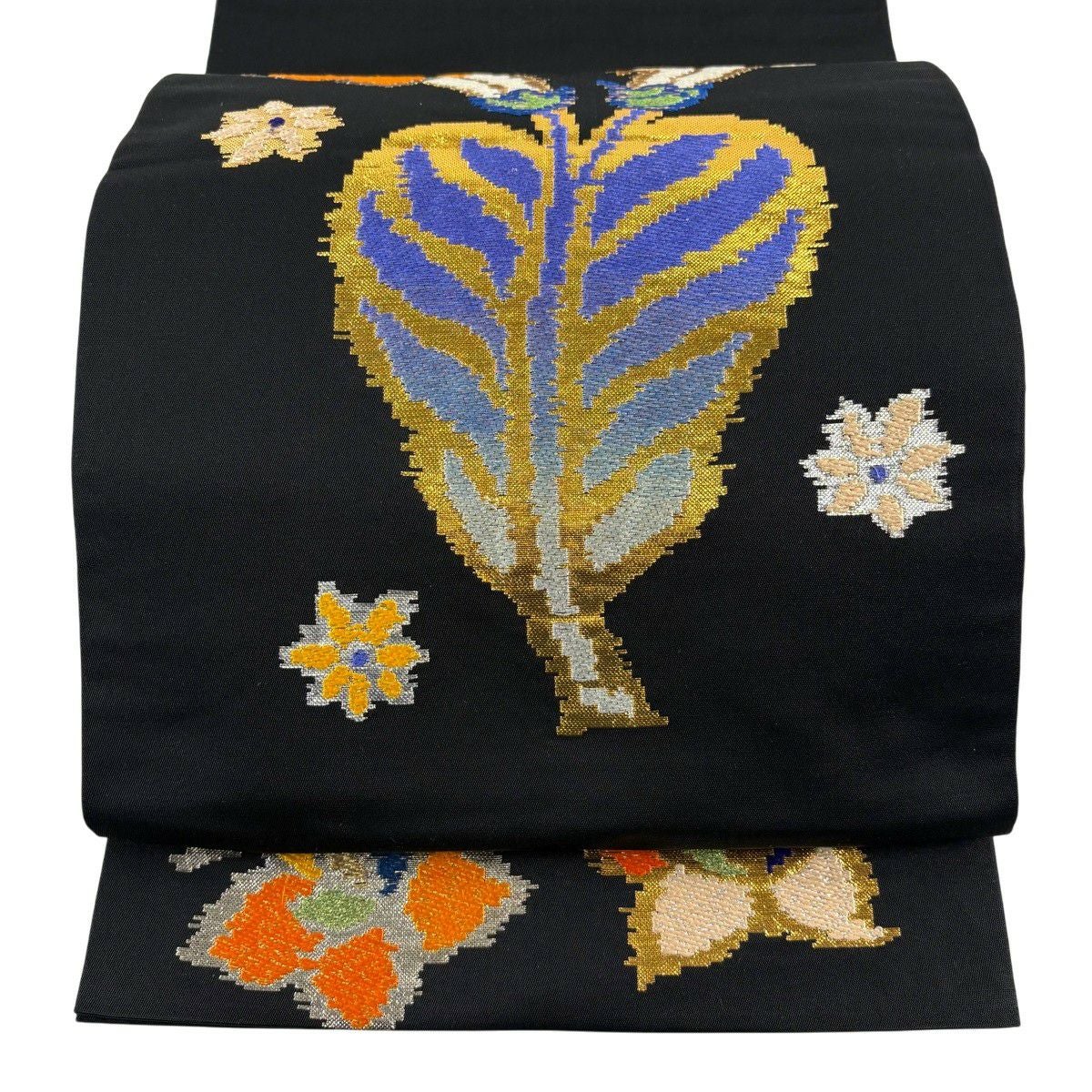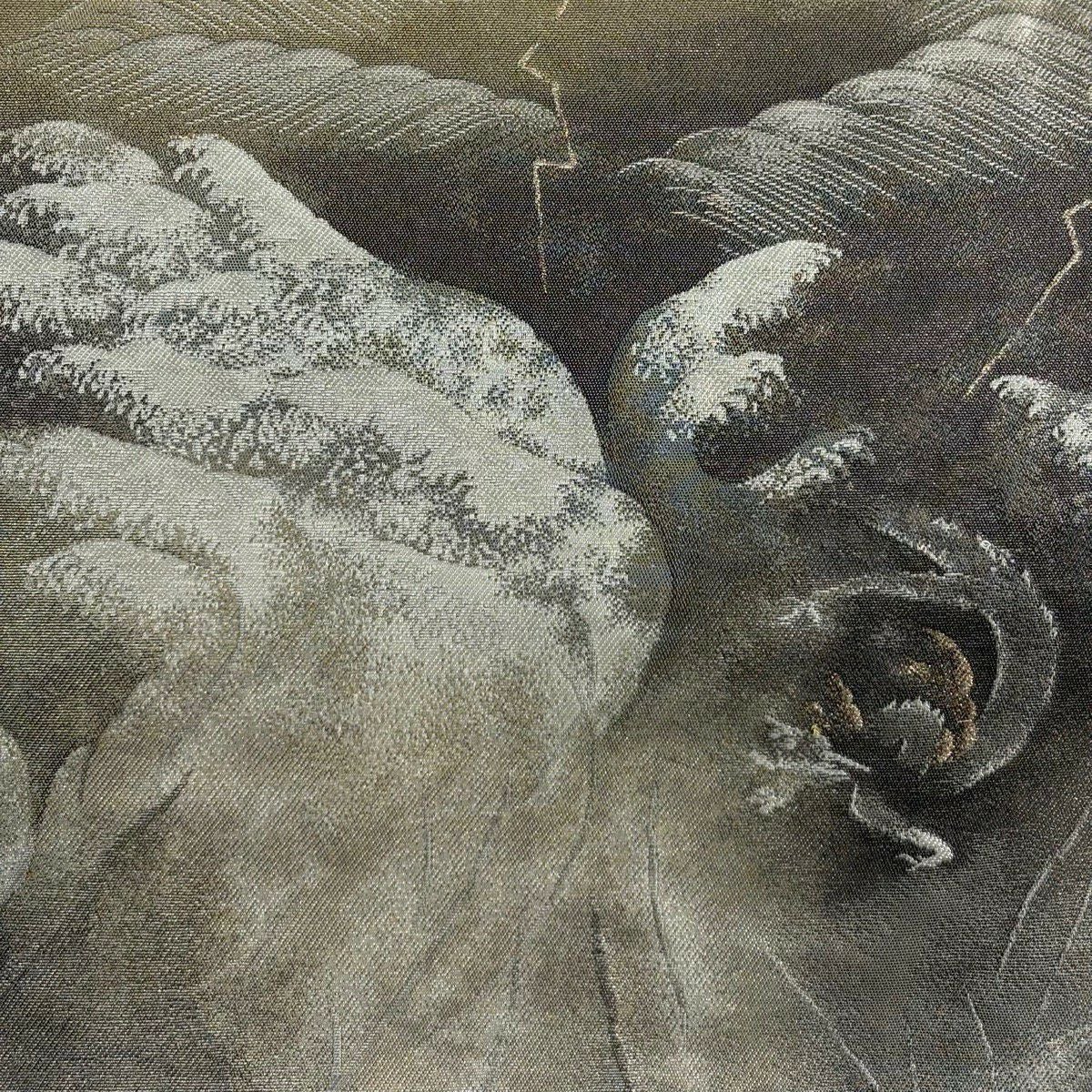 袋帯 逸品 龍村平蔵 落款あり モールー房文 草花 刺繍 箔 黒 お太鼓柄 正絹