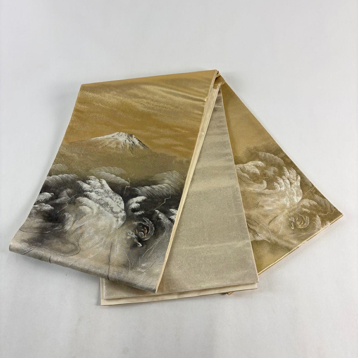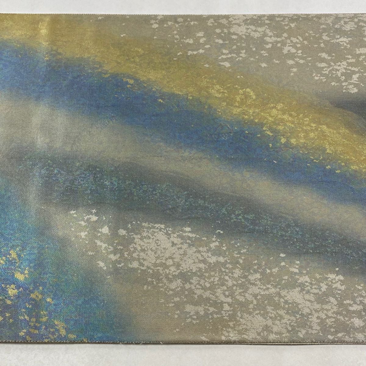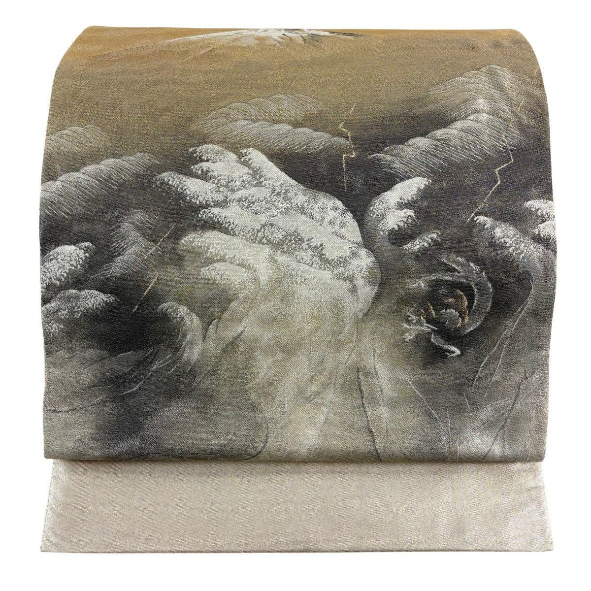 【美品】 袋帯 逸品 横山大観 落款あり 山 波頭 金糸 箔 金色 お太鼓柄 正絹