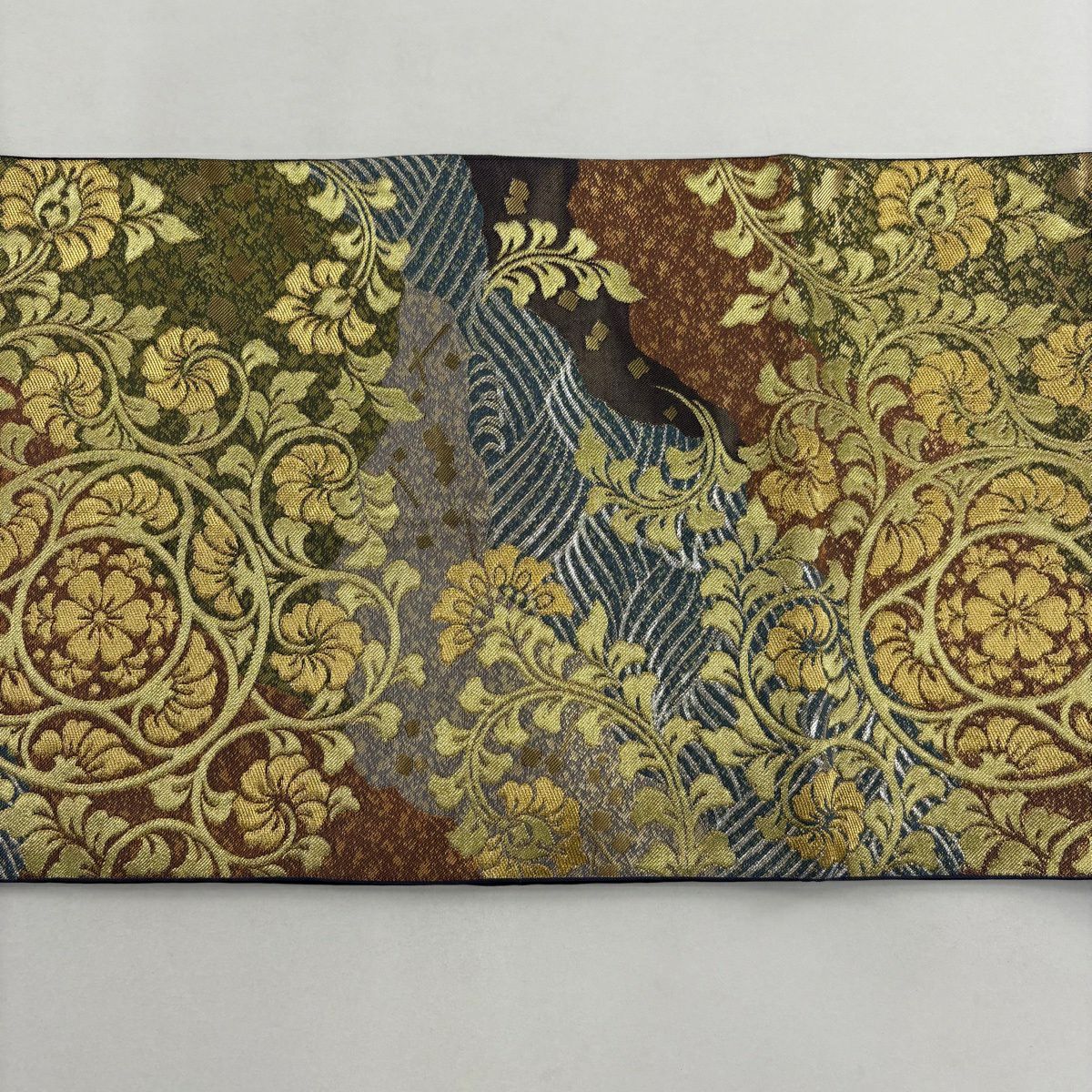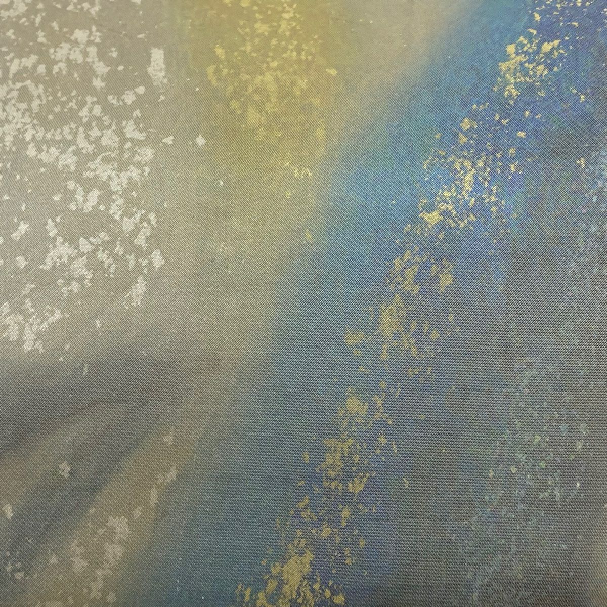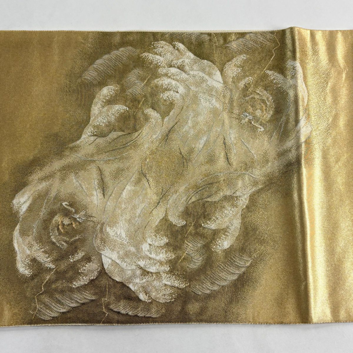 【美品】 袋帯 逸品 横山大観 落款あり 山 波頭 金糸 箔 金色 お太鼓柄 正絹