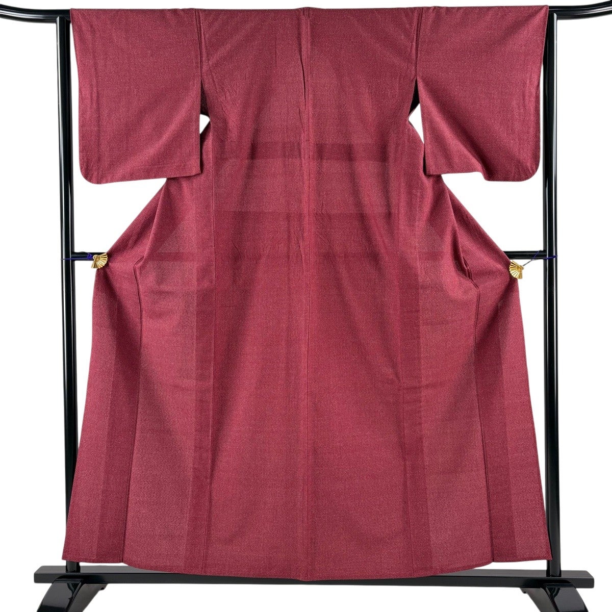 小紋 身丈160cm 裄丈66cm M 薄物 紬地 幾何学模様 灰緑 正絹 逸品