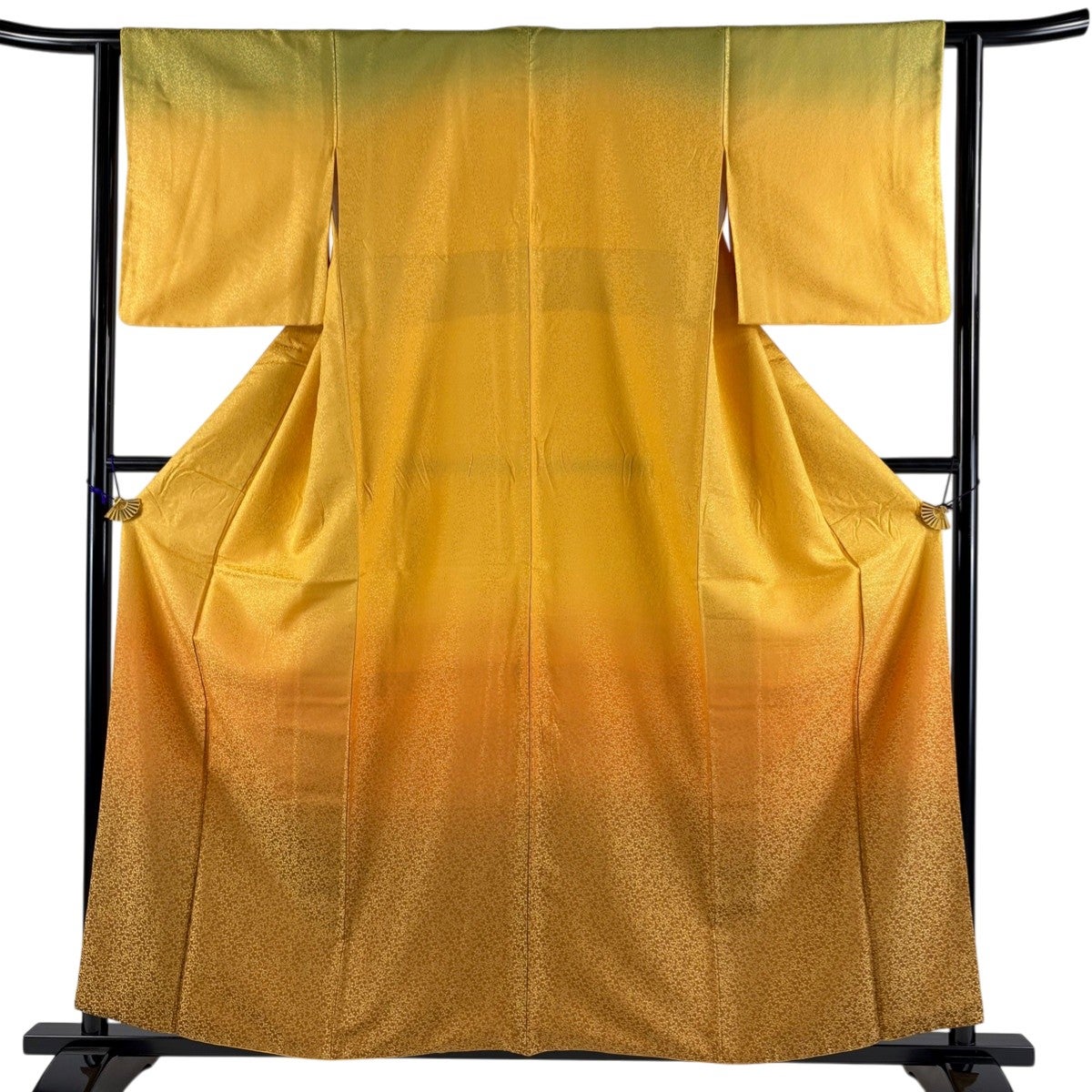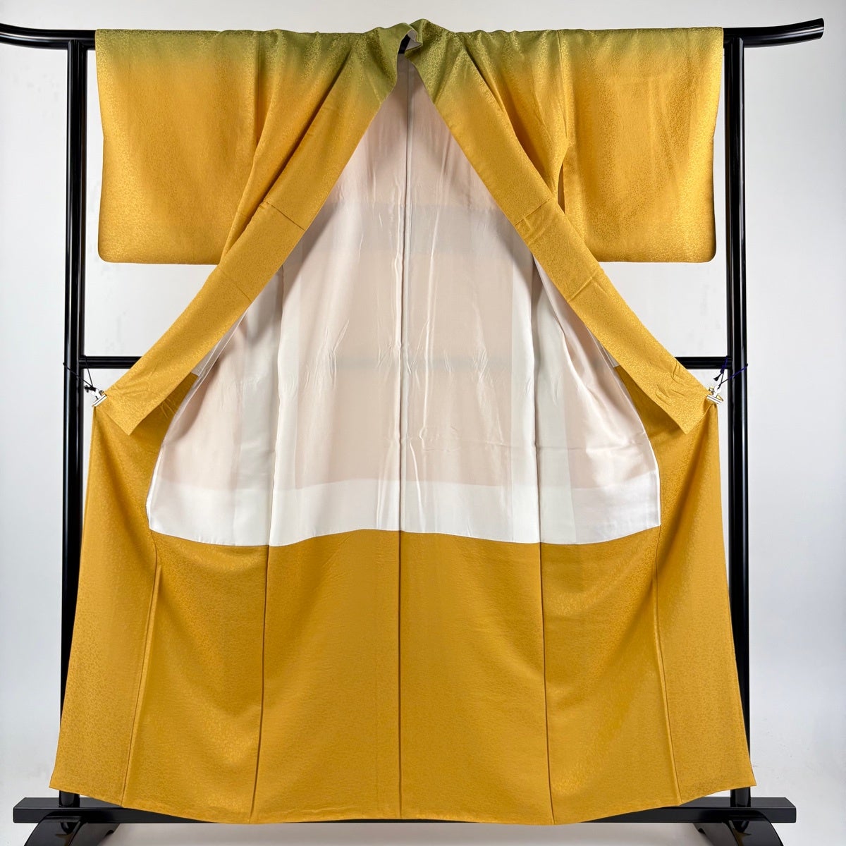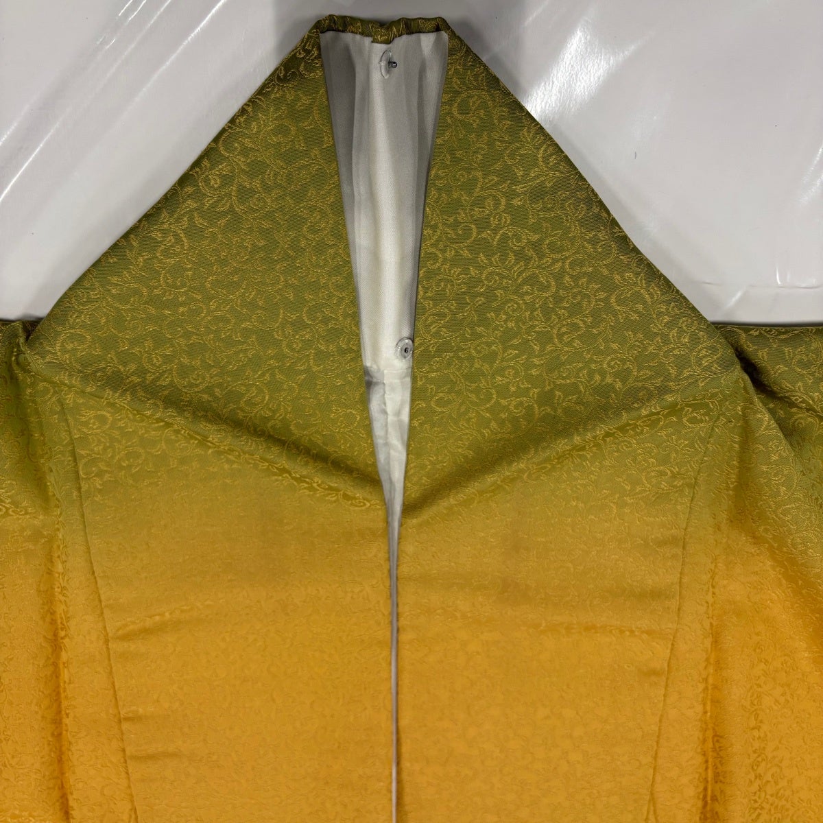 【美品】 羽織 身丈101cm 裄丈65cm M 菱 ぼかし 黄緑色 正絹 逸品