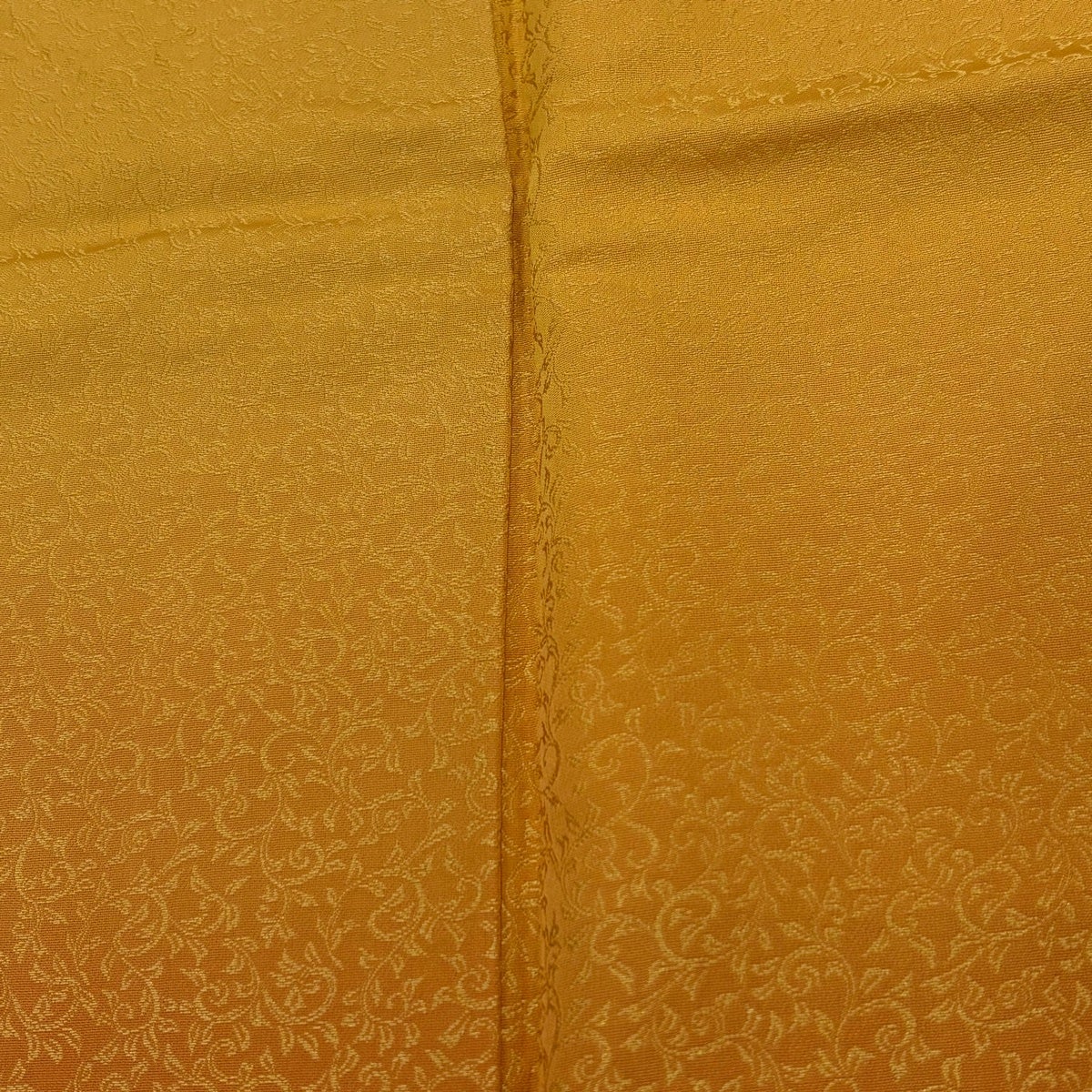 【美品】 名古屋帯 逸品 栗山吉三郎 落款あり ねじ梅 菊 縮緬 山吹色 正絹