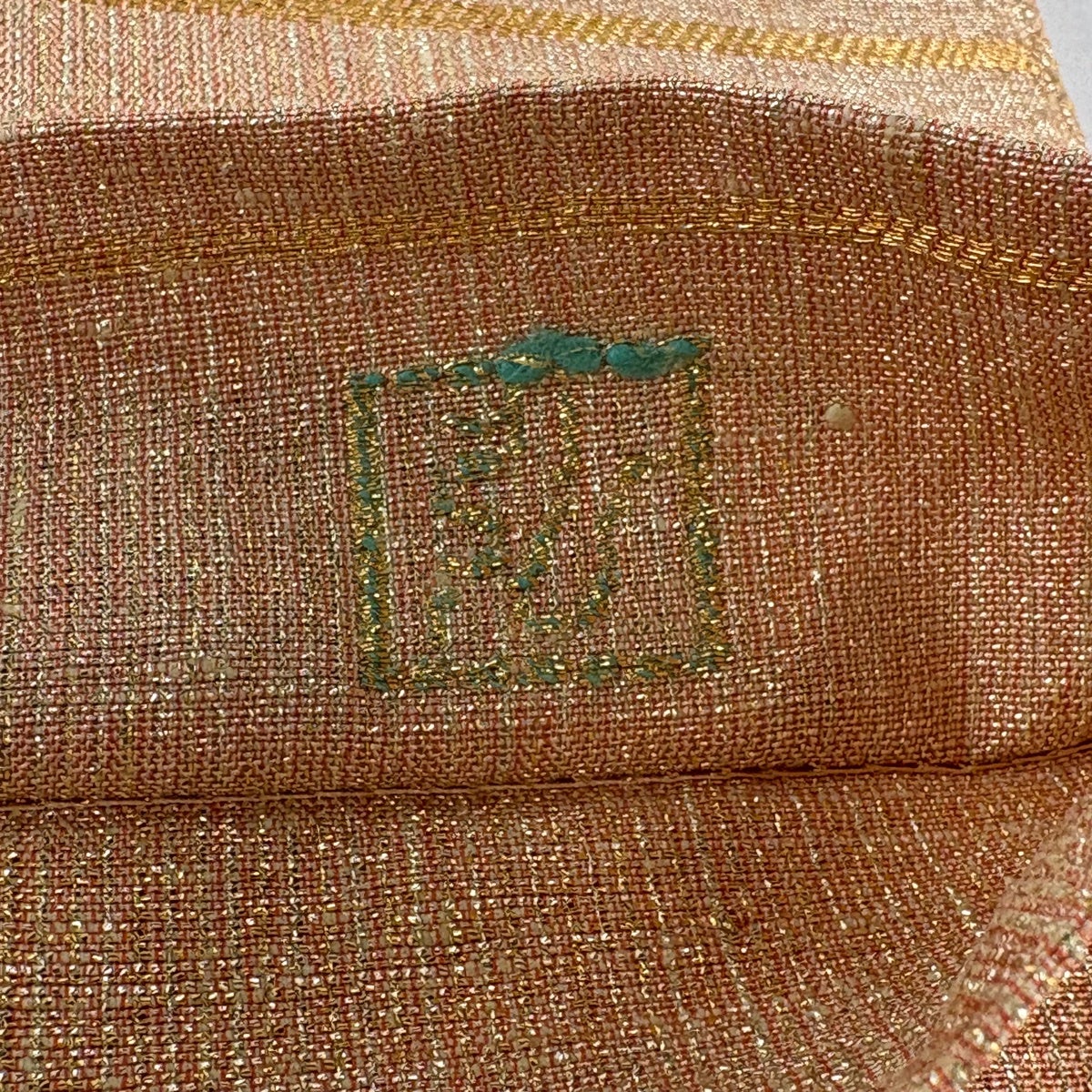袋帯 逸品 龍村平蔵 落款あり 人形手印金錦 箔 ベージュ お太鼓柄 正絹
