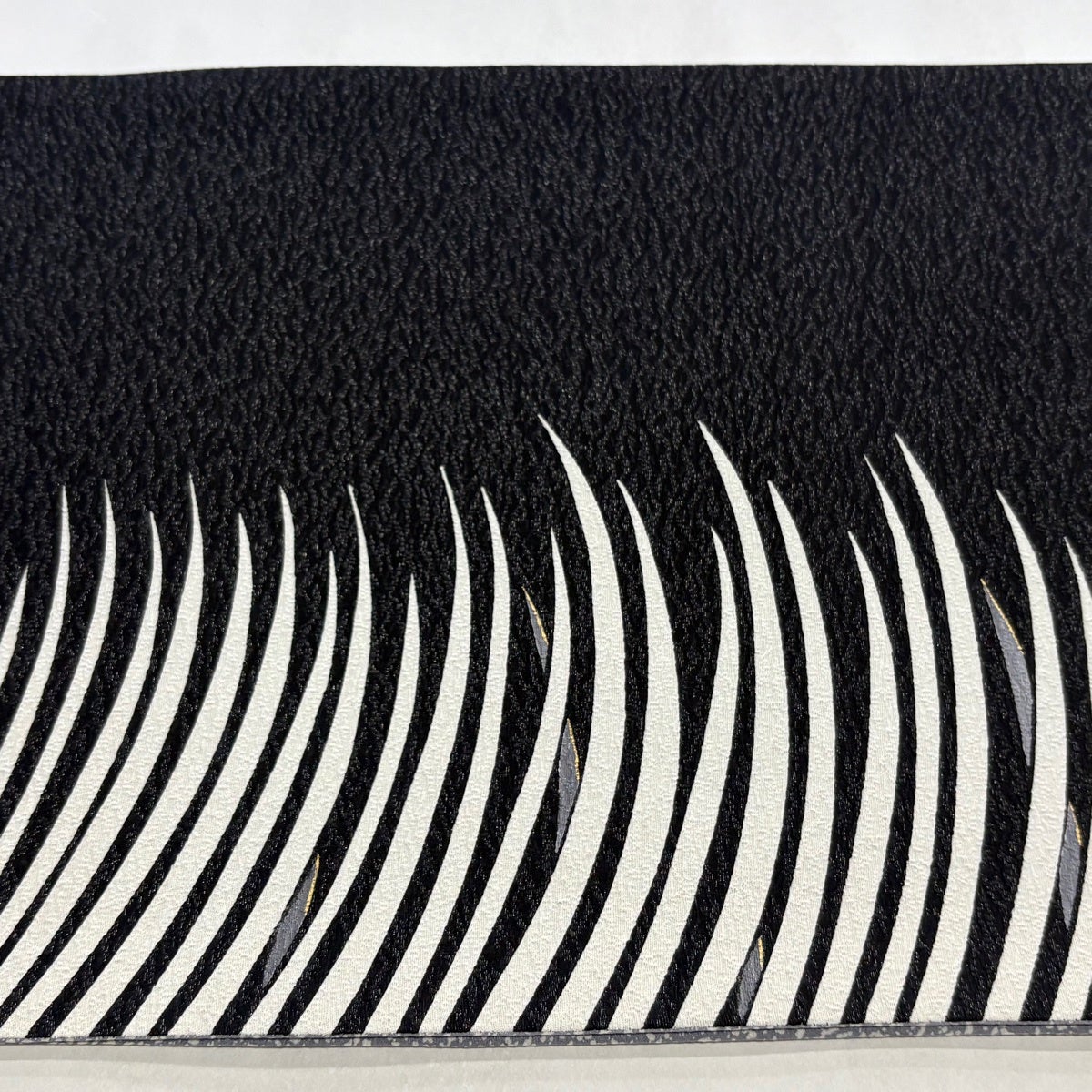 【美品】 袋帯 逸品 証紙あり 江戸千代紙 鴛鴦 青海波 金糸 黒 六通 正絹