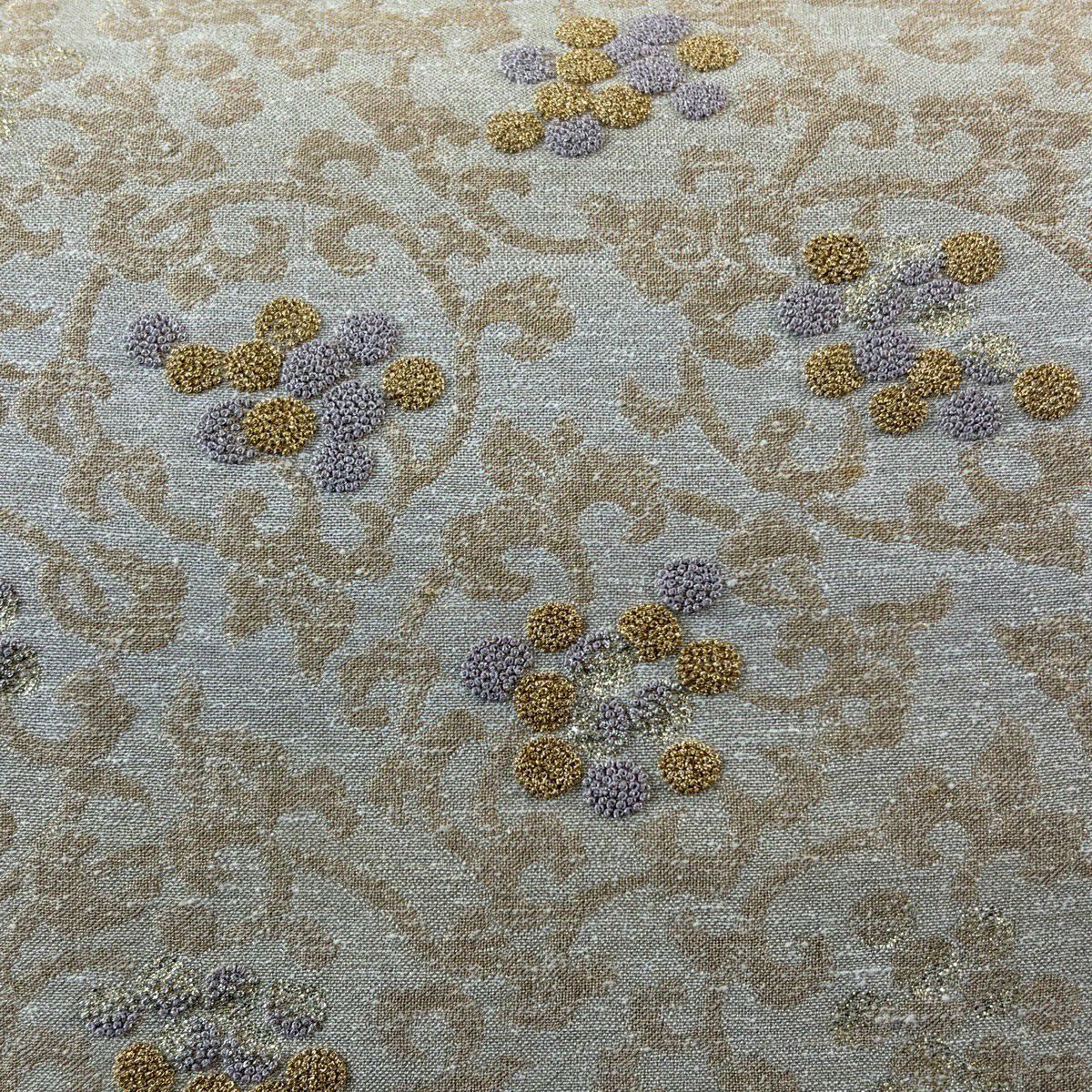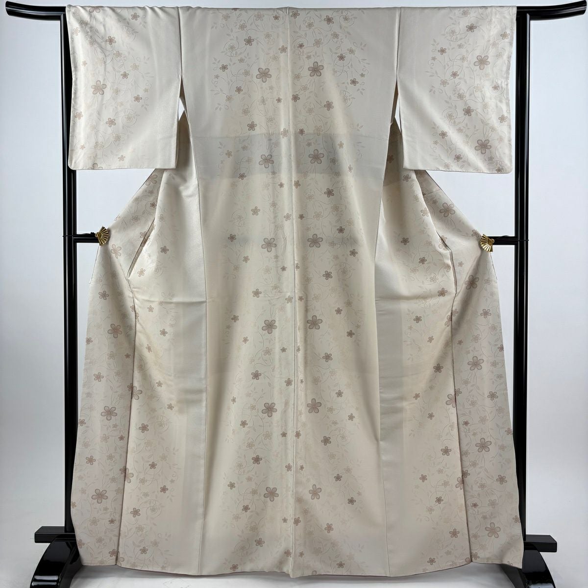 小紋 身丈166cm 裄丈65cm M 袷 花唐草 銀糸 ベージュ 正絹 逸品