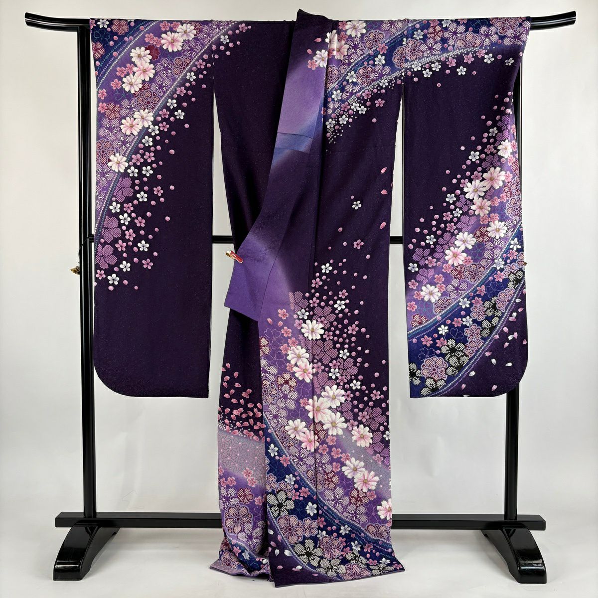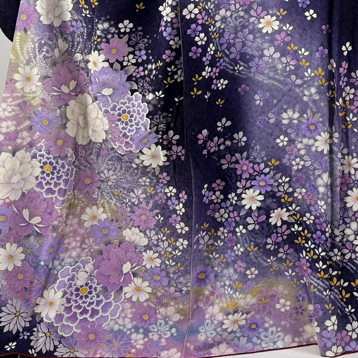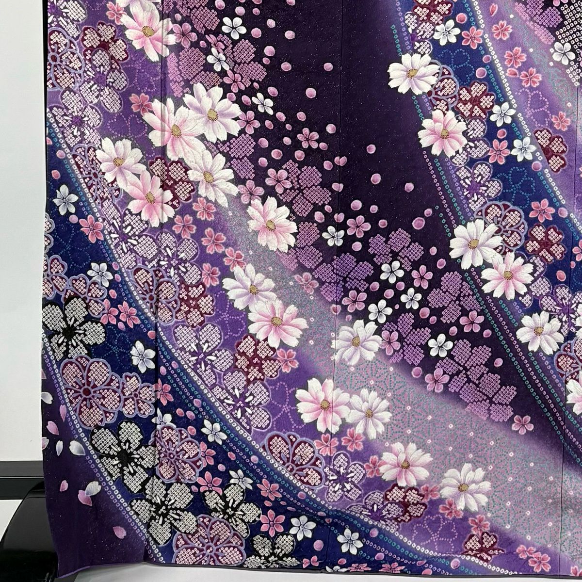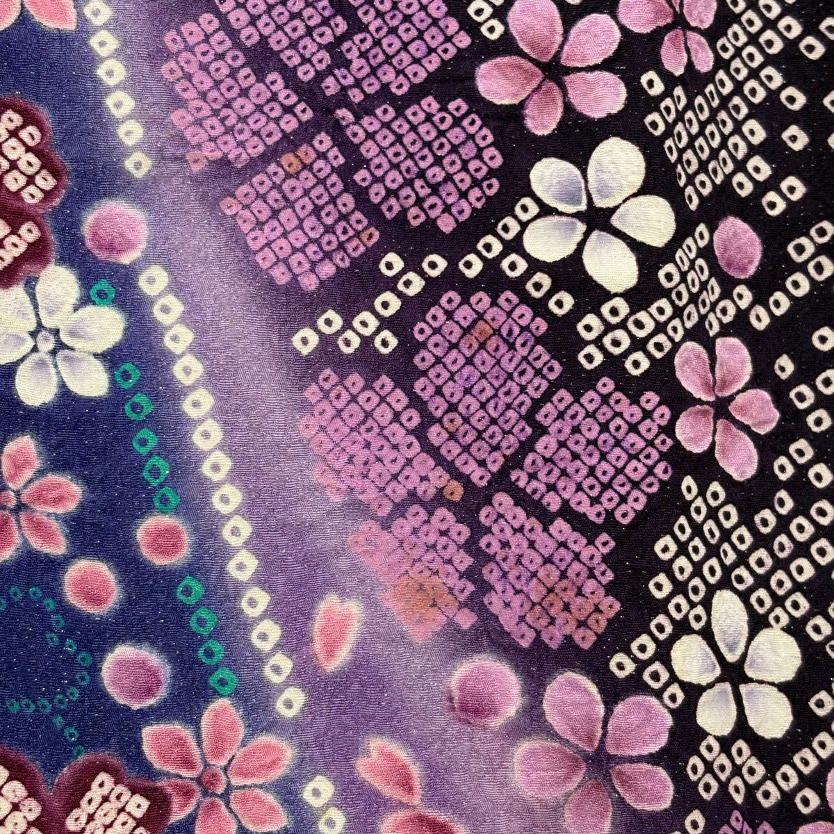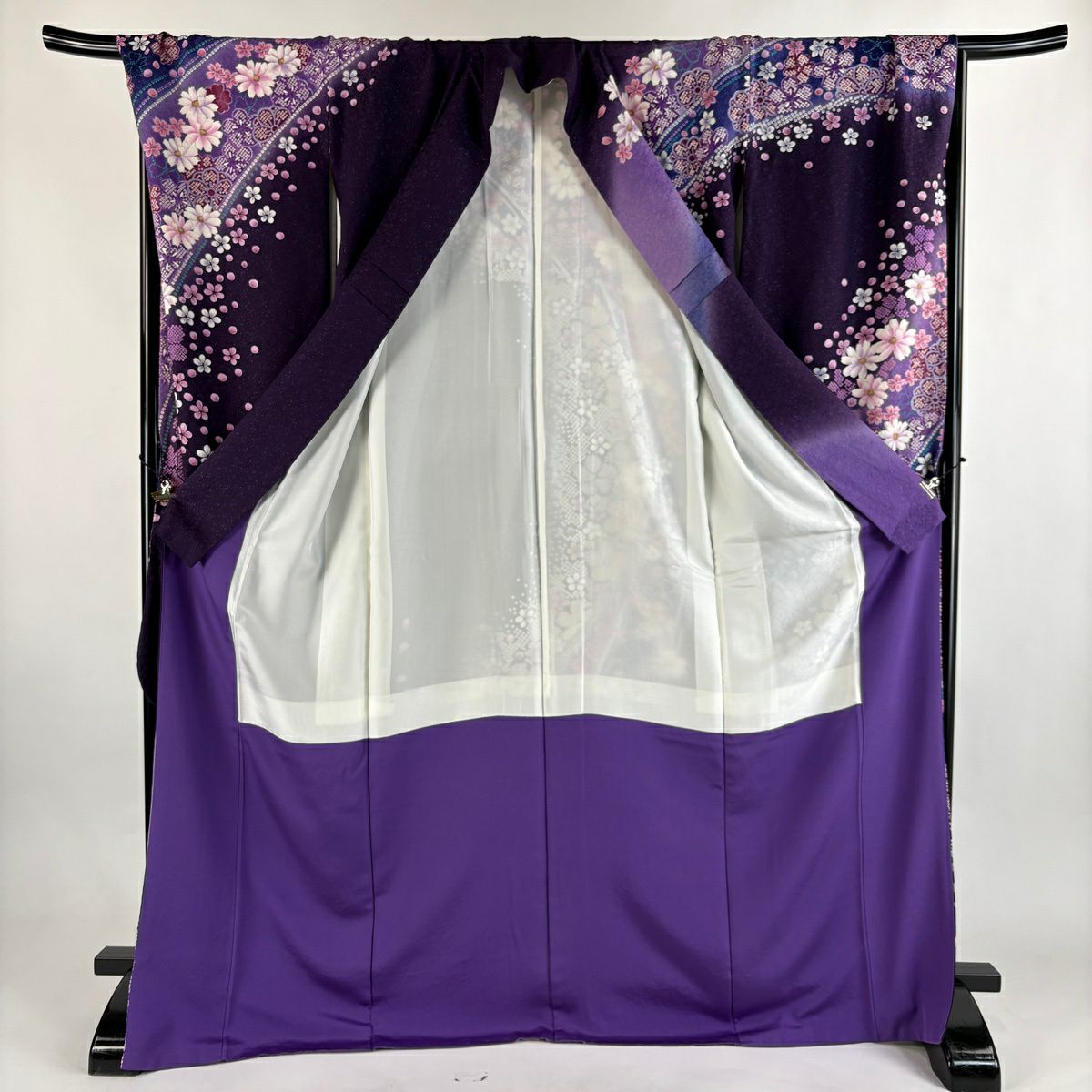 振袖 身丈173cm 裄丈71cm L 袷 桜 梅 銀通し ぼかし 紫 正絹 逸品
