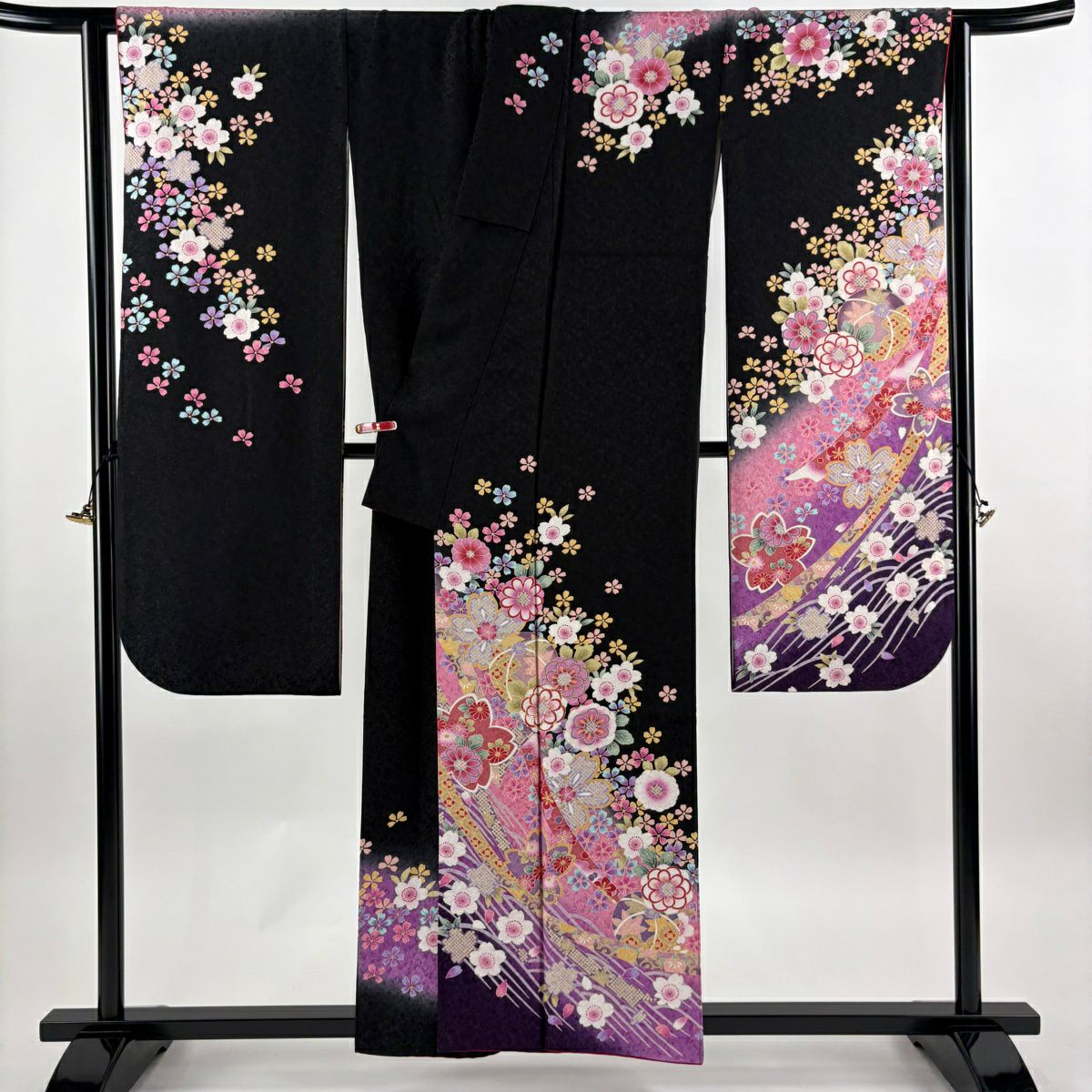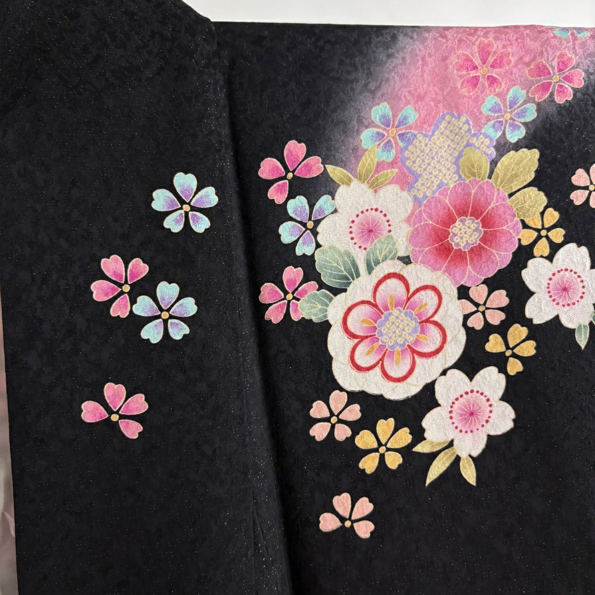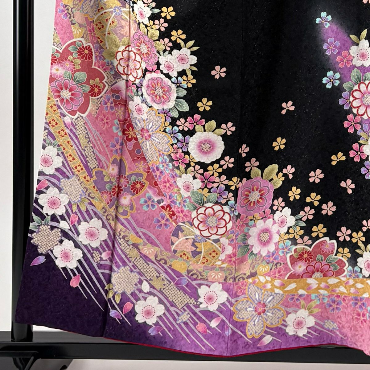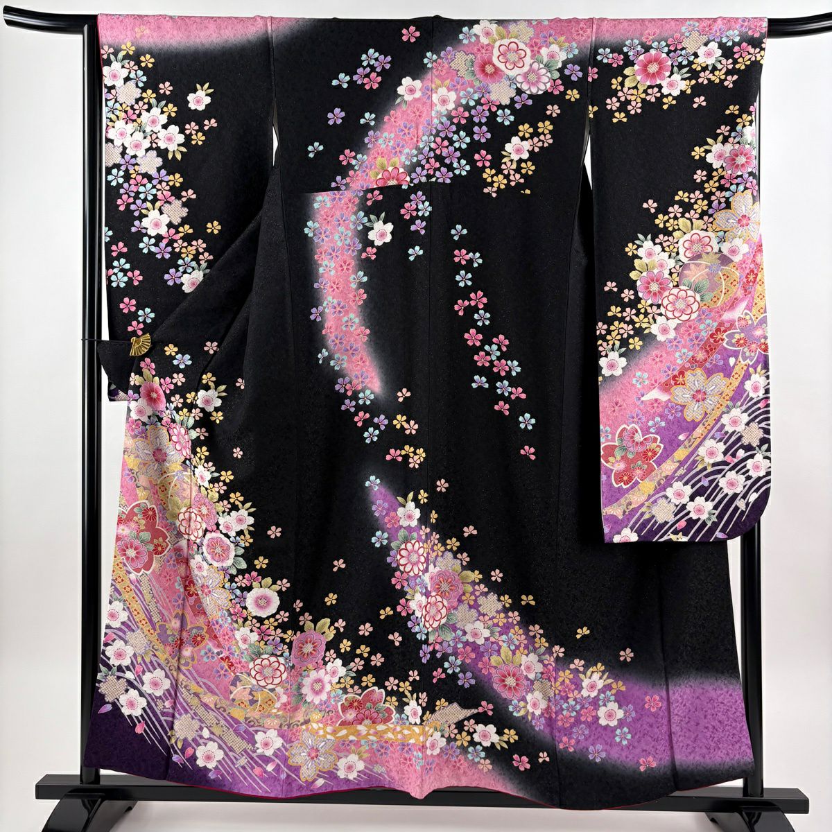 振袖 身丈155cm 裄丈66.5cm M 袷 桜 手鞠 箔 金通し 黒 正絹 逸品