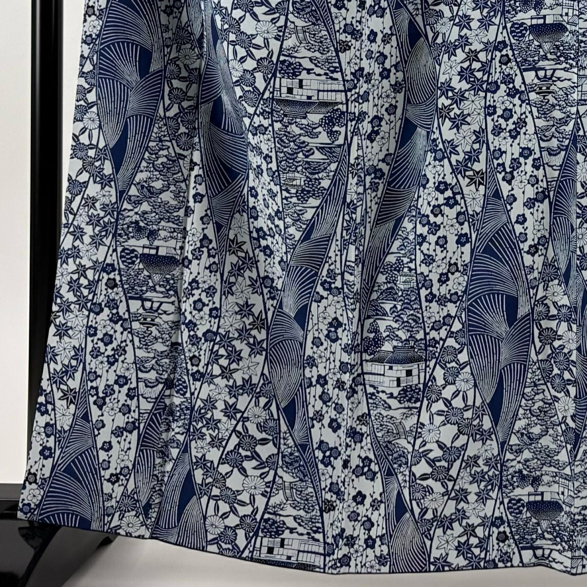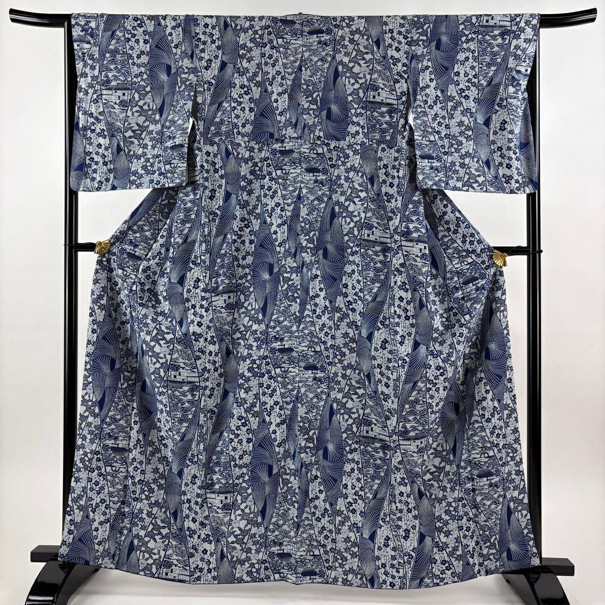 【美品】 小紋 身丈161cm 裄丈65cm M 袷 建物 松梅 藍色 正絹 逸品