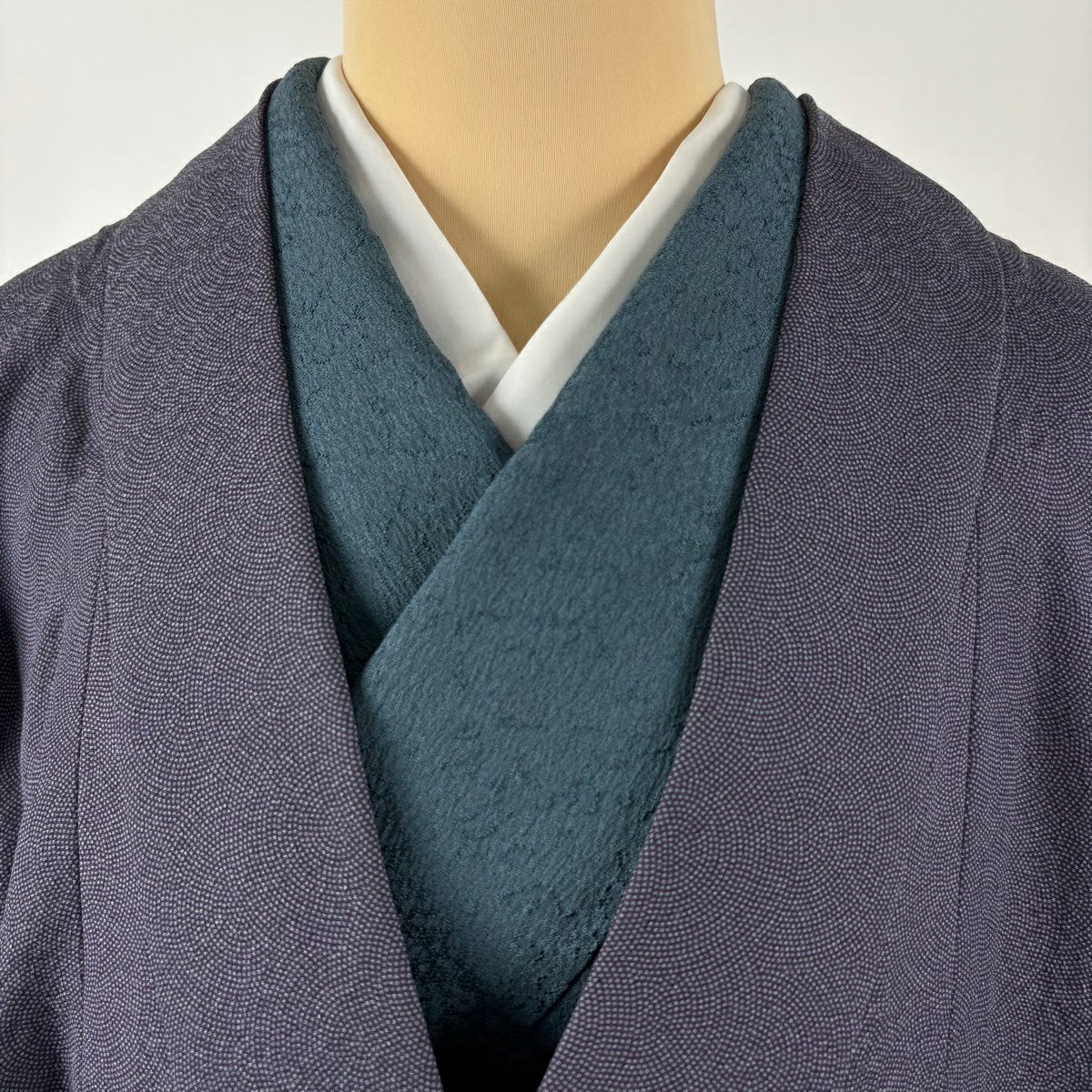 道中着 身丈104cm 裄丈65cm M 和装コート 着物衿 鮫 青紫 正絹 逸品