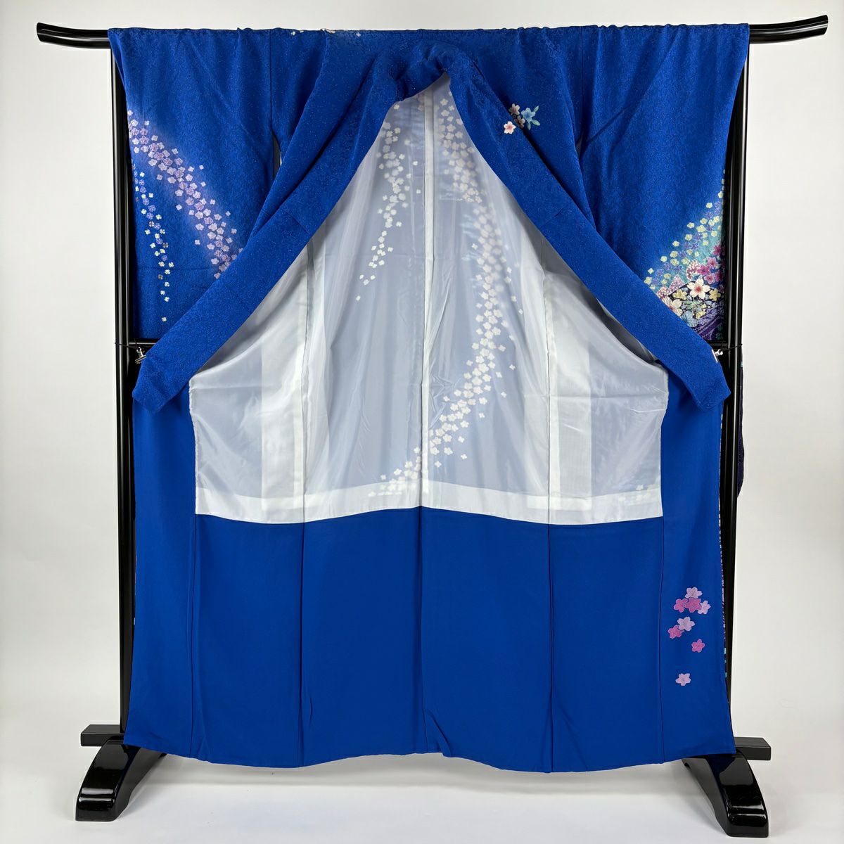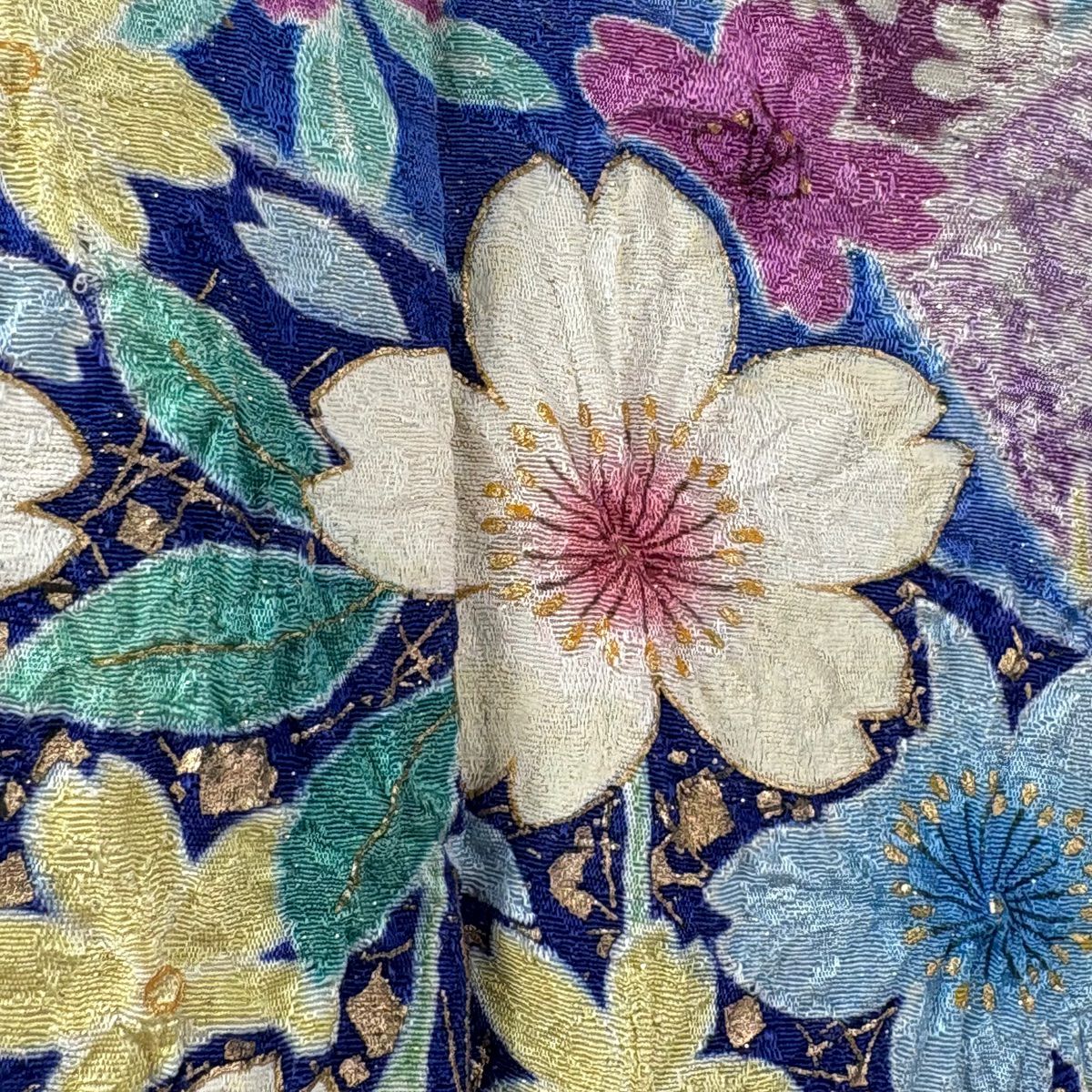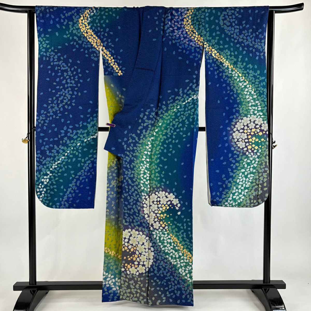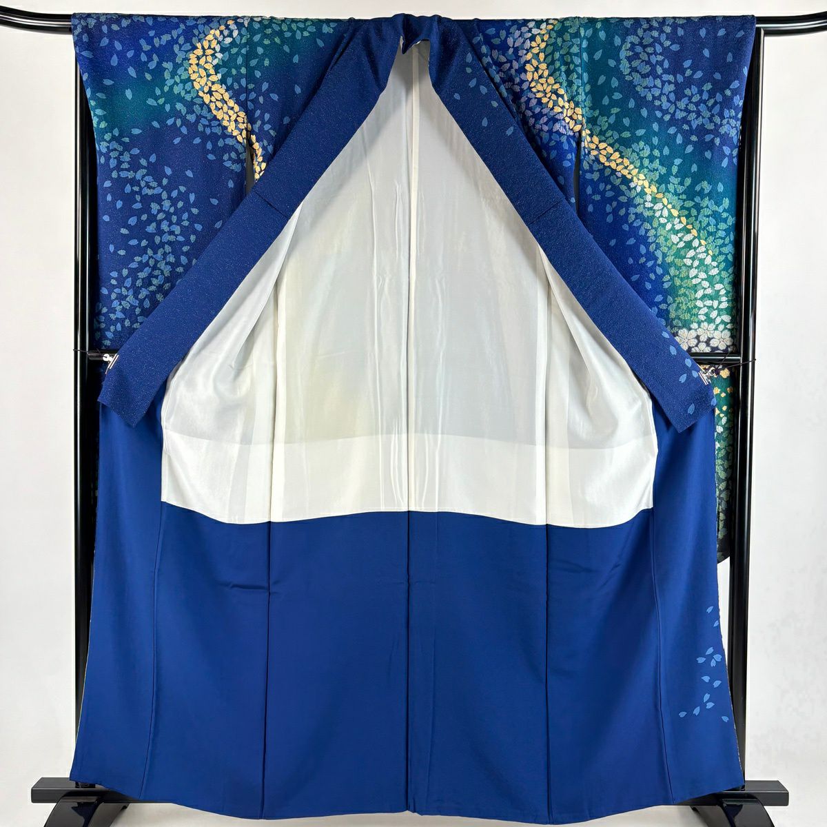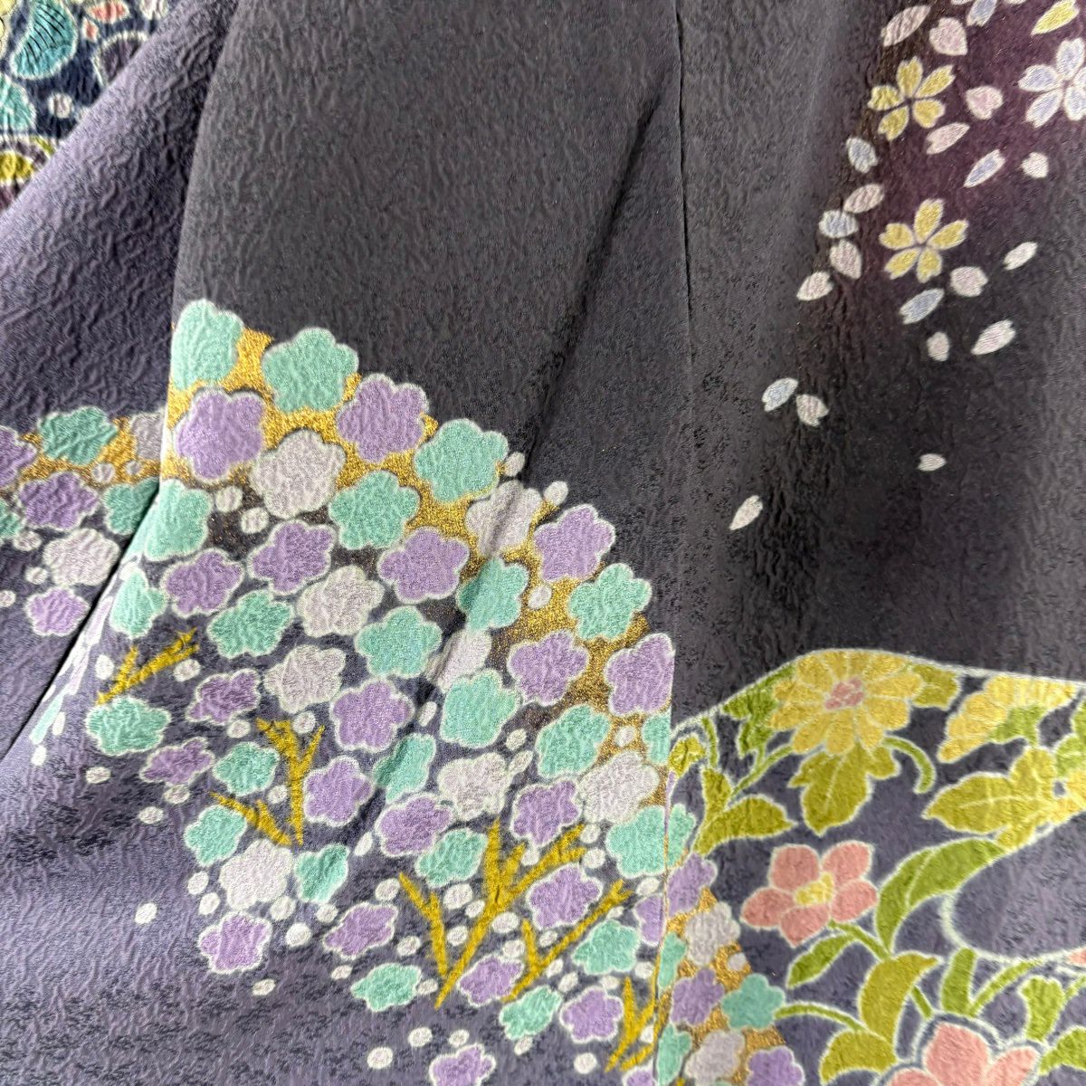 振袖 身丈161cm 裄丈67cm M 袷 桜 花びら 金通し 金彩 紺色 正絹 逸品