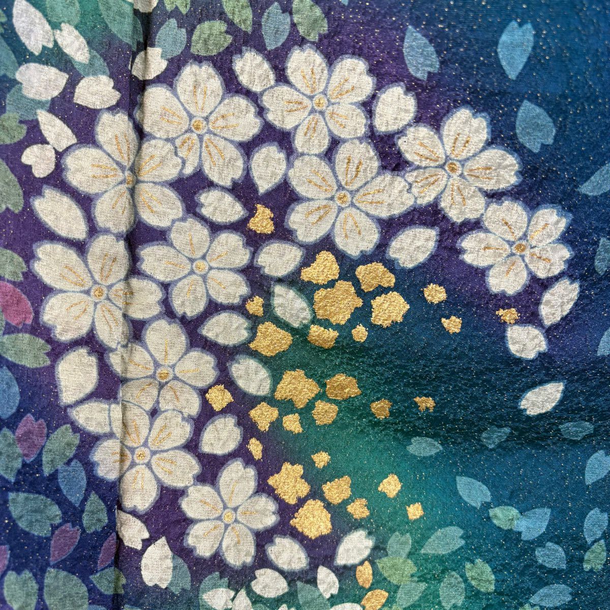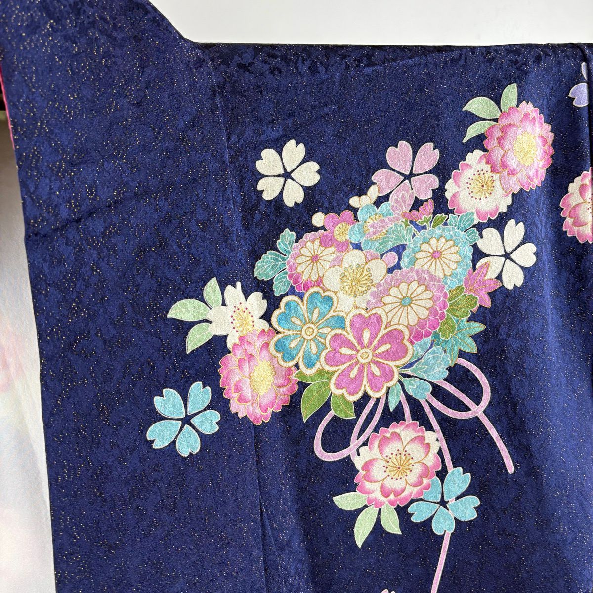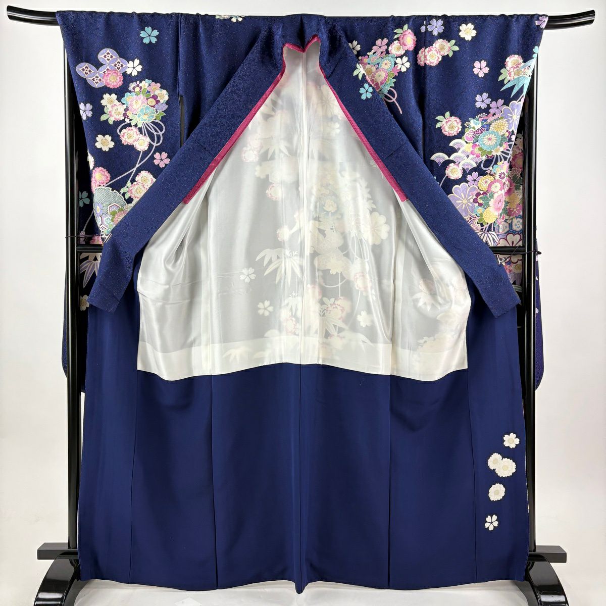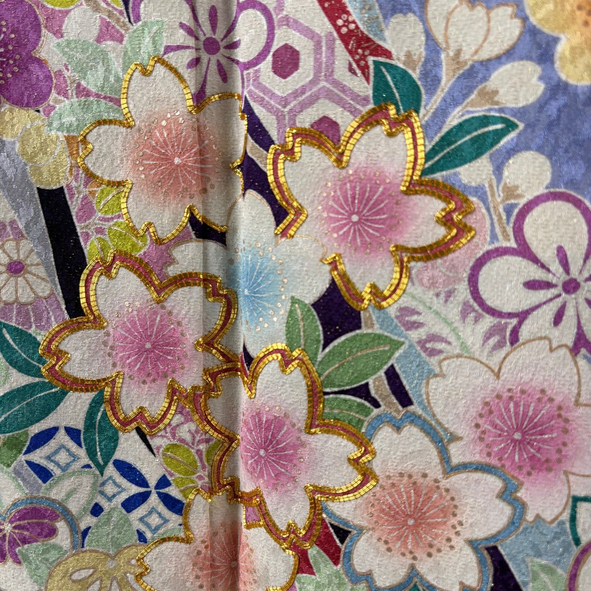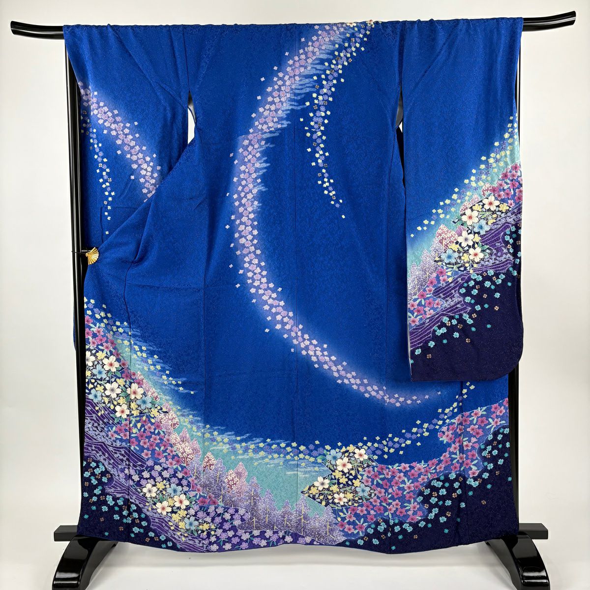 振袖 身丈161cm 裄丈67cm M 袷 桜 花びら 金通し 金彩 紺色 正絹 逸品