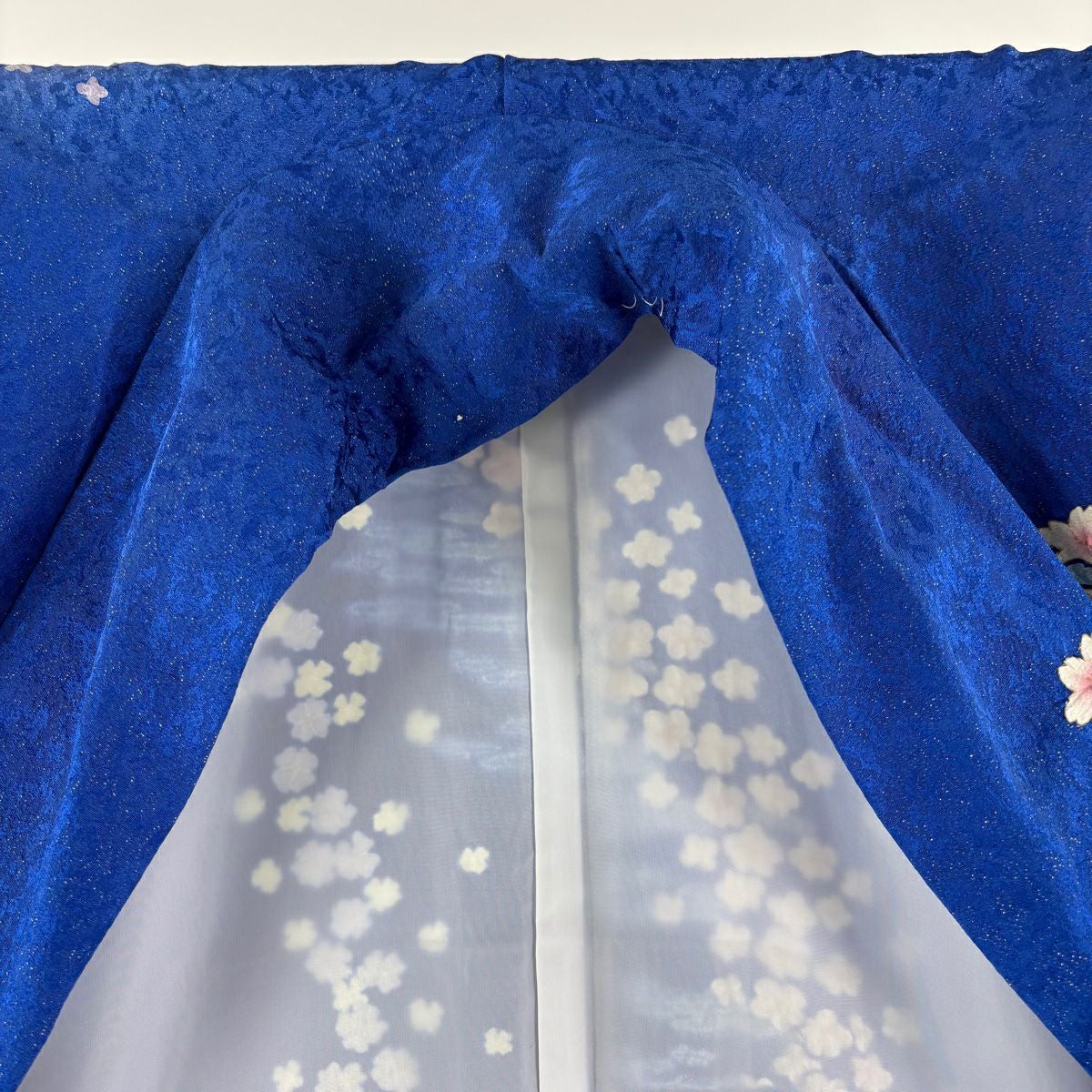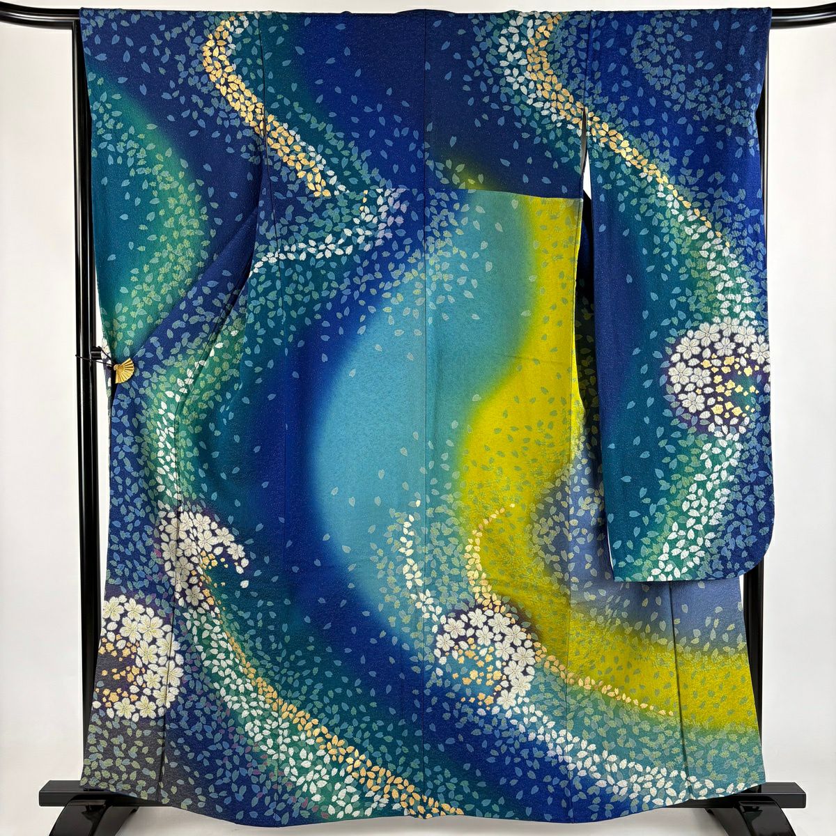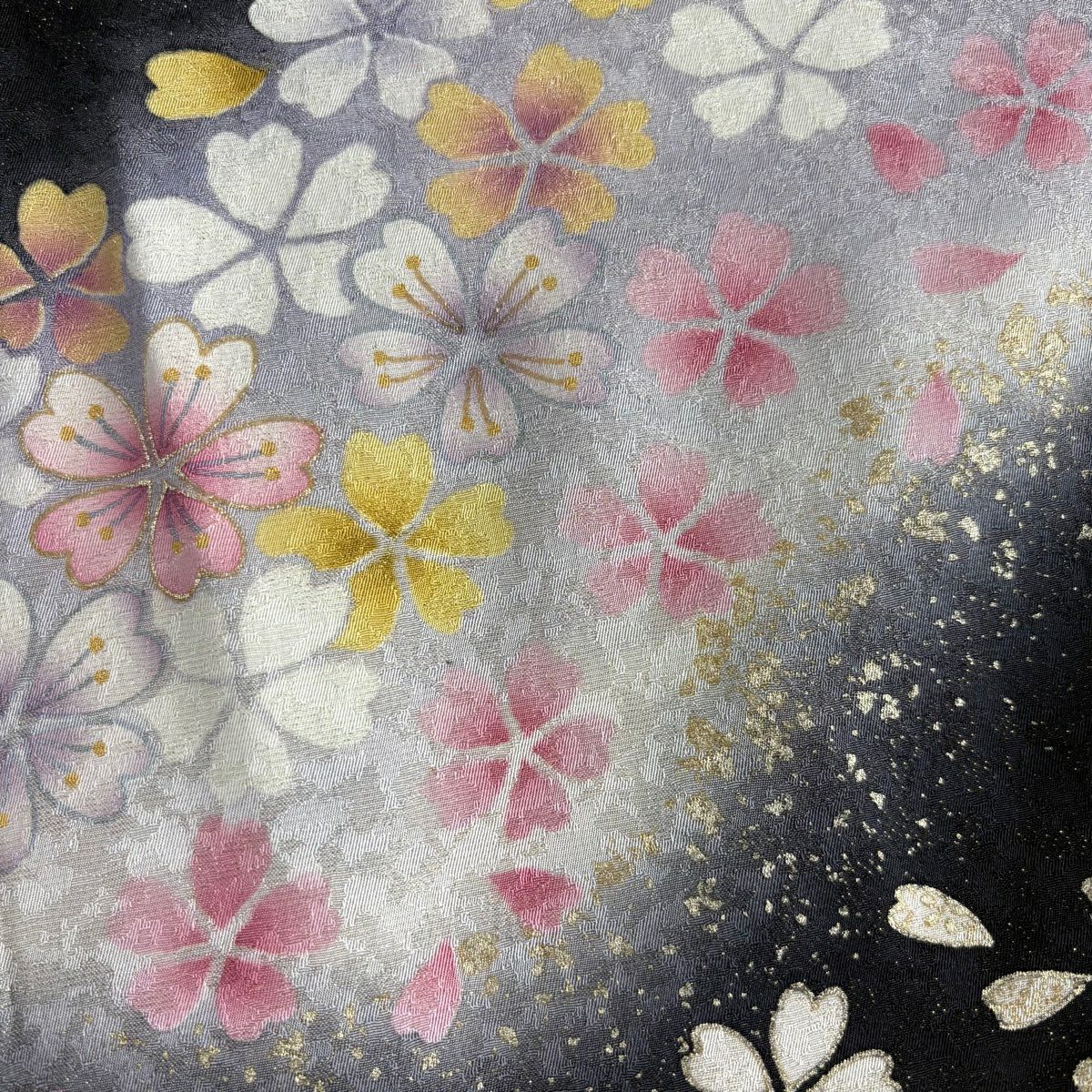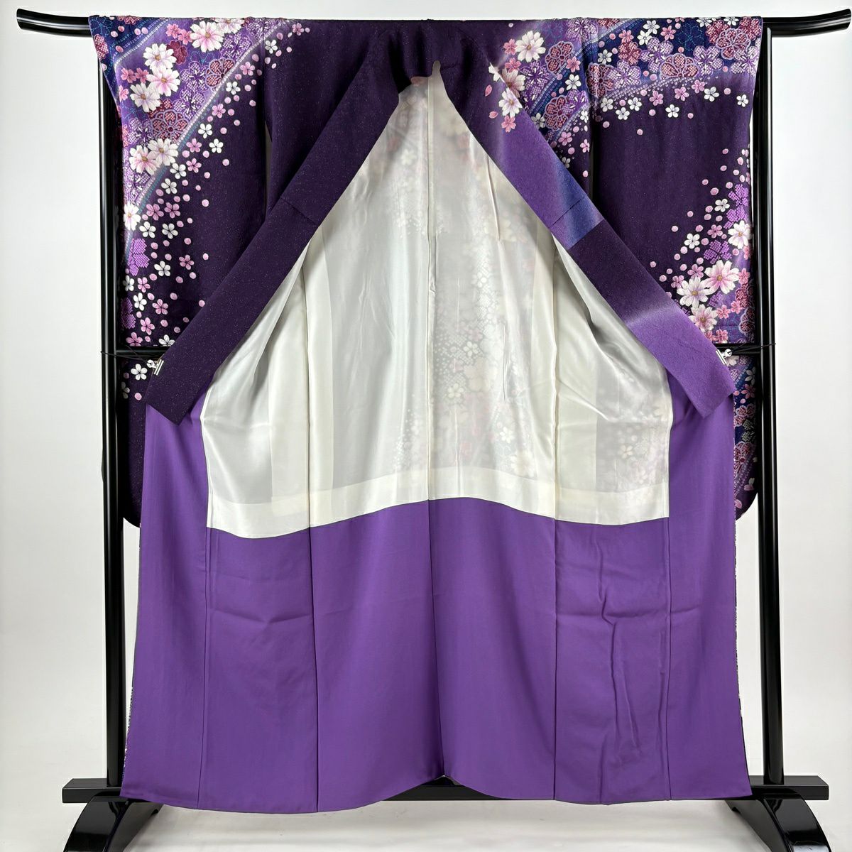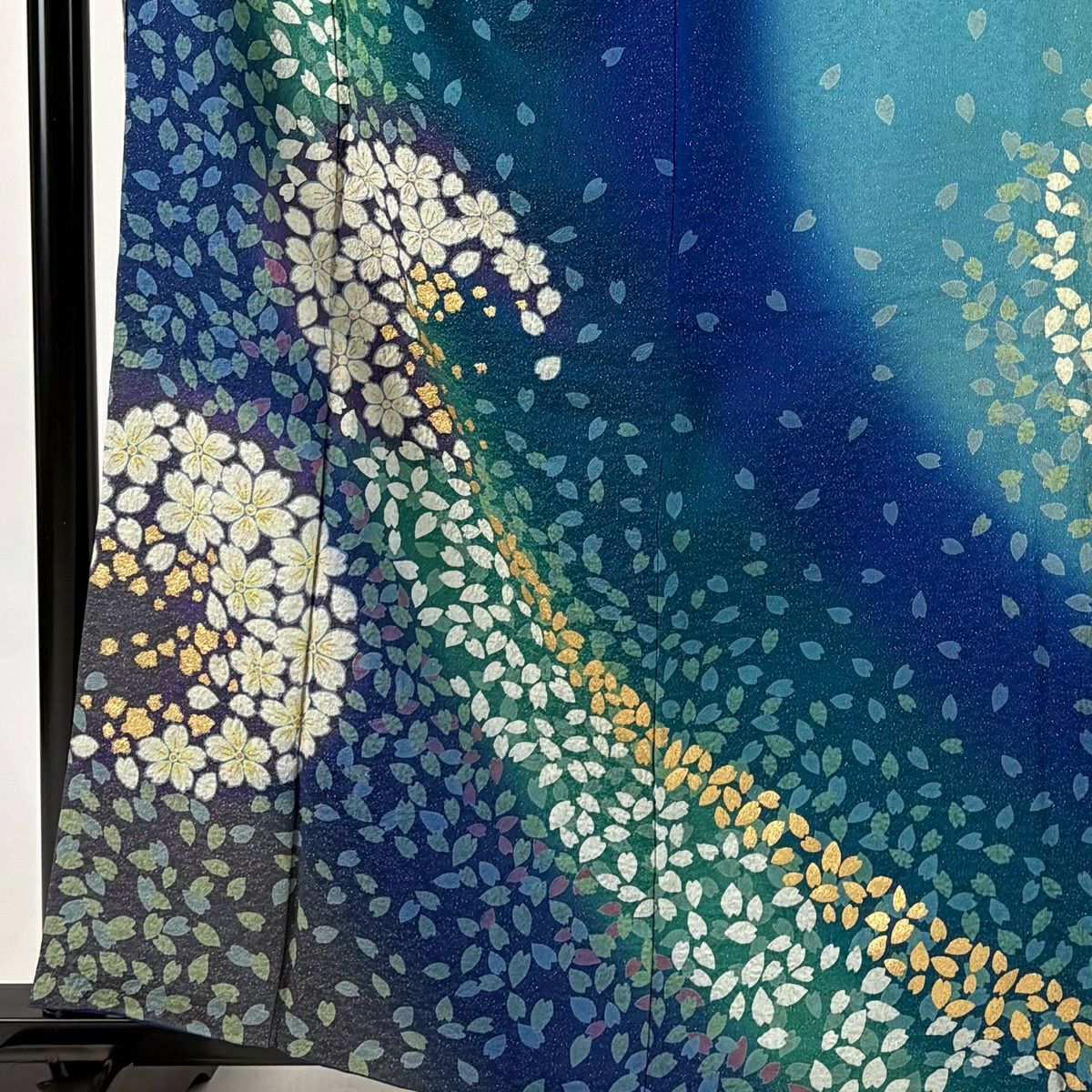 振袖 身丈161cm 裄丈67cm M 袷 桜 花びら 金通し 金彩 紺色 正絹 逸品