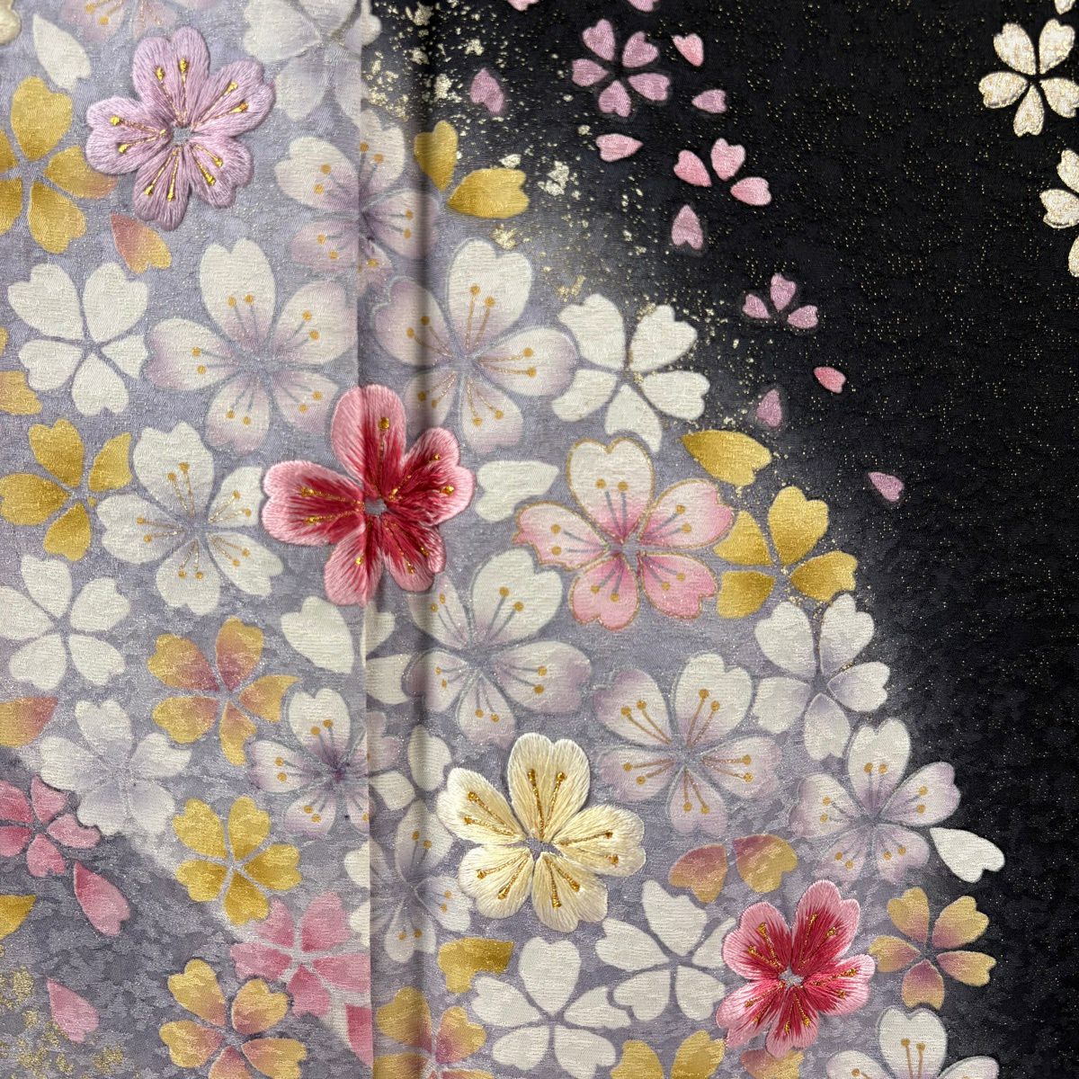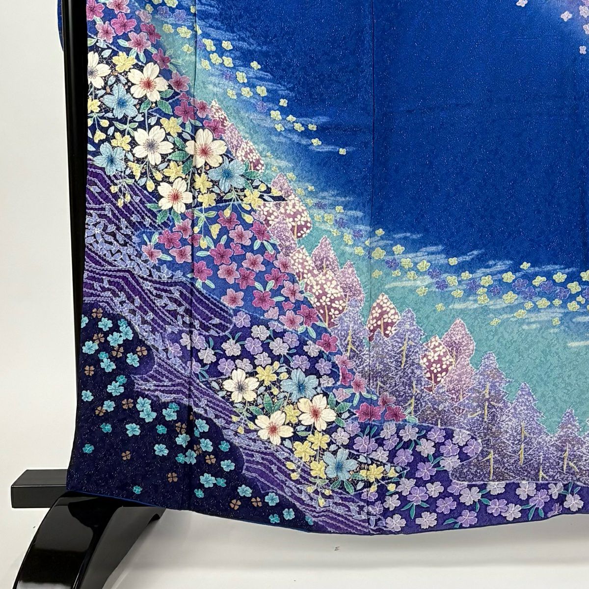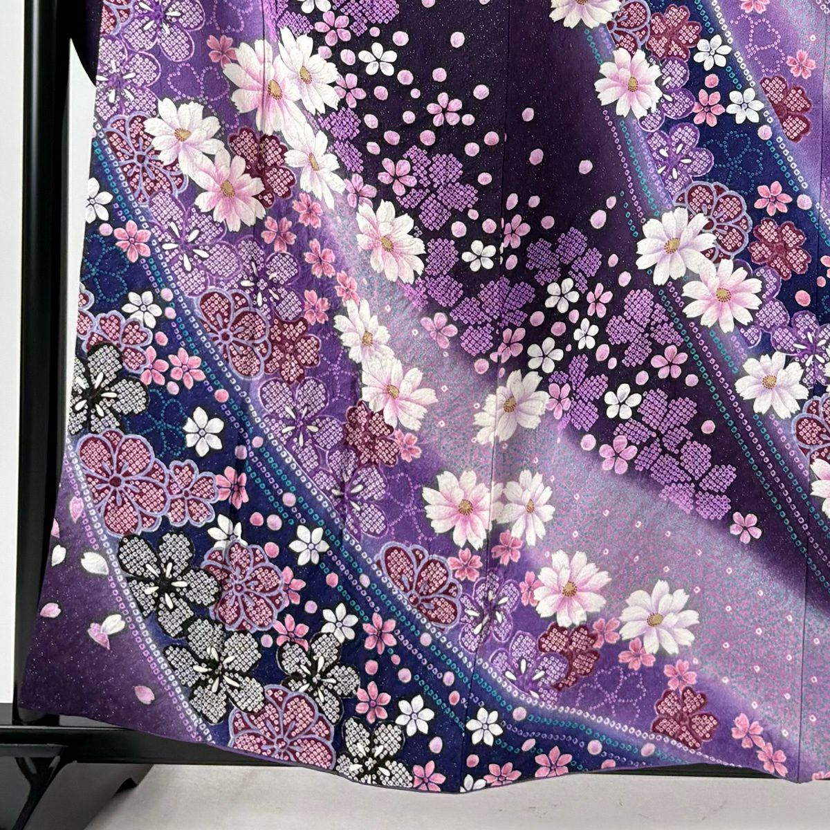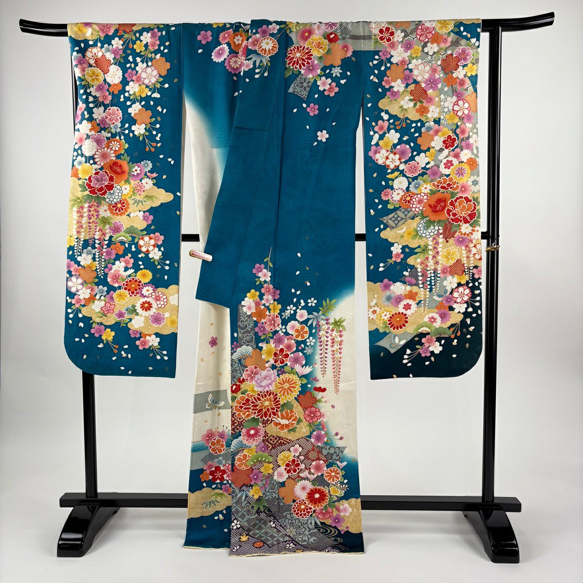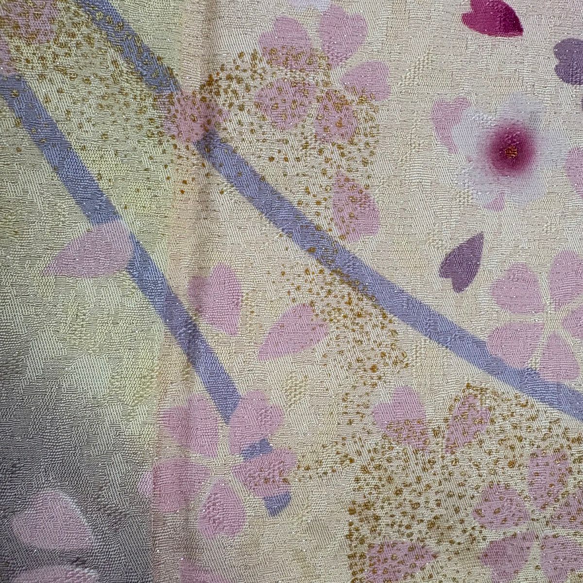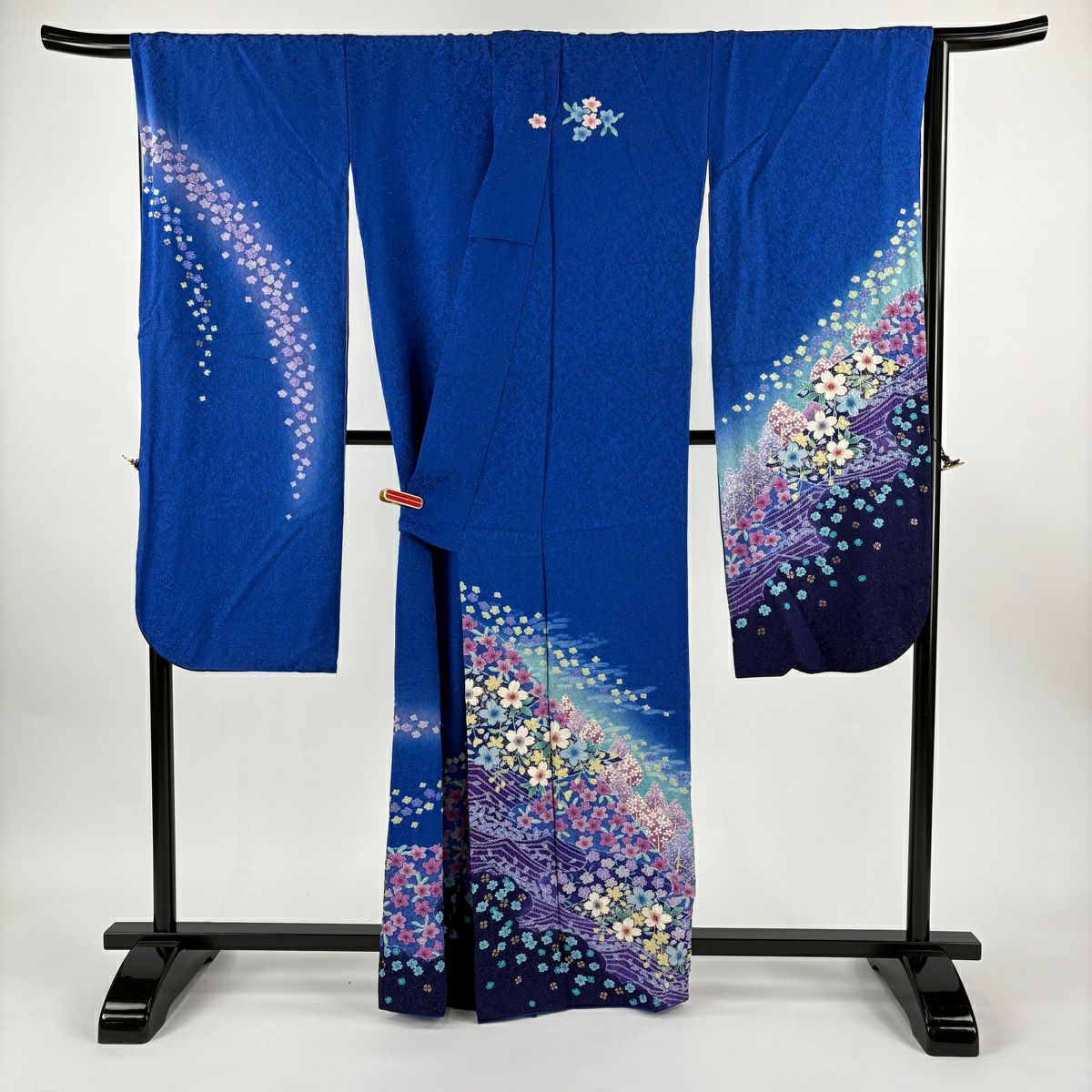 振袖 身丈161cm 裄丈67cm M 袷 桜 花びら 金通し 金彩 紺色 正絹 逸品