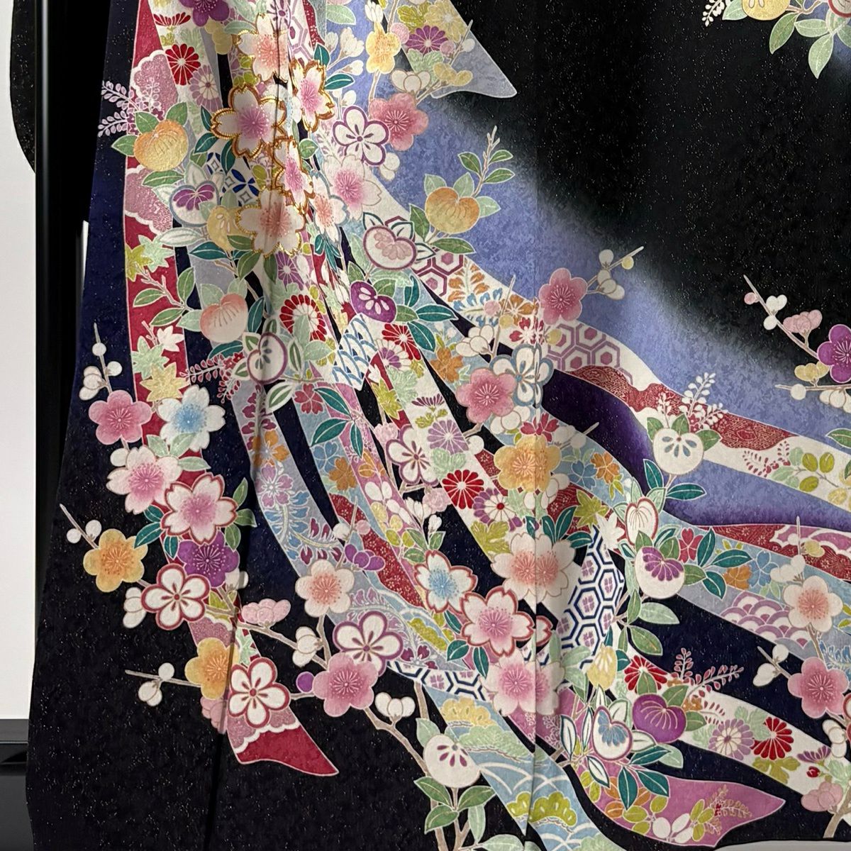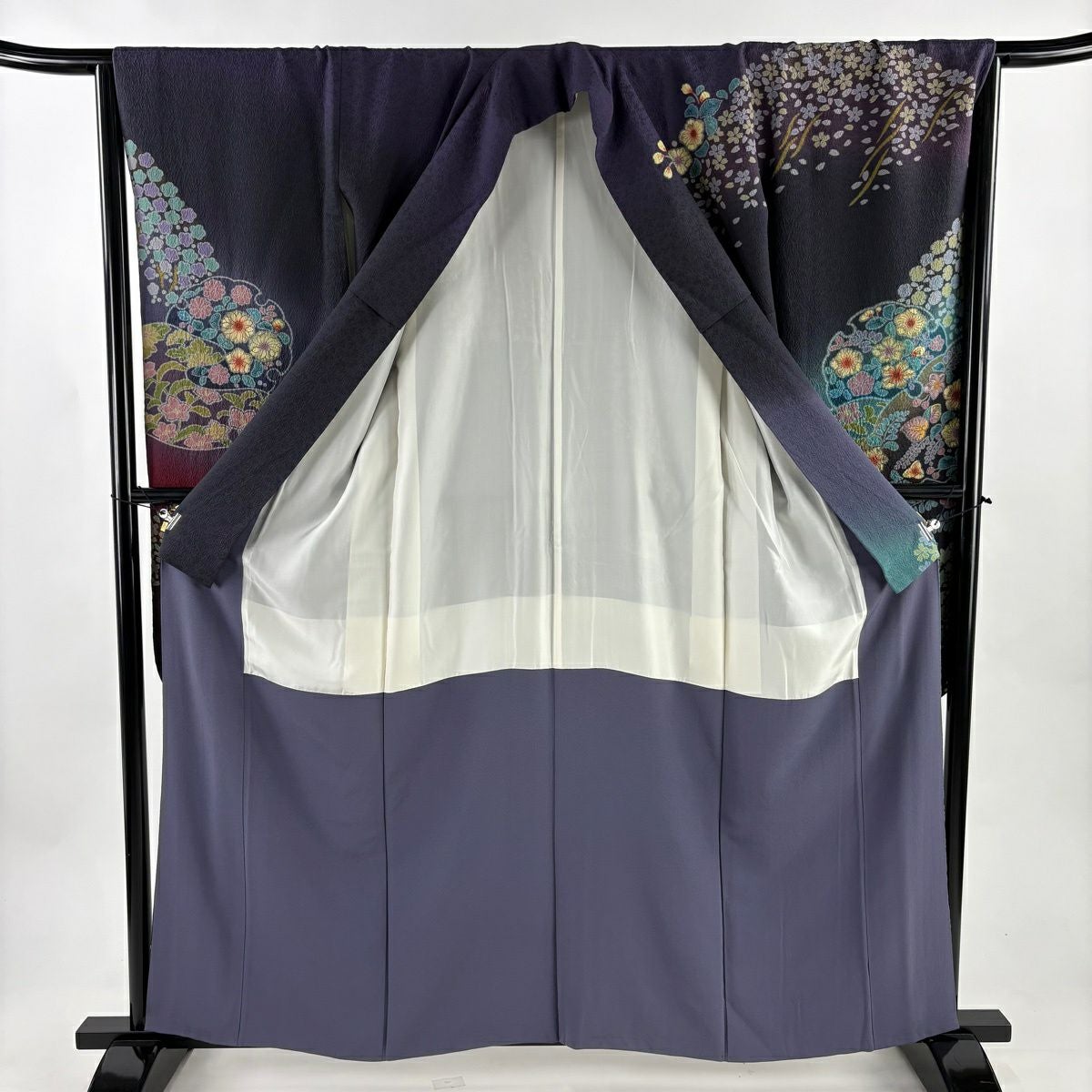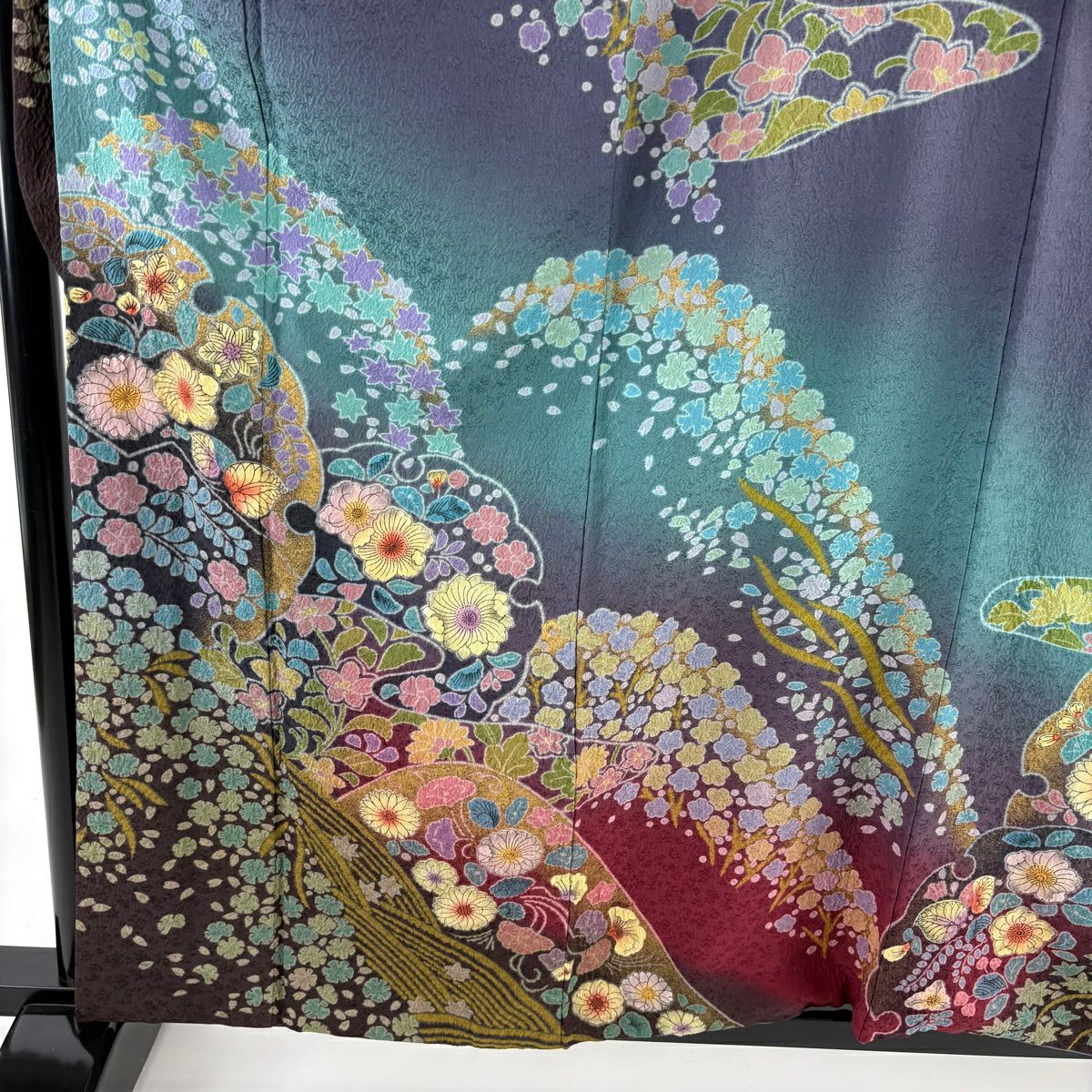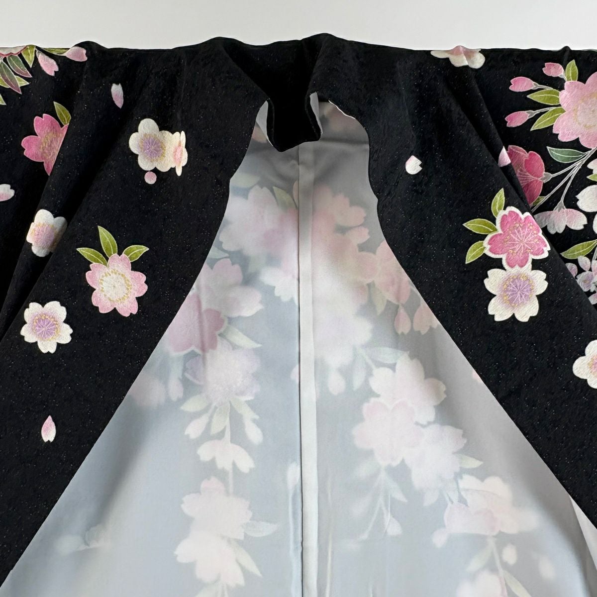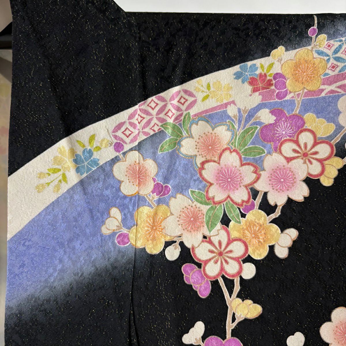 振袖 身丈161cm 裄丈67cm M 袷 桜 花びら 金通し 金彩 紺色 正絹 逸品