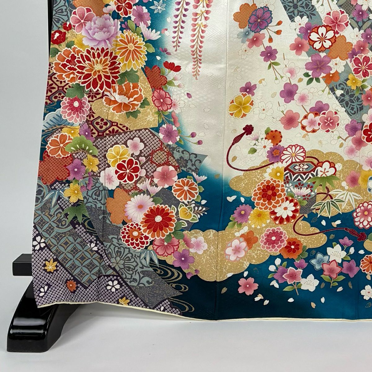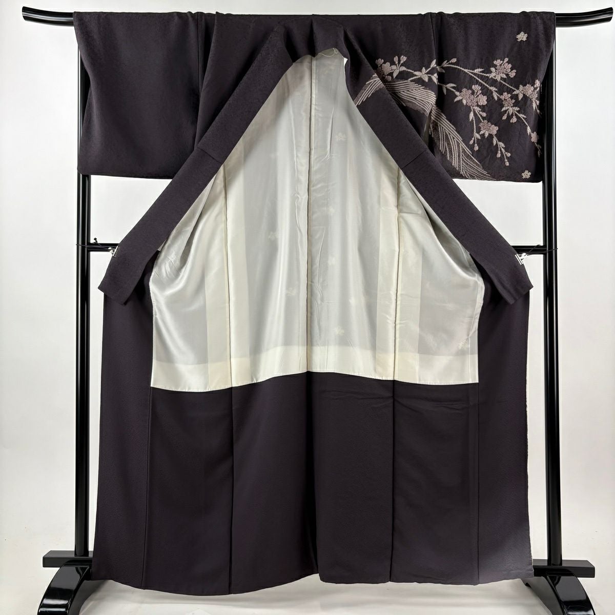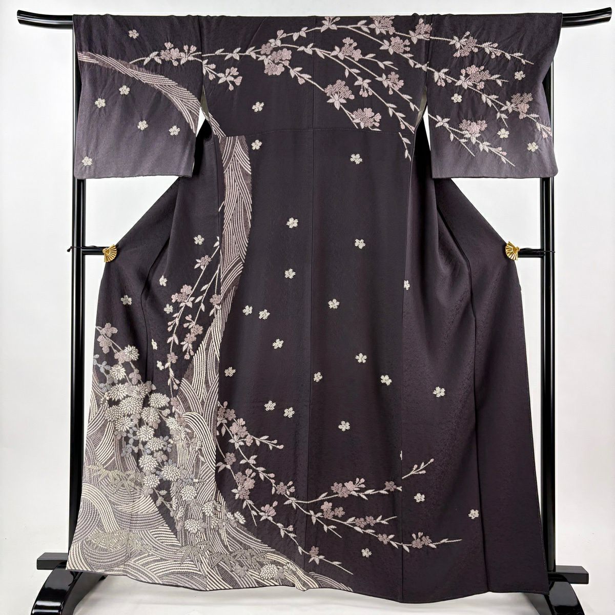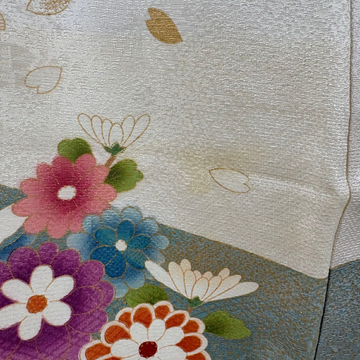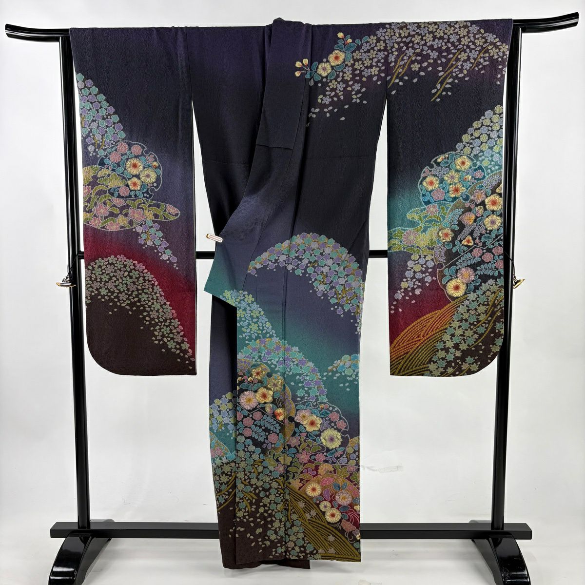 振袖 身丈161cm 裄丈67cm M 袷 桜 花びら 金通し 金彩 紺色 正絹 逸品