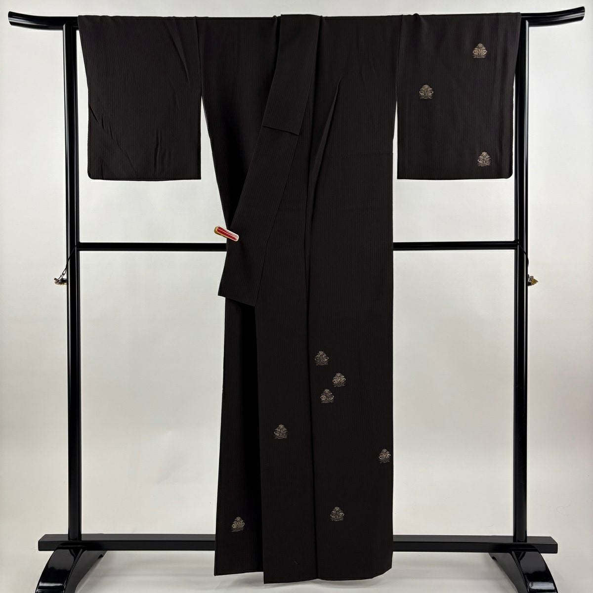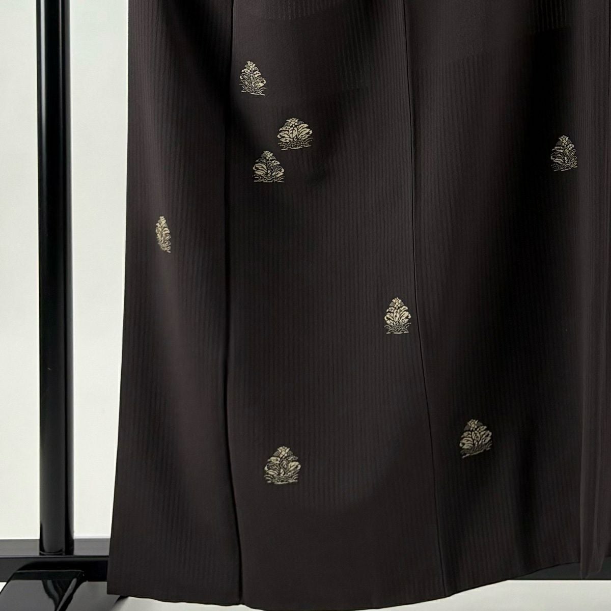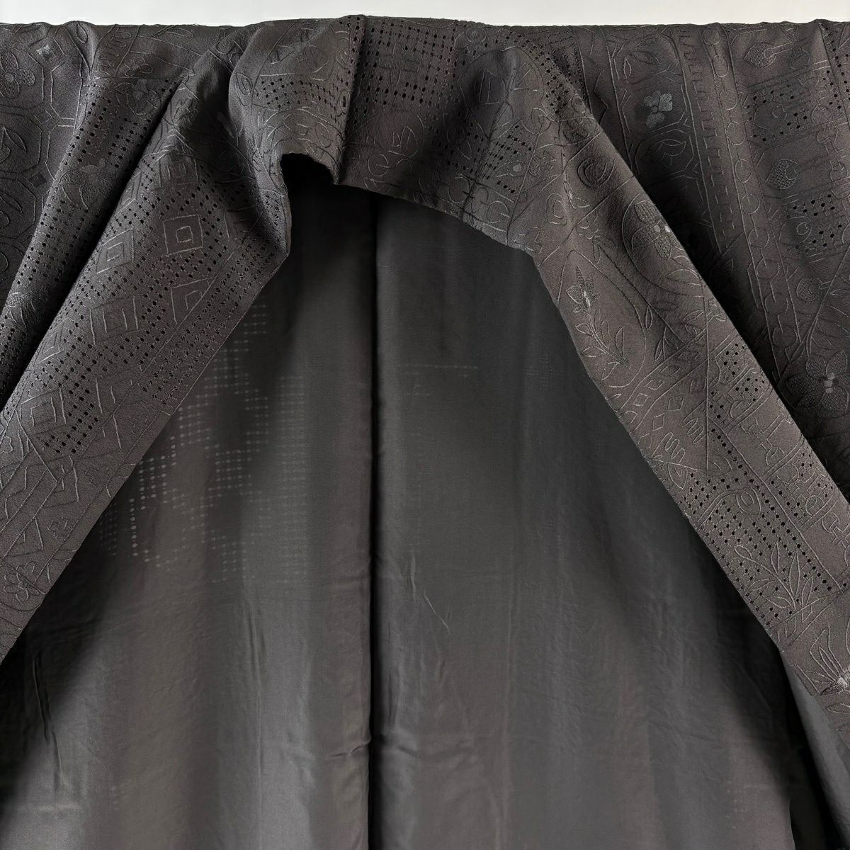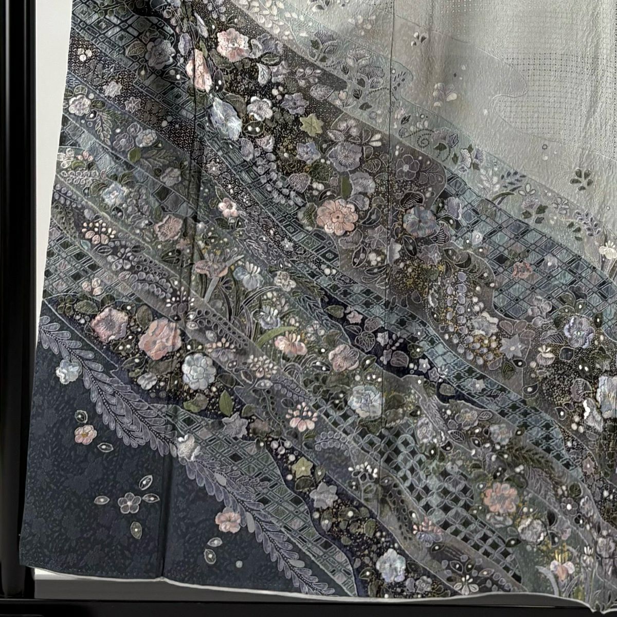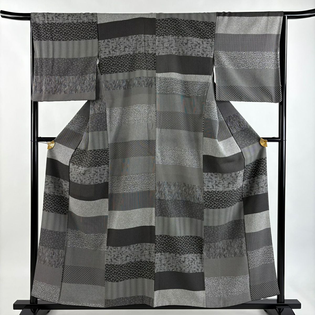 小紋 身丈154.5cm 裄丈63cm S 袷 草花 幾何学 刺繍 墨色 正絹 逸品