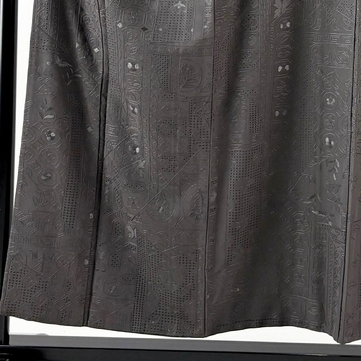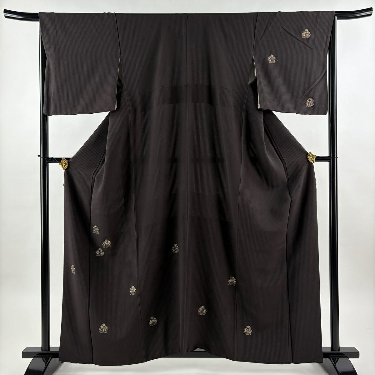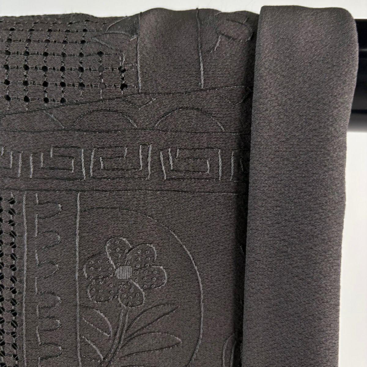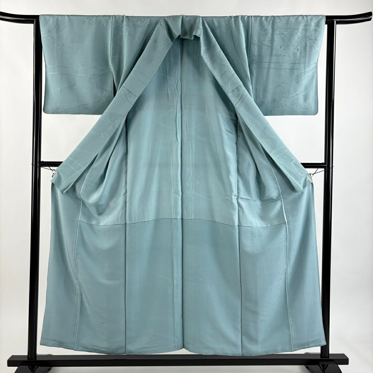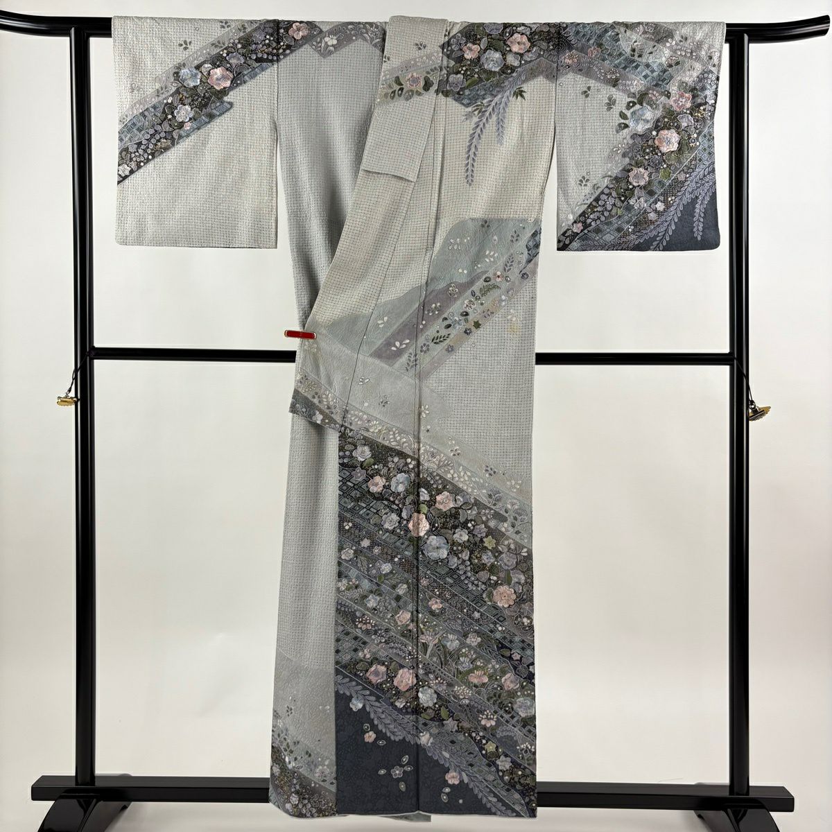 小紋 身丈154.5cm 裄丈63cm S 袷 草花 幾何学 刺繍 墨色 正絹 逸品