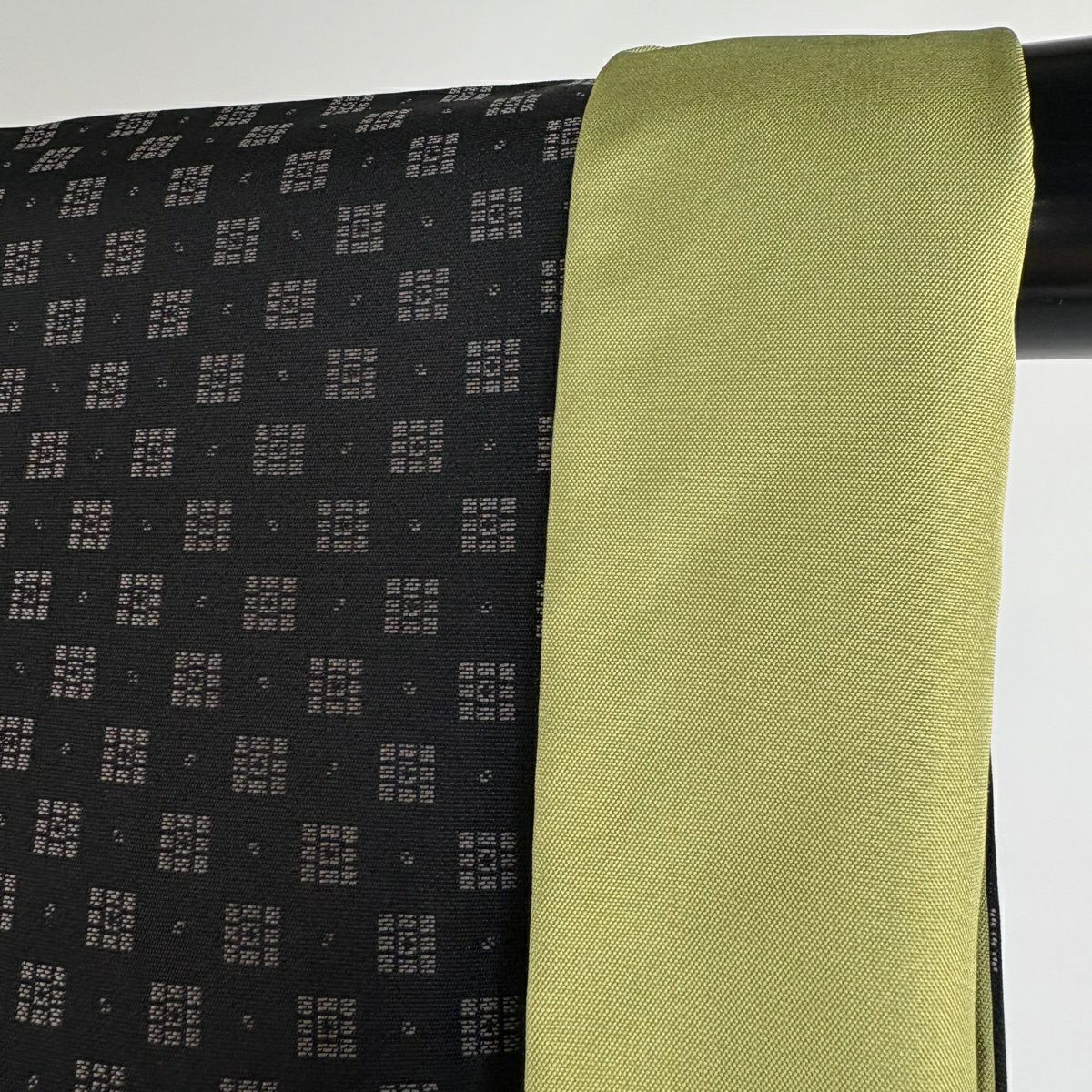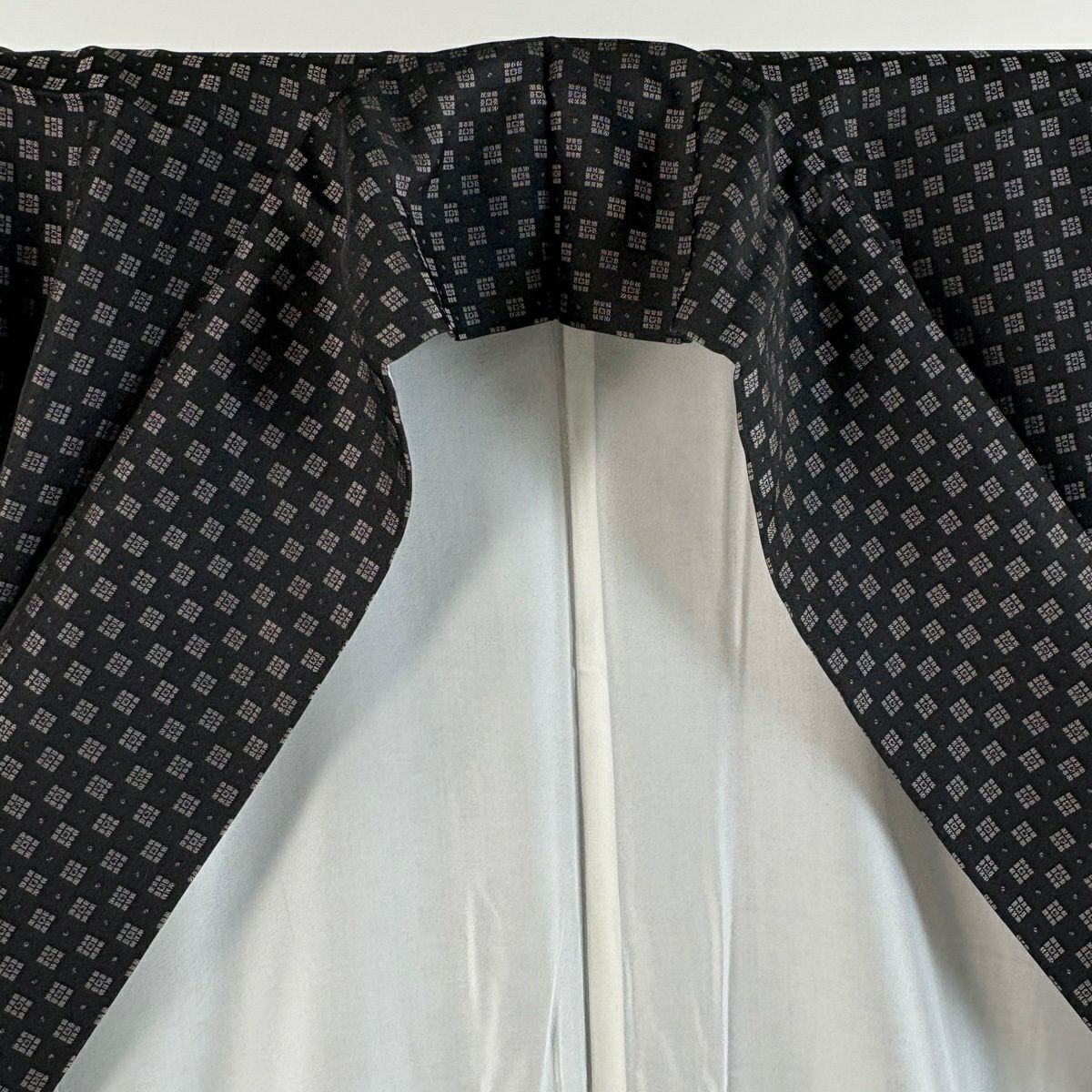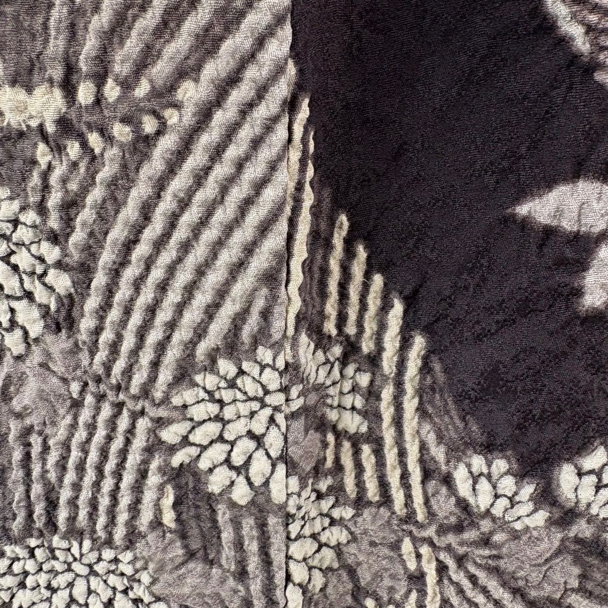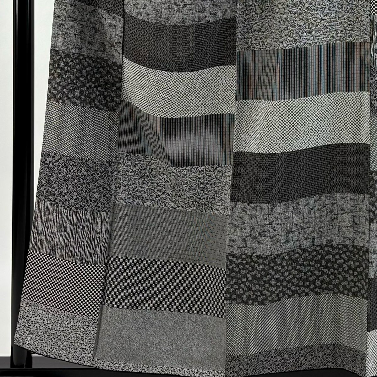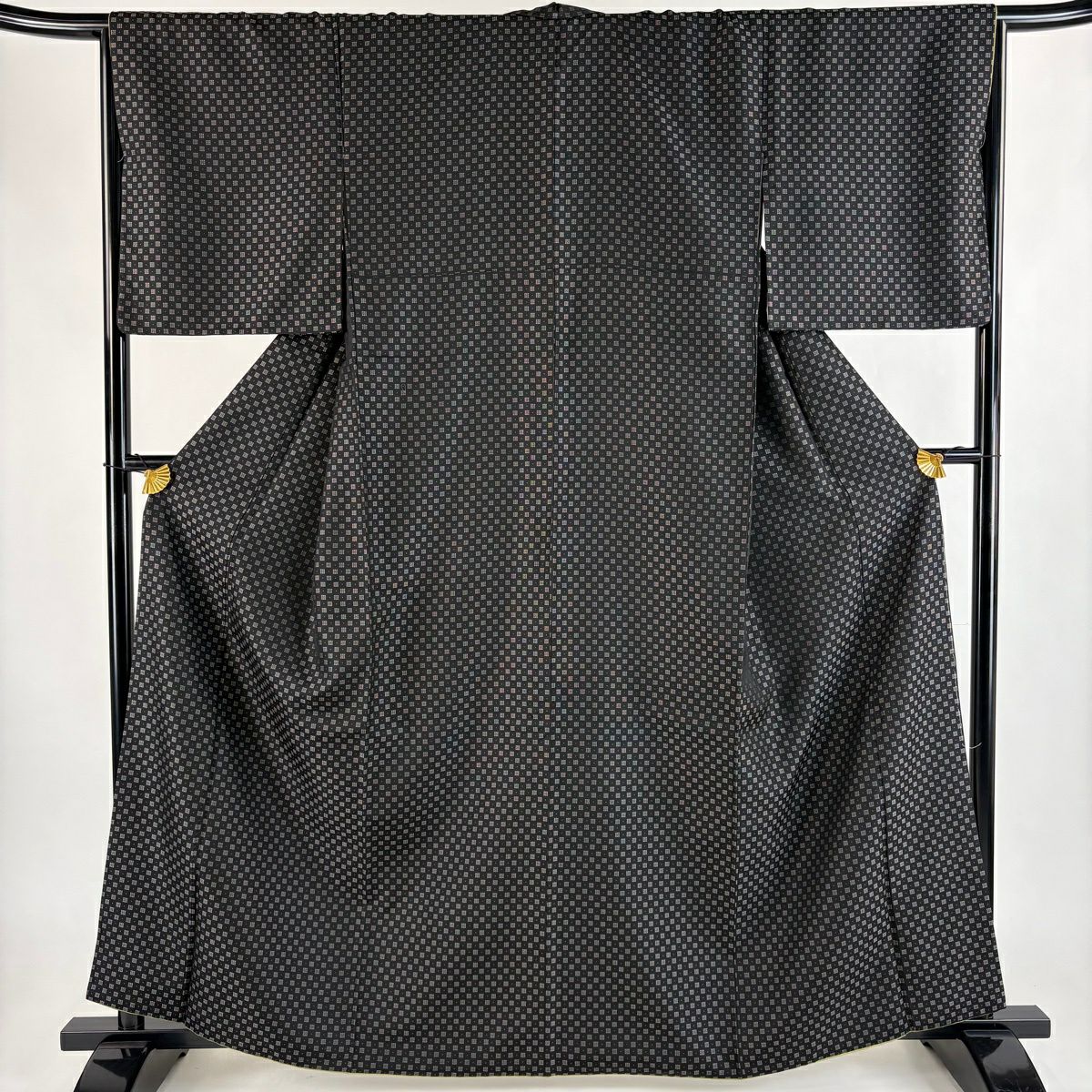 【美品】 お召 身丈163cm 裄丈65.5cm M 袷 幾何学模様 黒 正絹 逸品