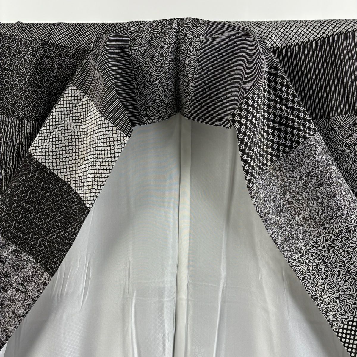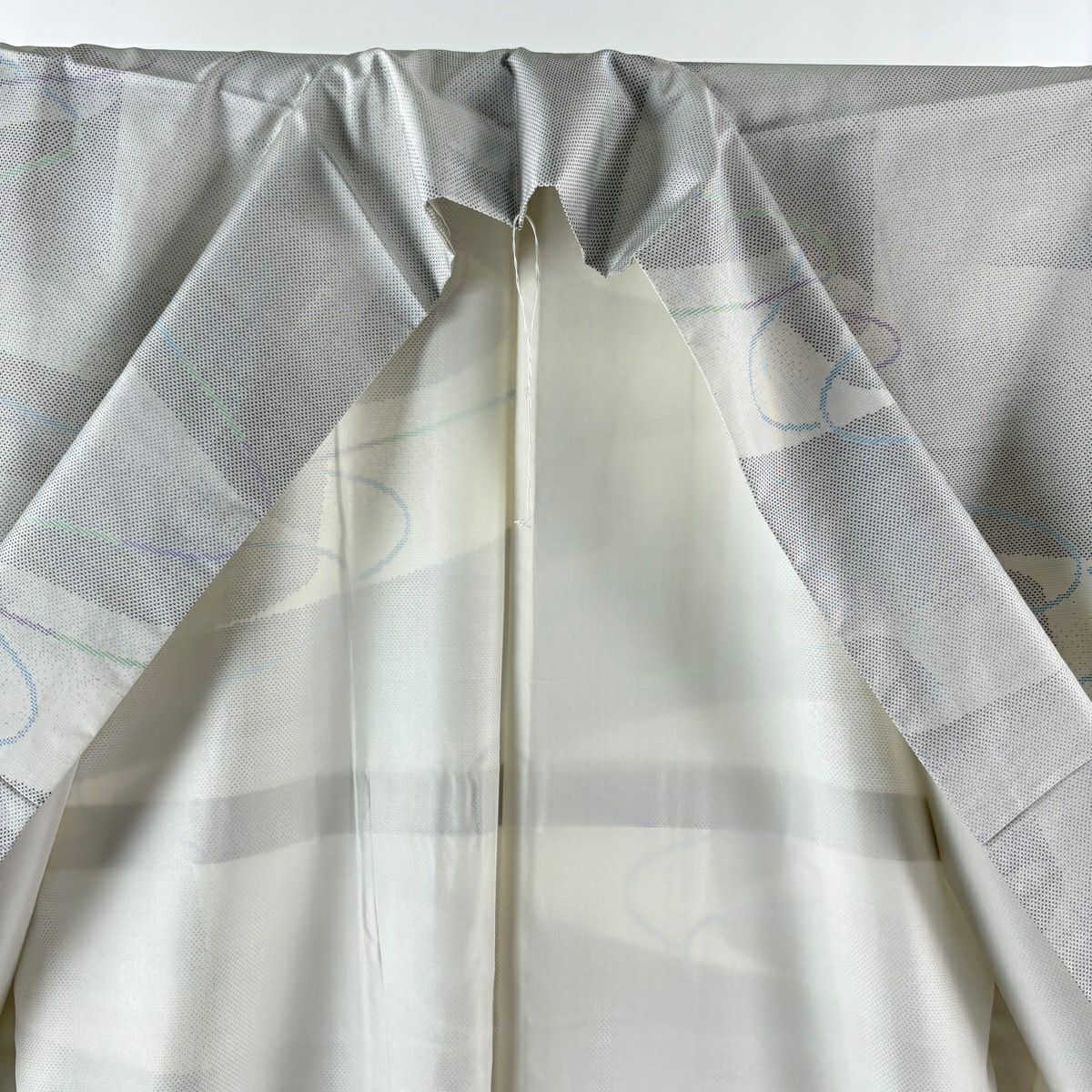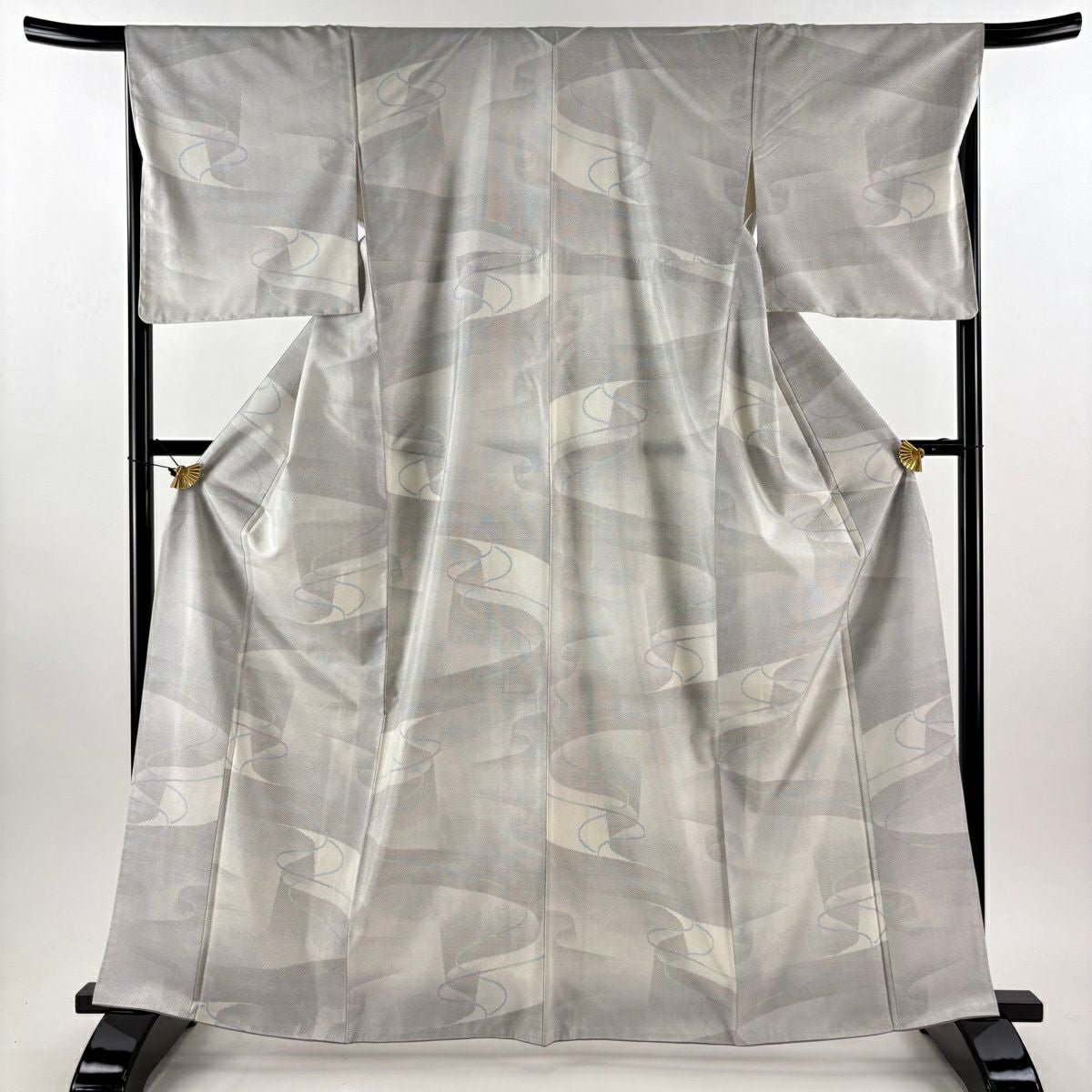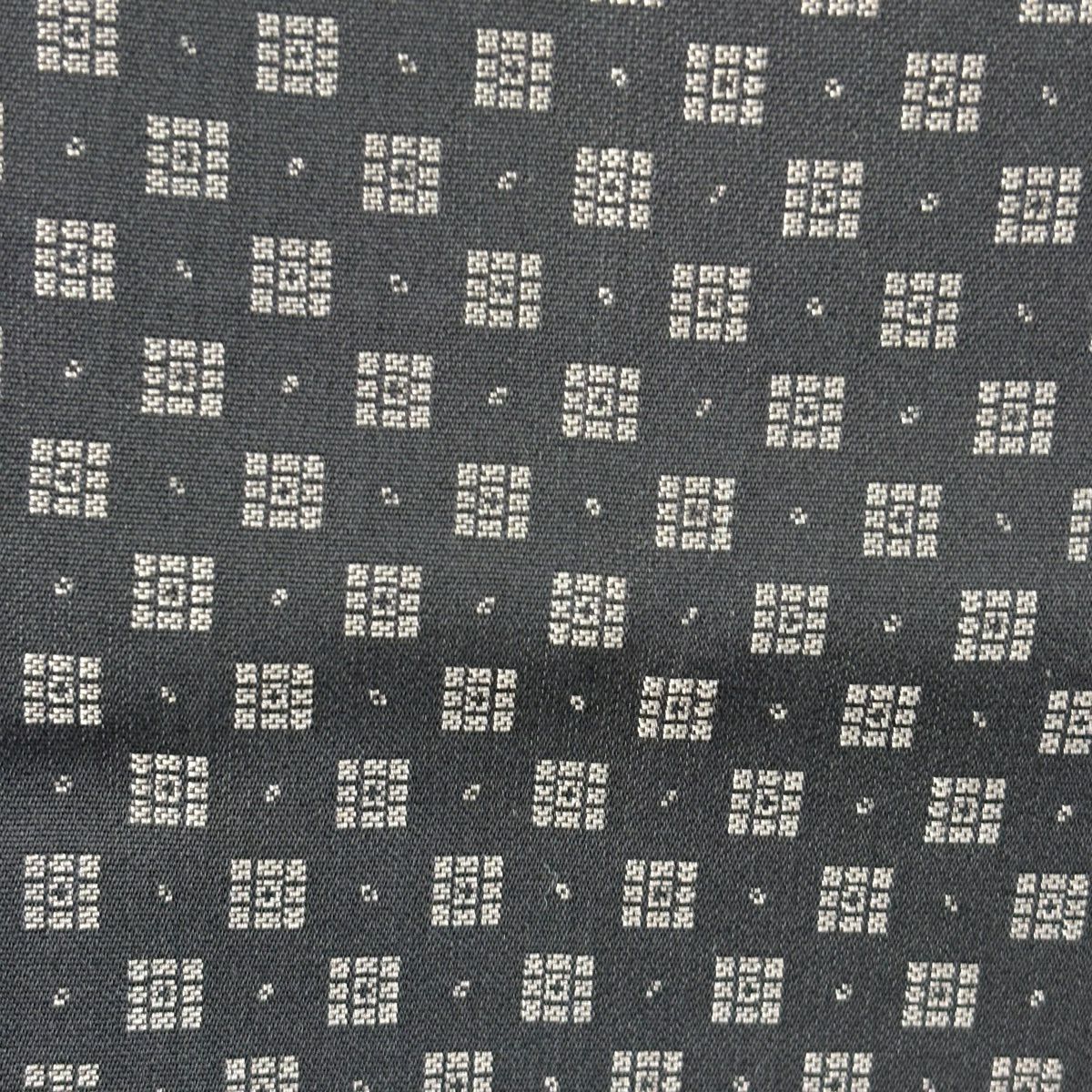 【美品】 紬 身丈164cm 裄丈67.5cm L 袷 幾何学模様 灰白 正絹 逸品