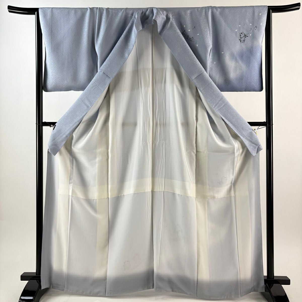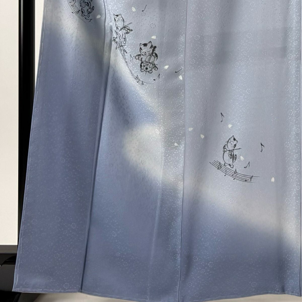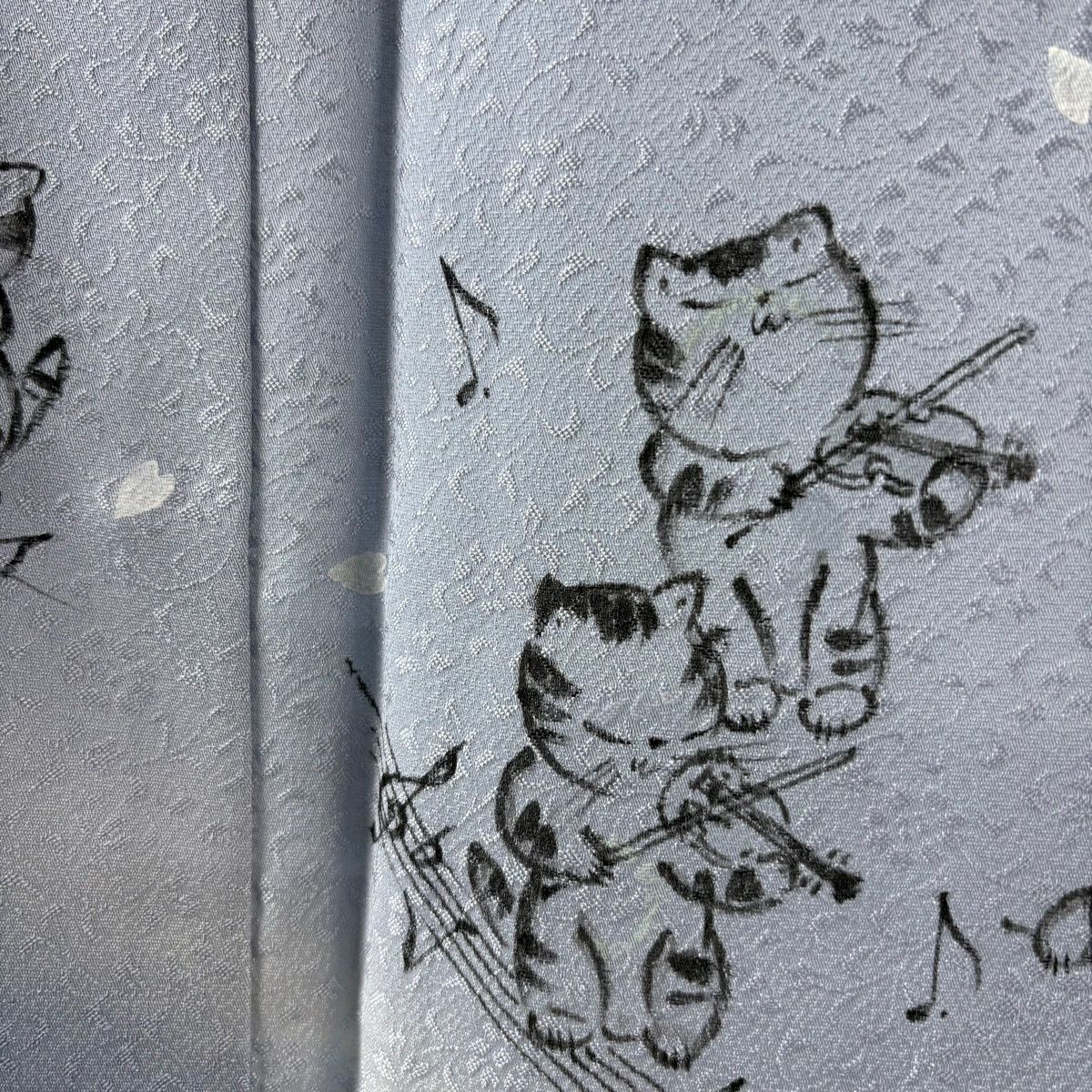 付下げ 身丈166cm 裄丈64.5cm M 袷 猫 楽器 ぼかし 水色 正絹 逸品