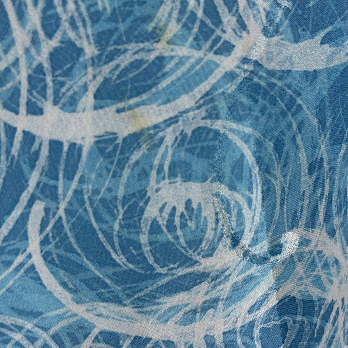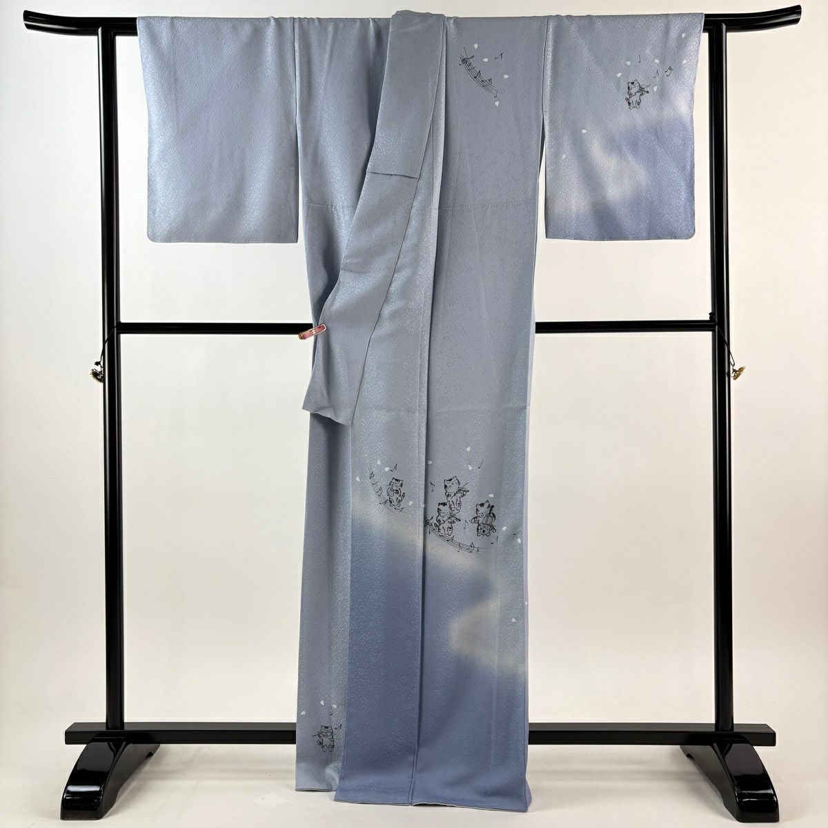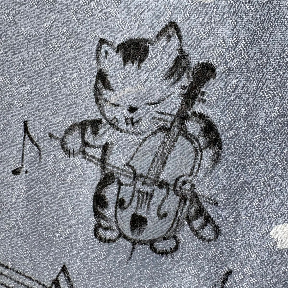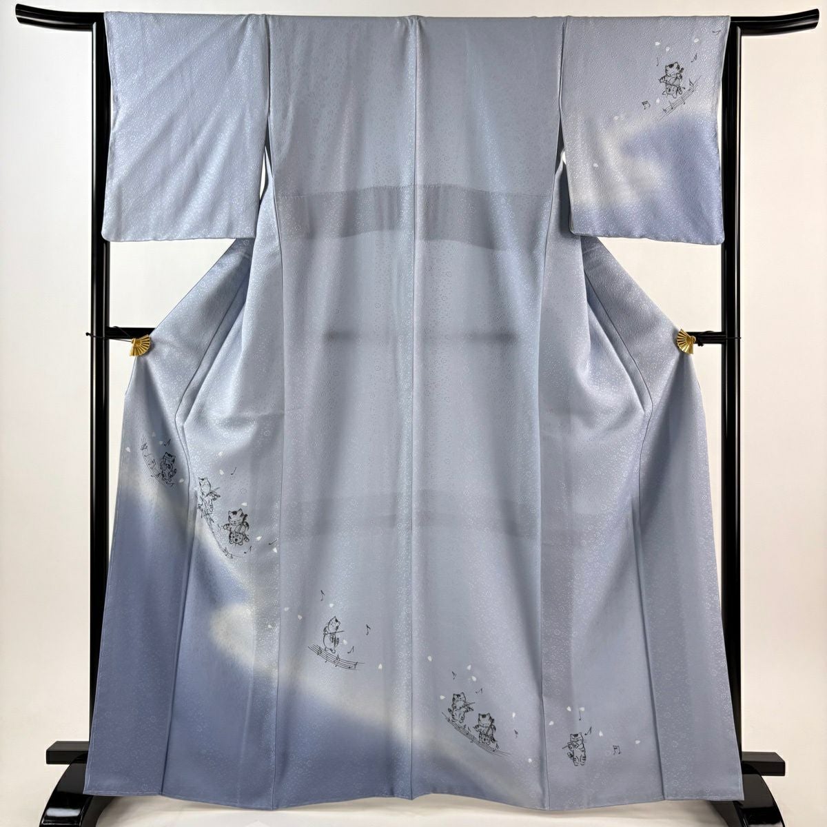 付下げ 身丈166cm 裄丈64.5cm M 袷 猫 楽器 ぼかし 水色 正絹 逸品
