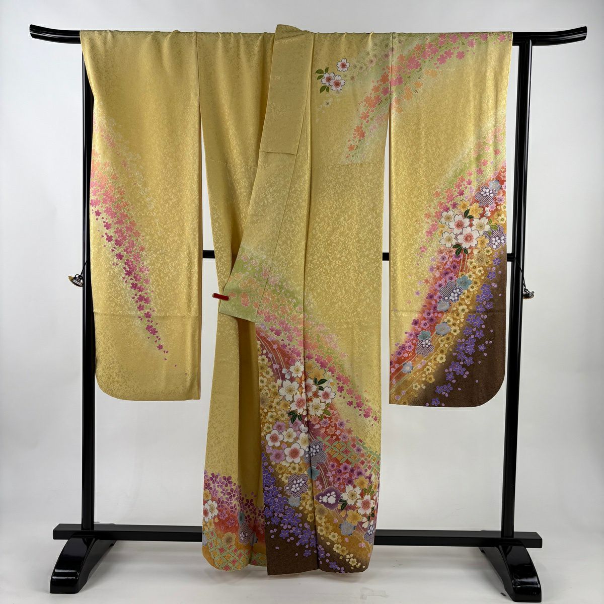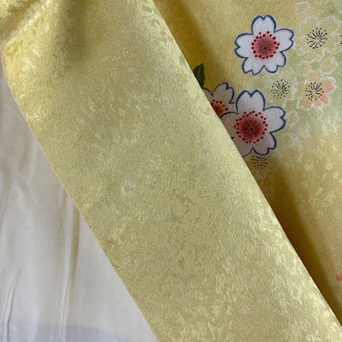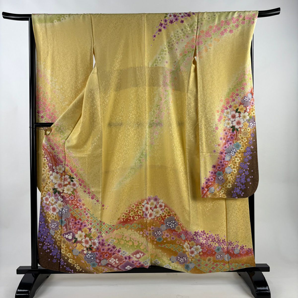 振袖 身丈159.5cm 裄丈68cm L 袷 桜 梅 金通し 金彩 黄色 正絹 逸品